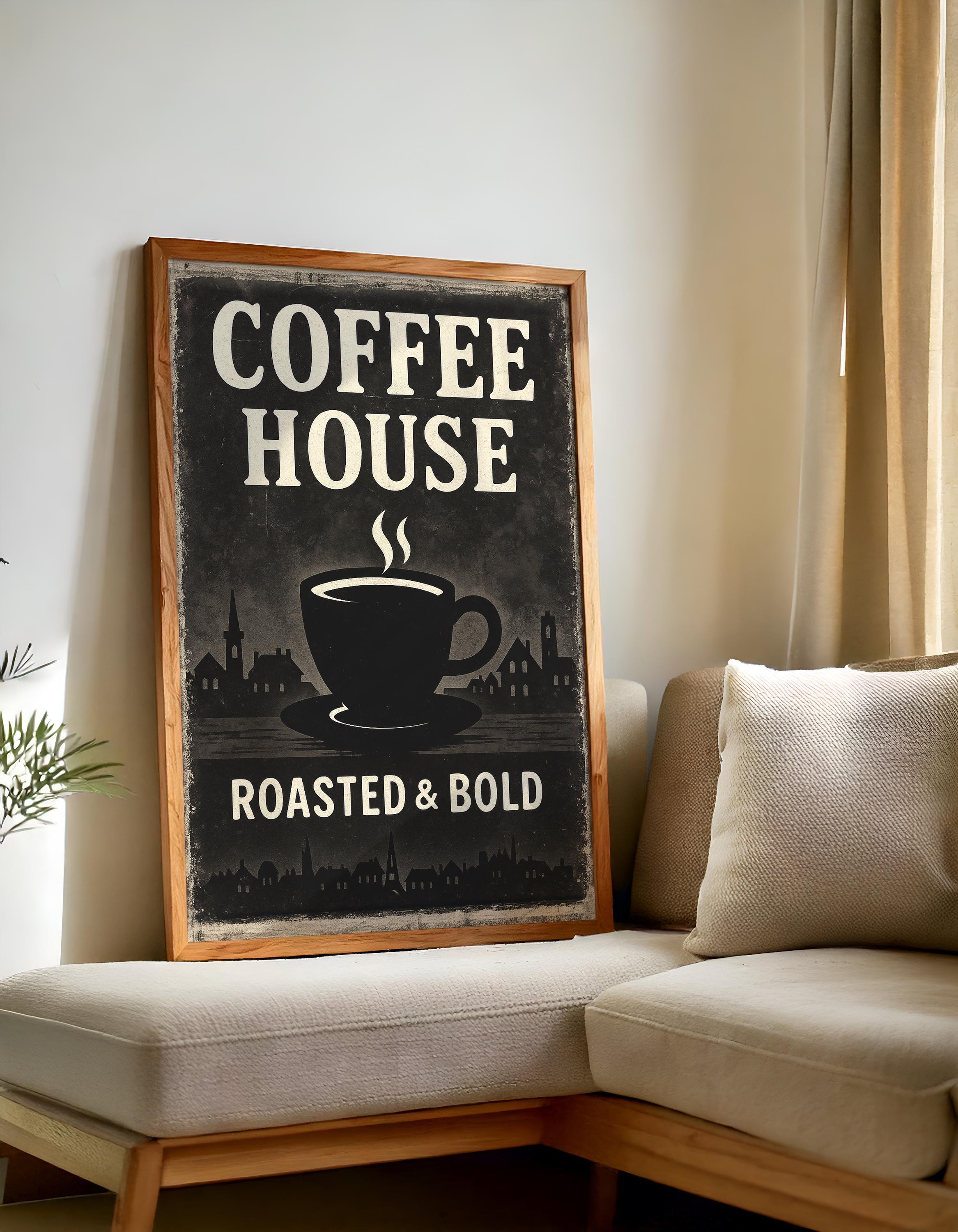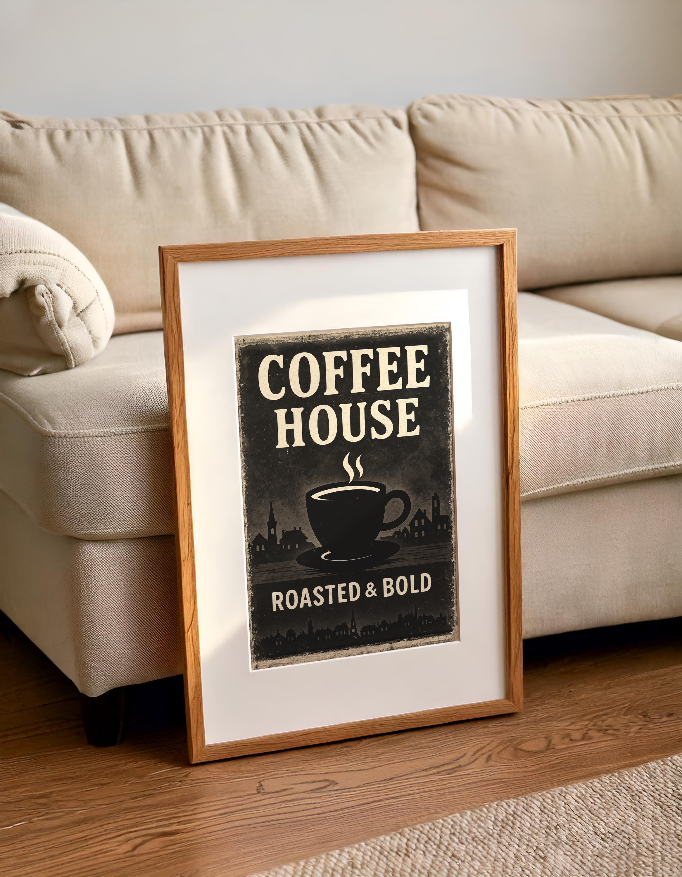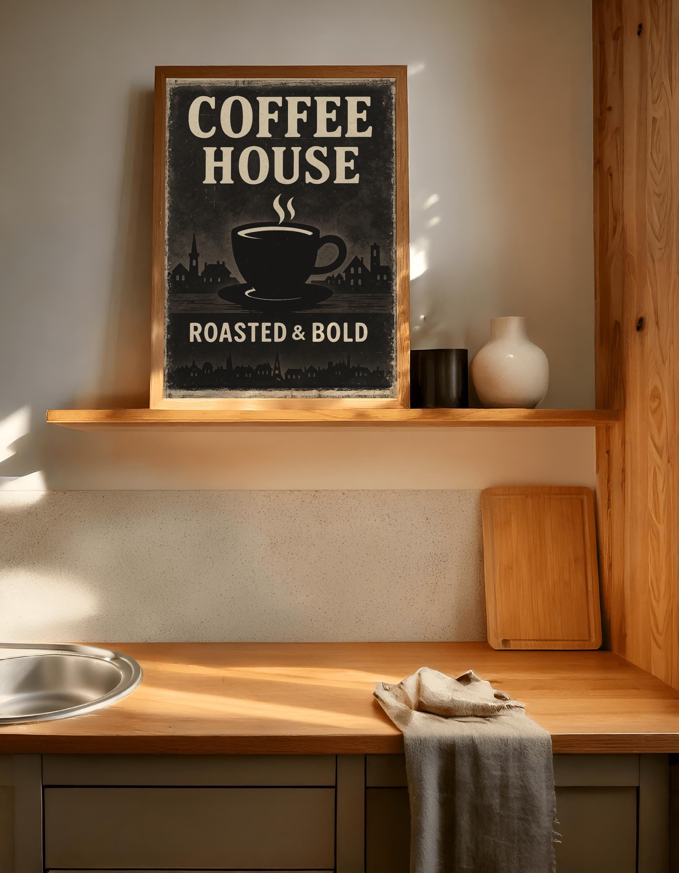 A bold roast deserves bold decor. This Coffee House Roasted Bold poster captures that punchy, rich coffee vibe in a rustic retro aesthetic. Ideal for café walls, cozy kitchens, or breakfast nooks.
