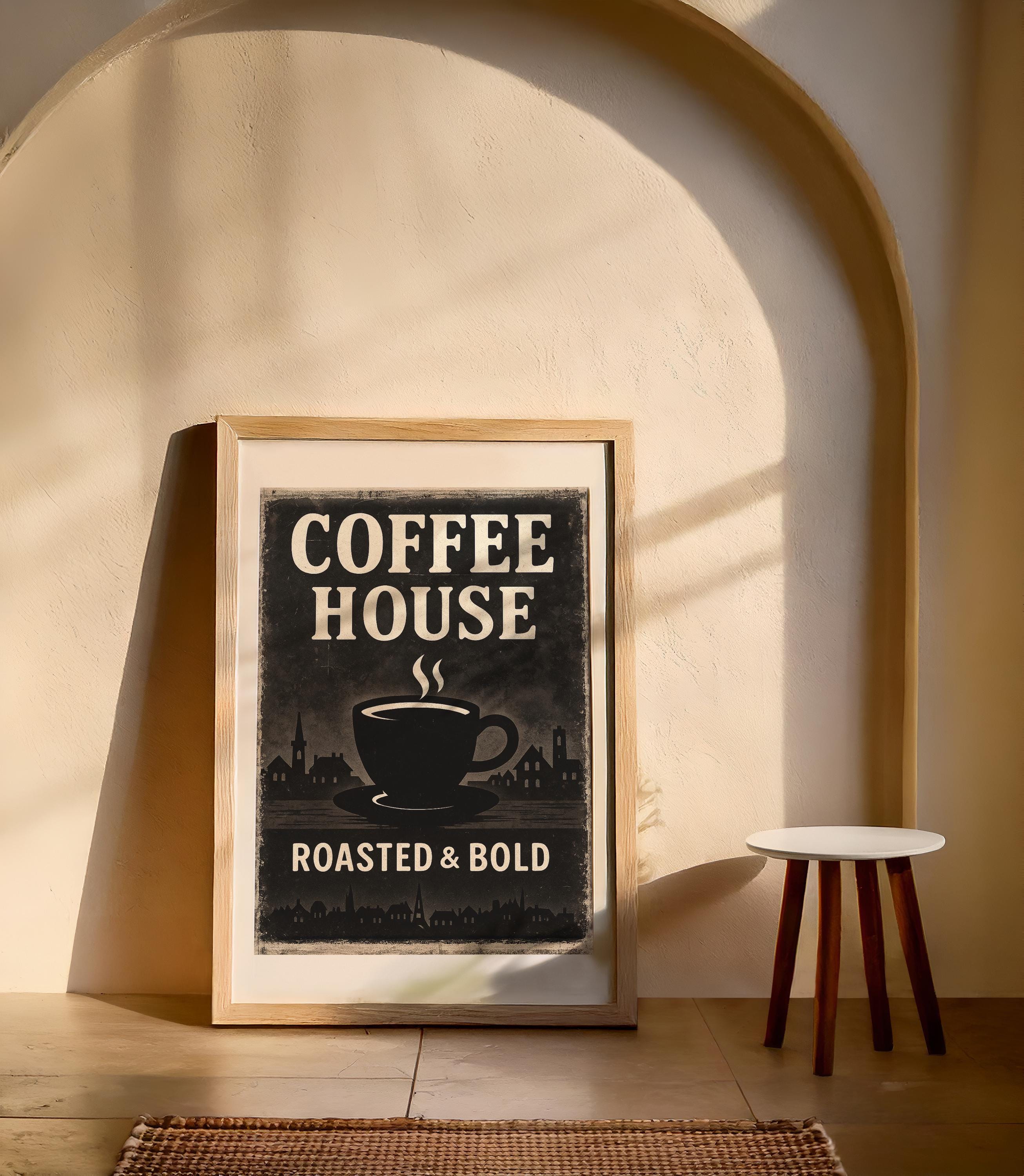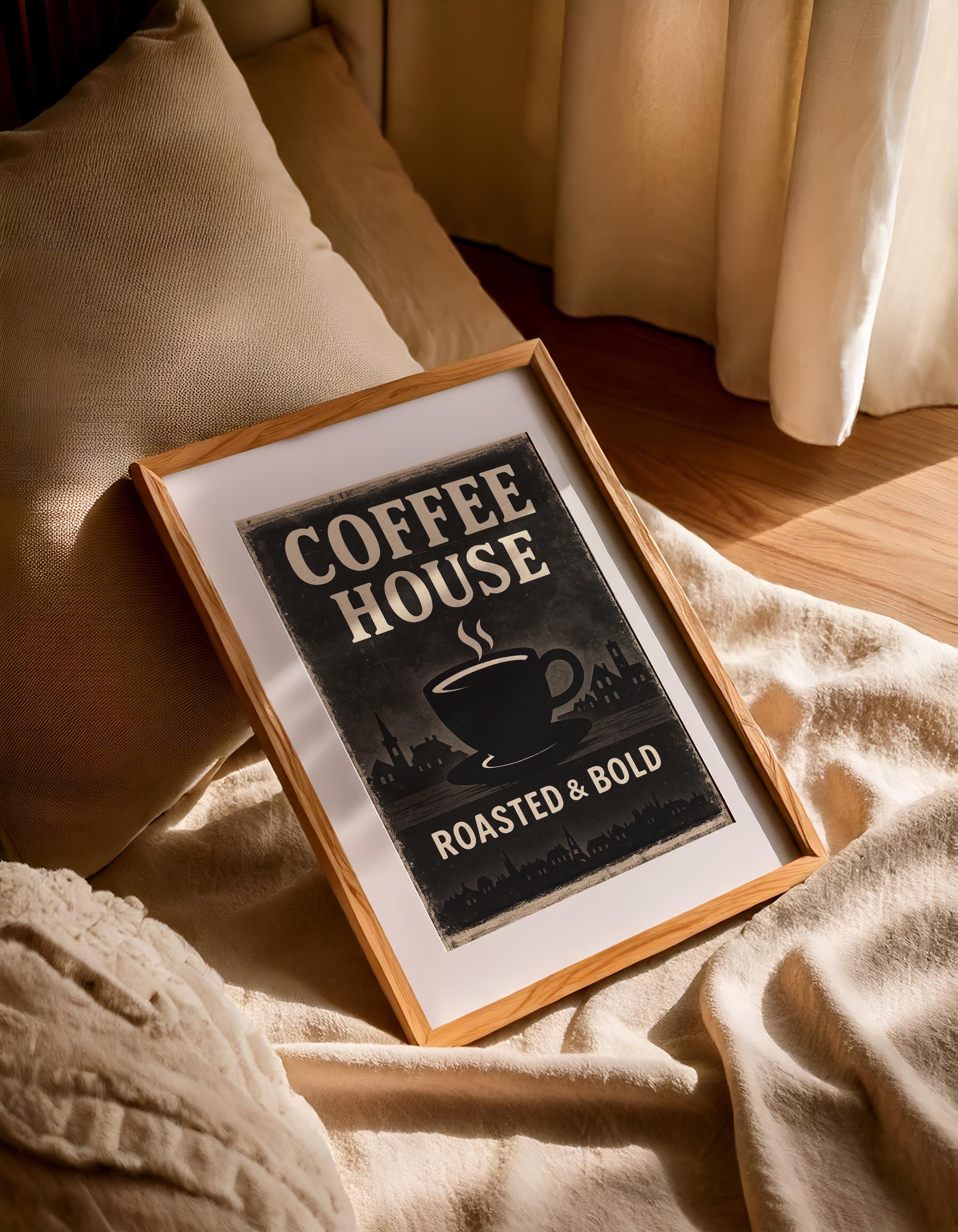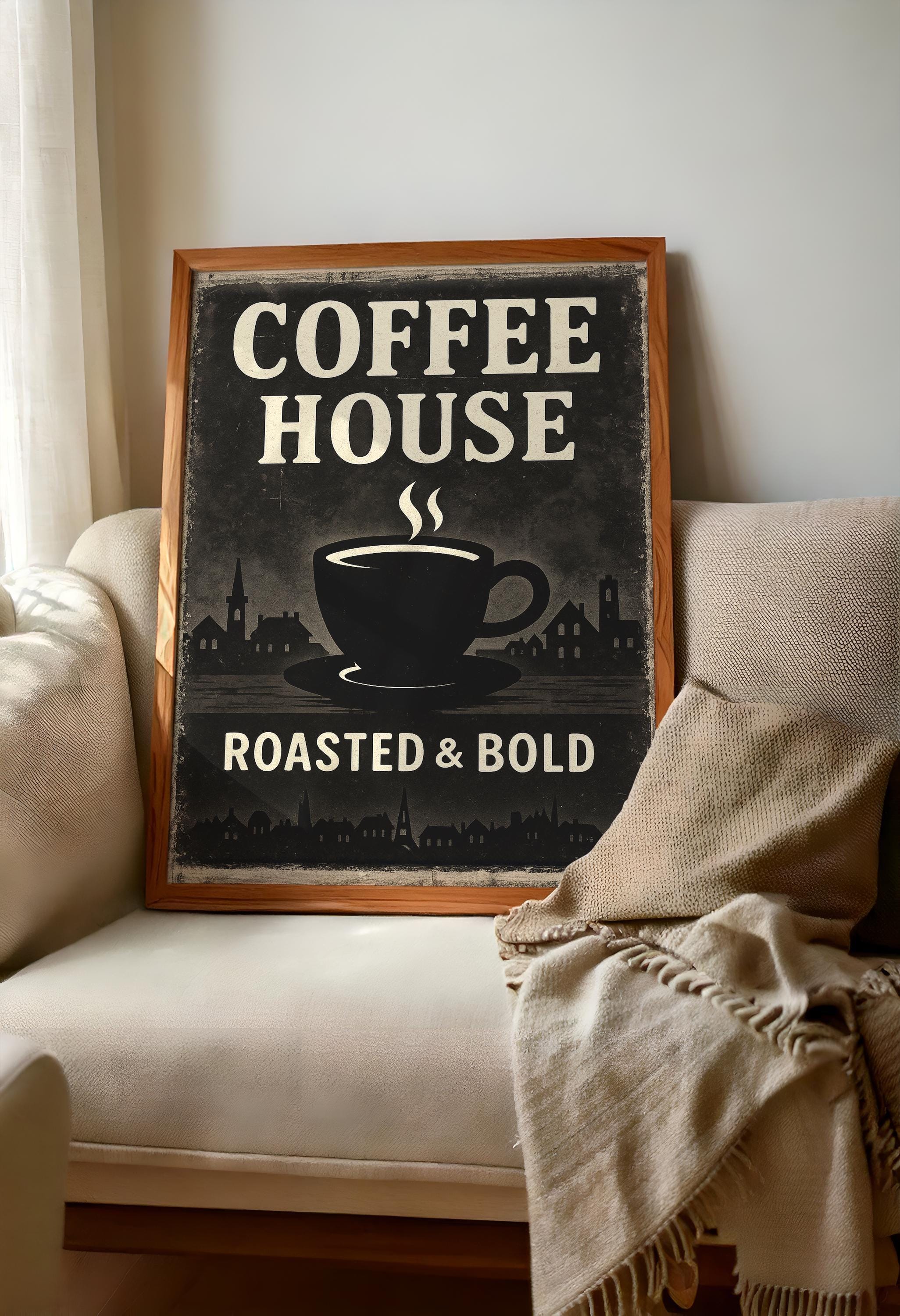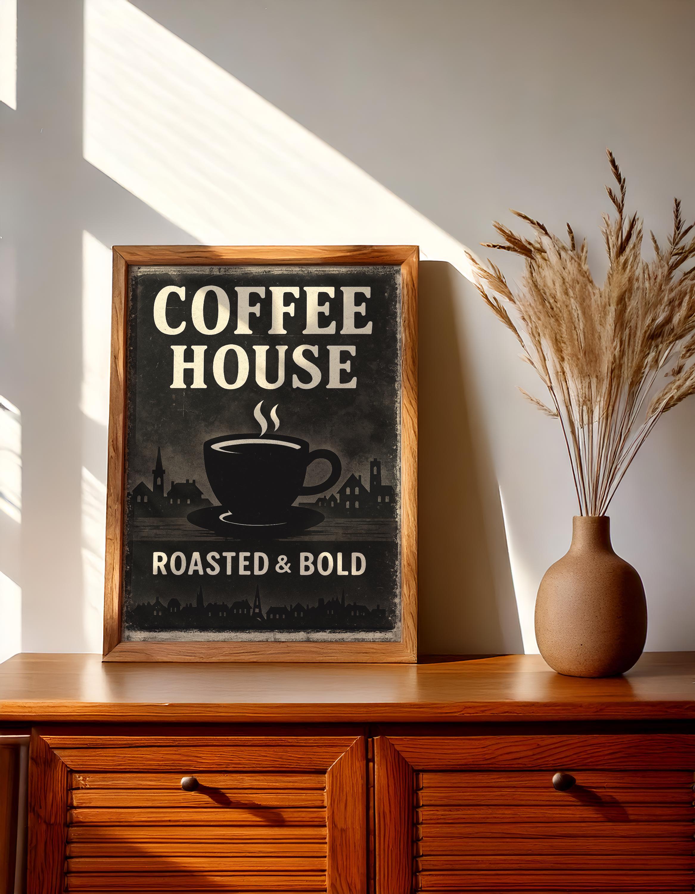 A bold roast deserves bold decor. This Coffee House Roasted Bold poster captures that punchy, rich coffee vibe in a rustic retro aesthetic. Ideal for café walls, cozy kitchens, or breakfast nooks.