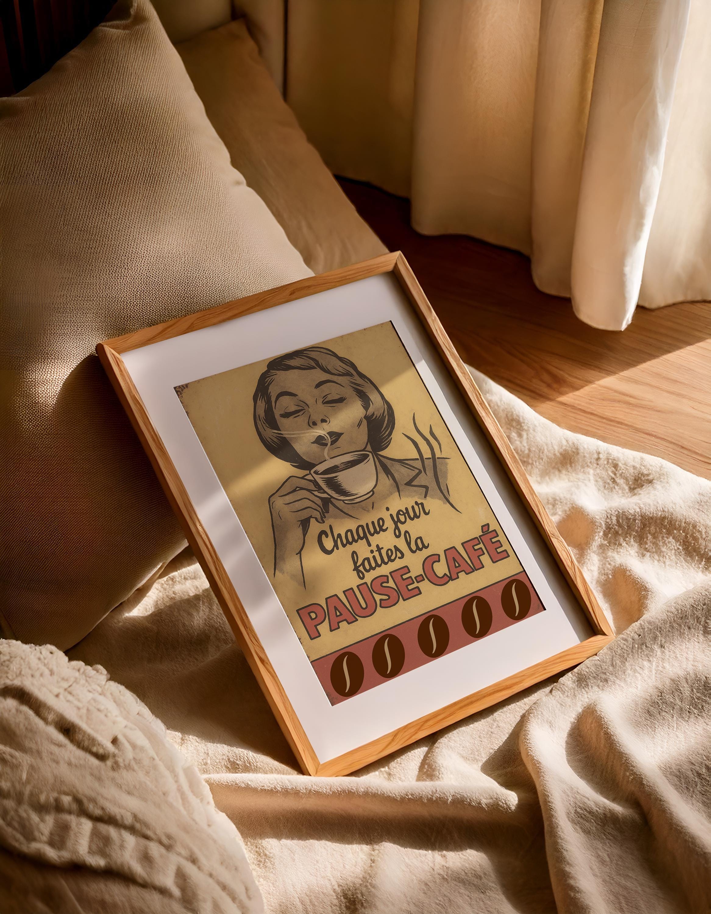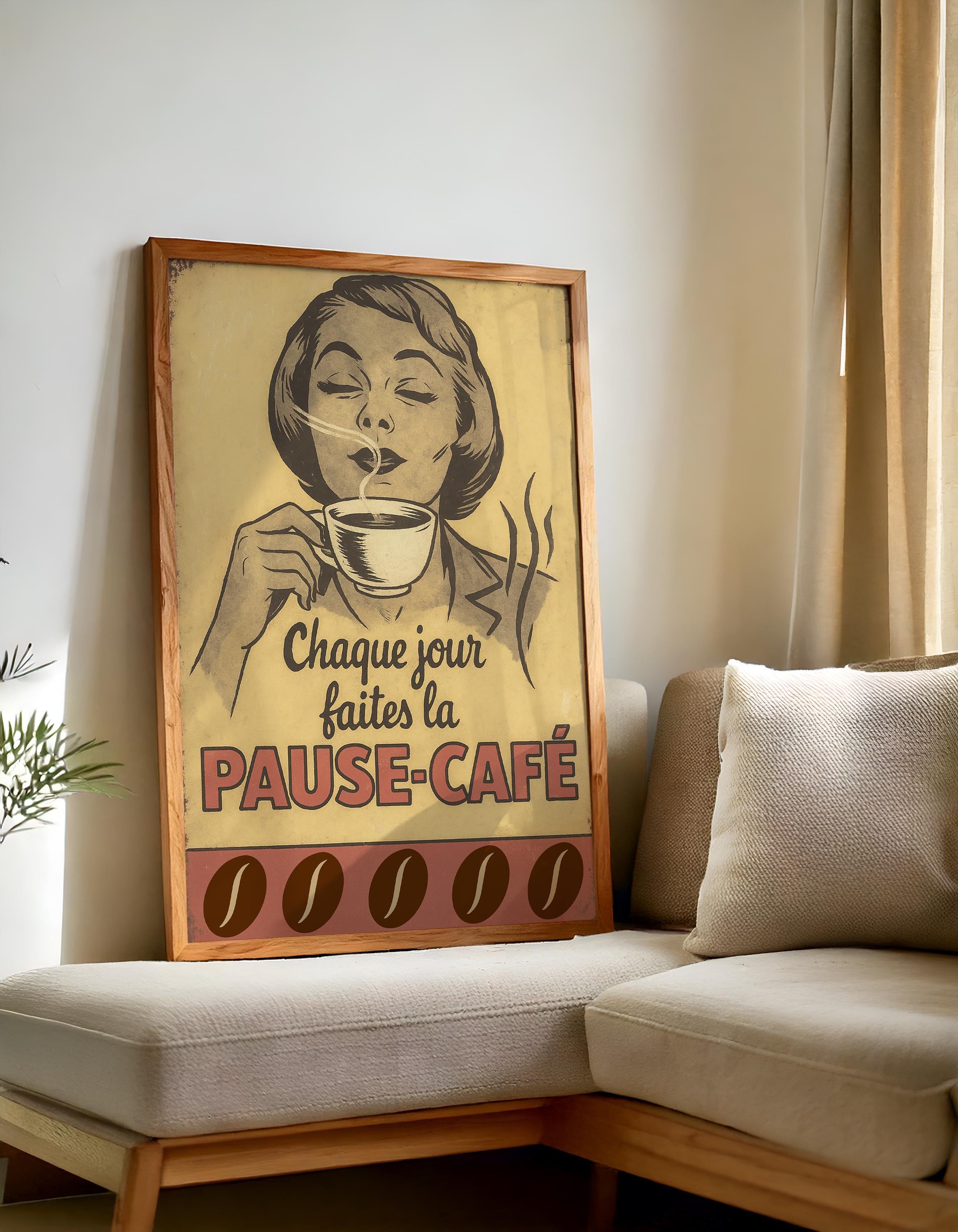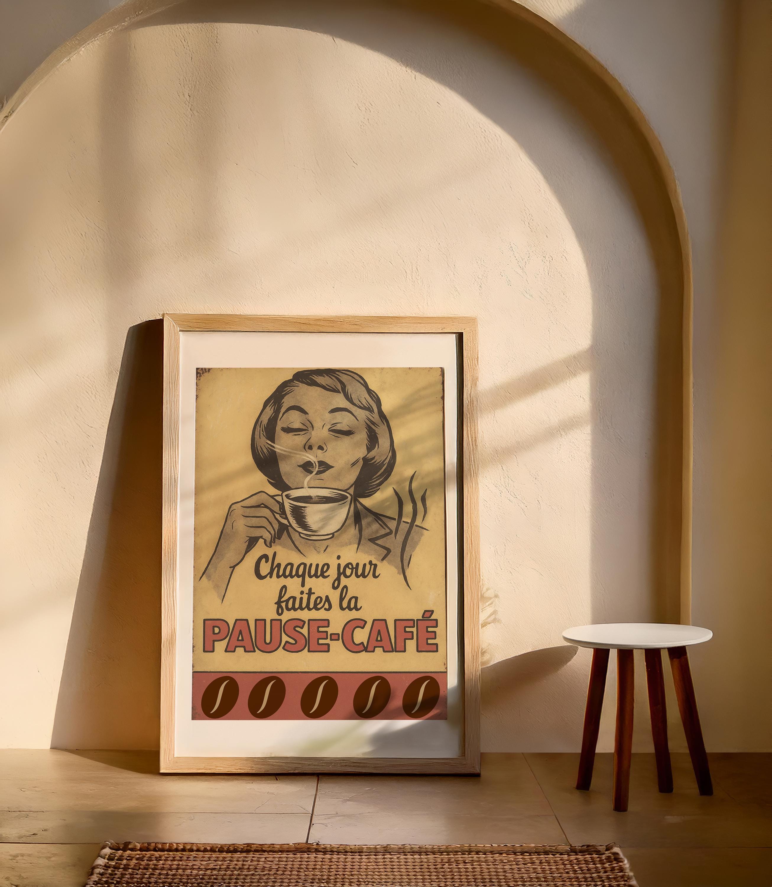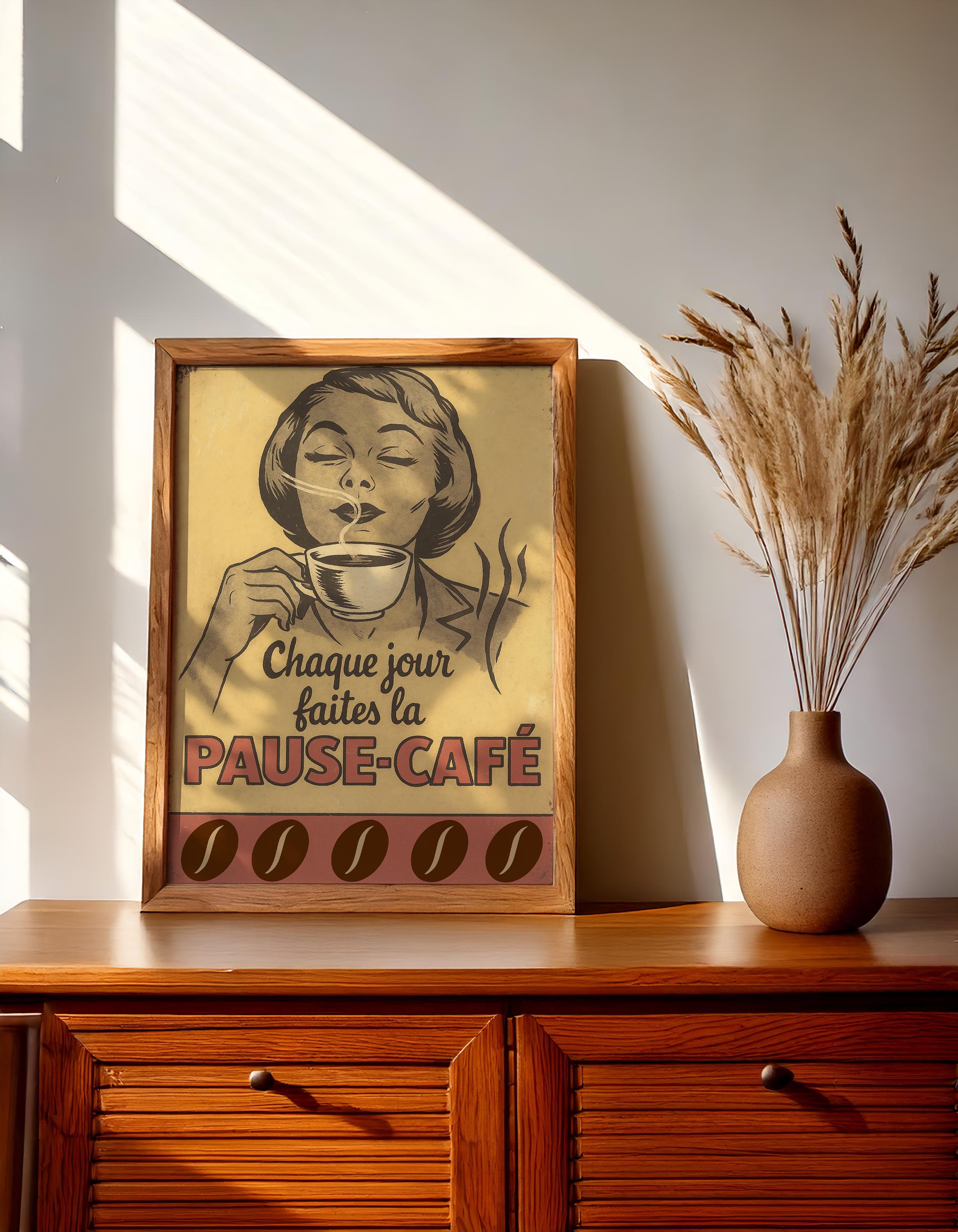 Add French flair to your coffee routine with this Chaque Jour Faites la Pause Café poster. Inspired by classic French advertising and retro design, it’s the perfect piece for a chic, Parisian-style kitchen or café.