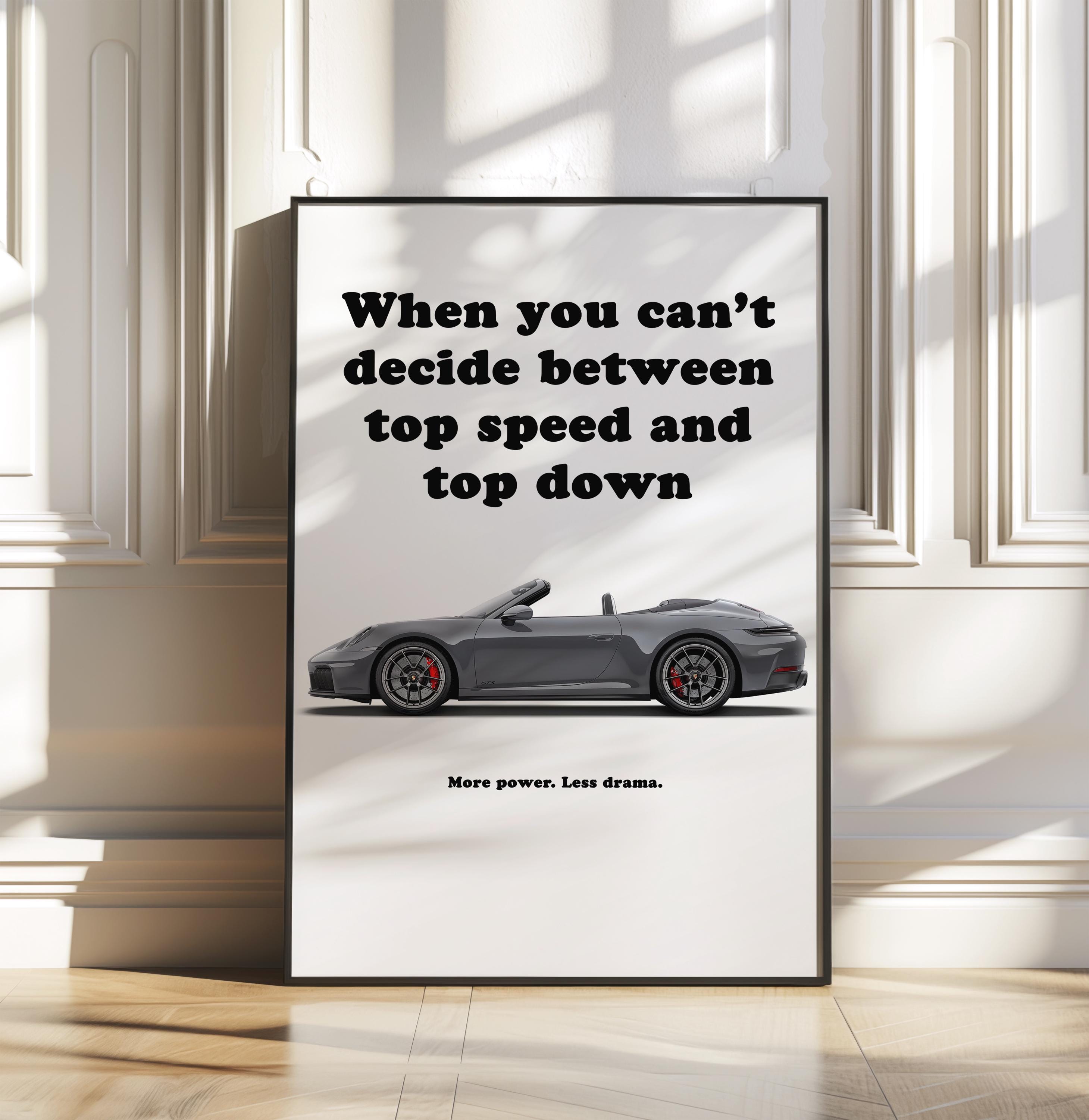This Porsche 911 poster presents the Porsche 911 992 Targa 4 GTS, combining sports car wall art with automotive wall decor. Open-top elegance meets GTS power, making it ideal for collectors and enthusiasts. Perfect as a gift for car lover, this Porsche print brings style to any man cave, office, or garage.