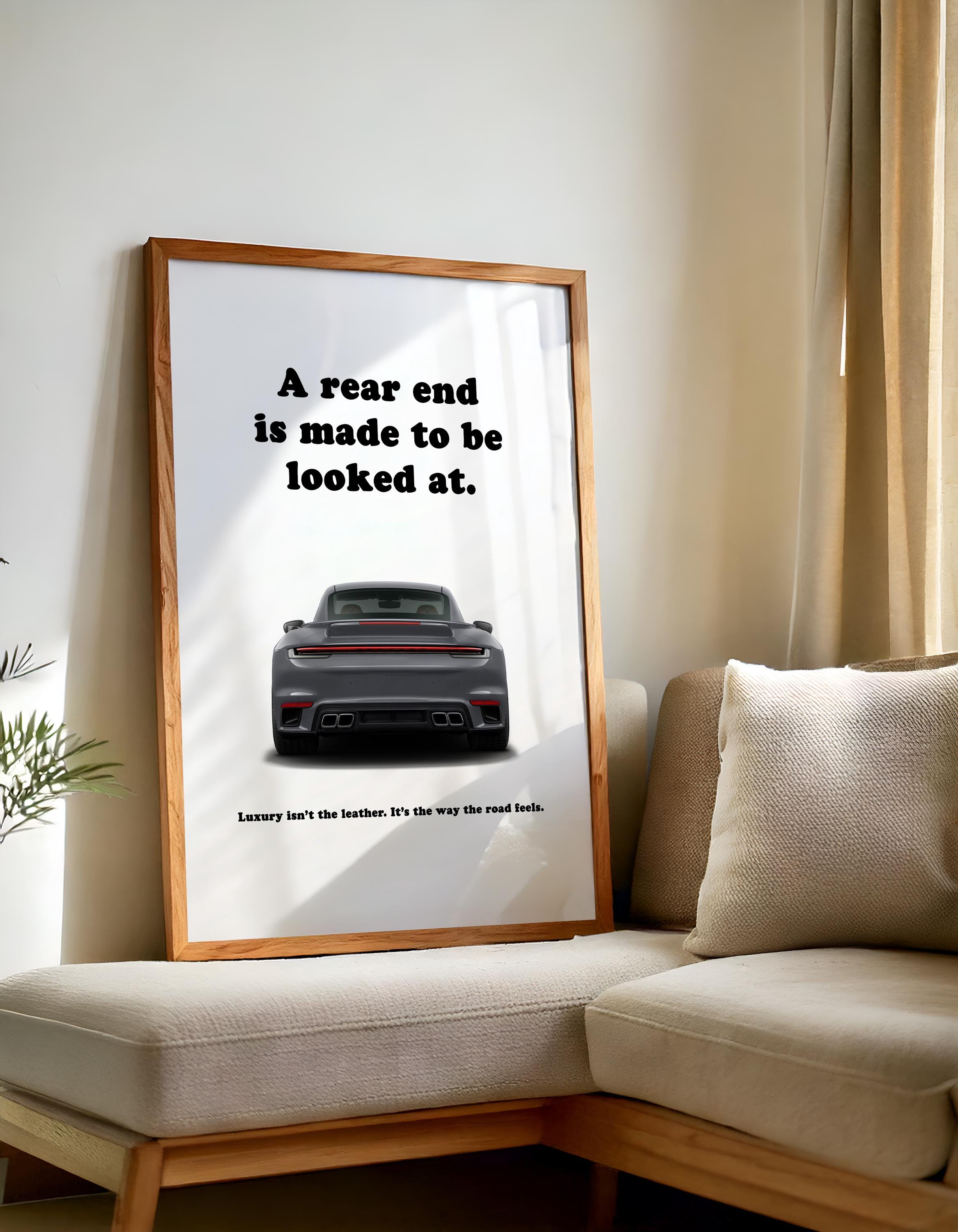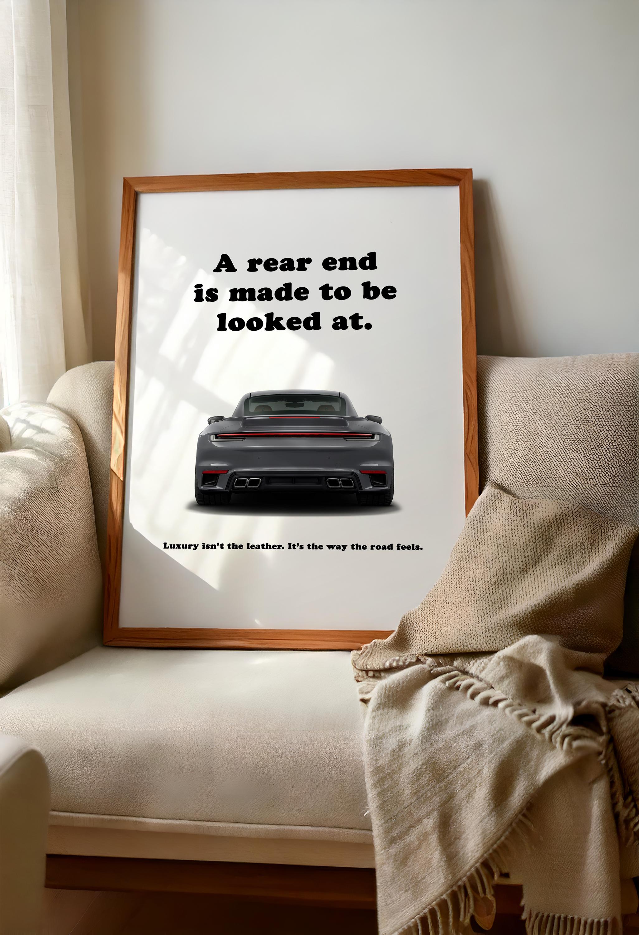 This Porsche 911 poster features the Porsche 911 992 Turbo, blending sports car wall art with automotive wall decor for the modern car lover. With turbocharged performance and luxury design, it’s a statement piece for any enthusiast. Perfect for collectors or as a gift for car lover, this Porsche print adds speed and style to a man cave, office, or garage.