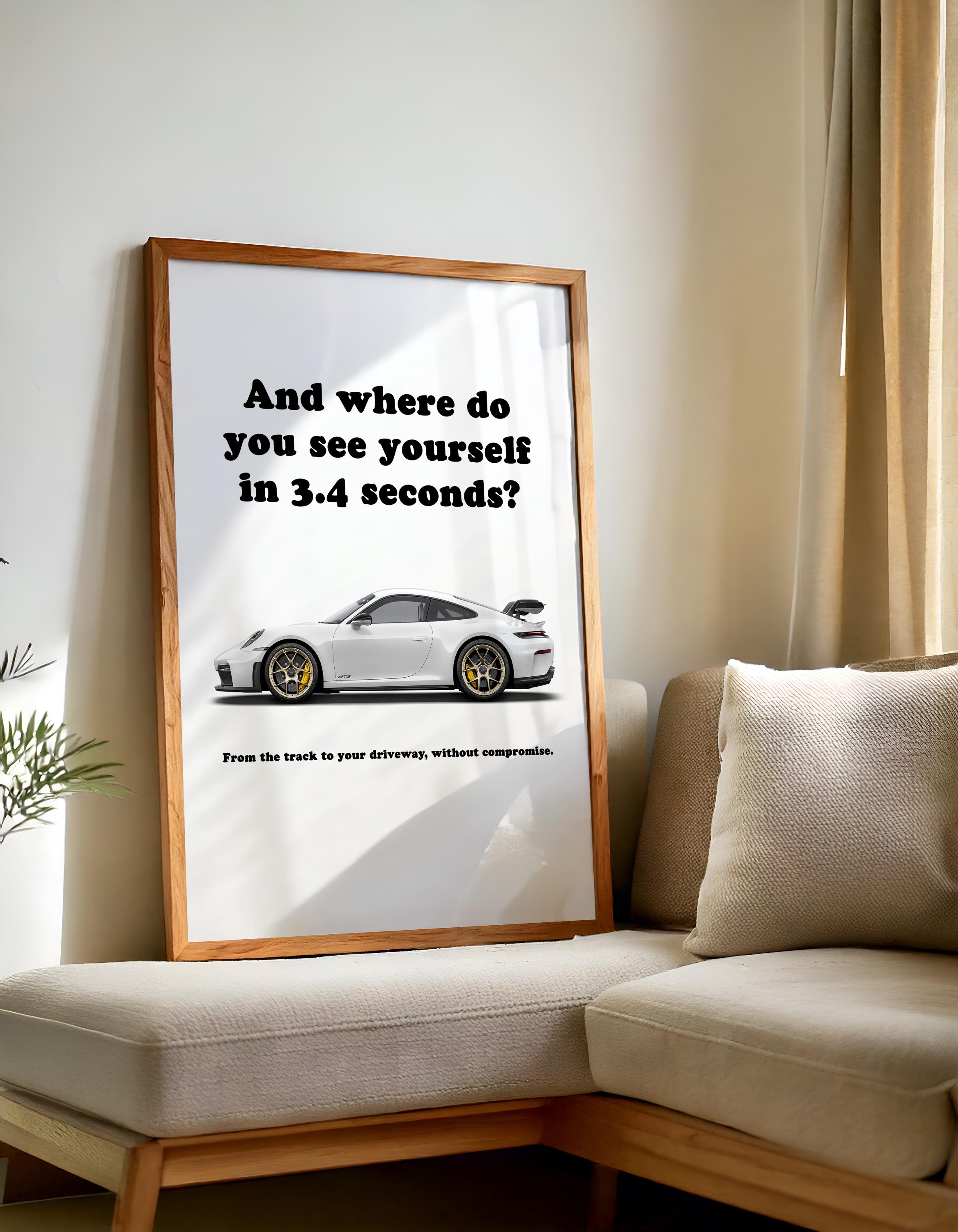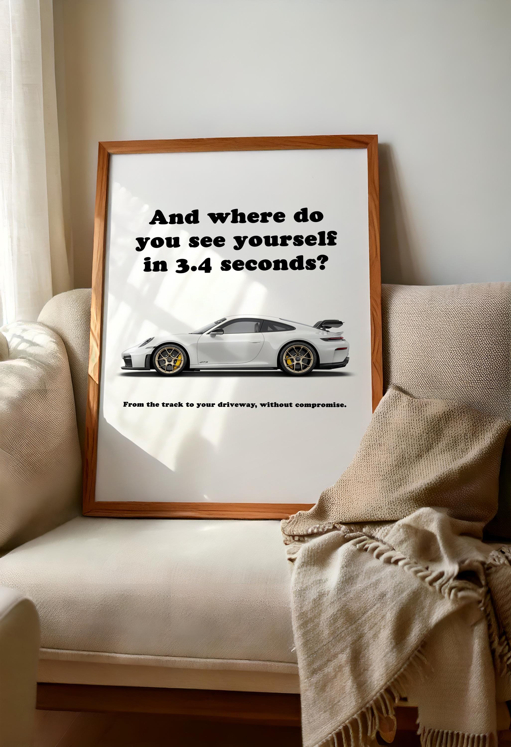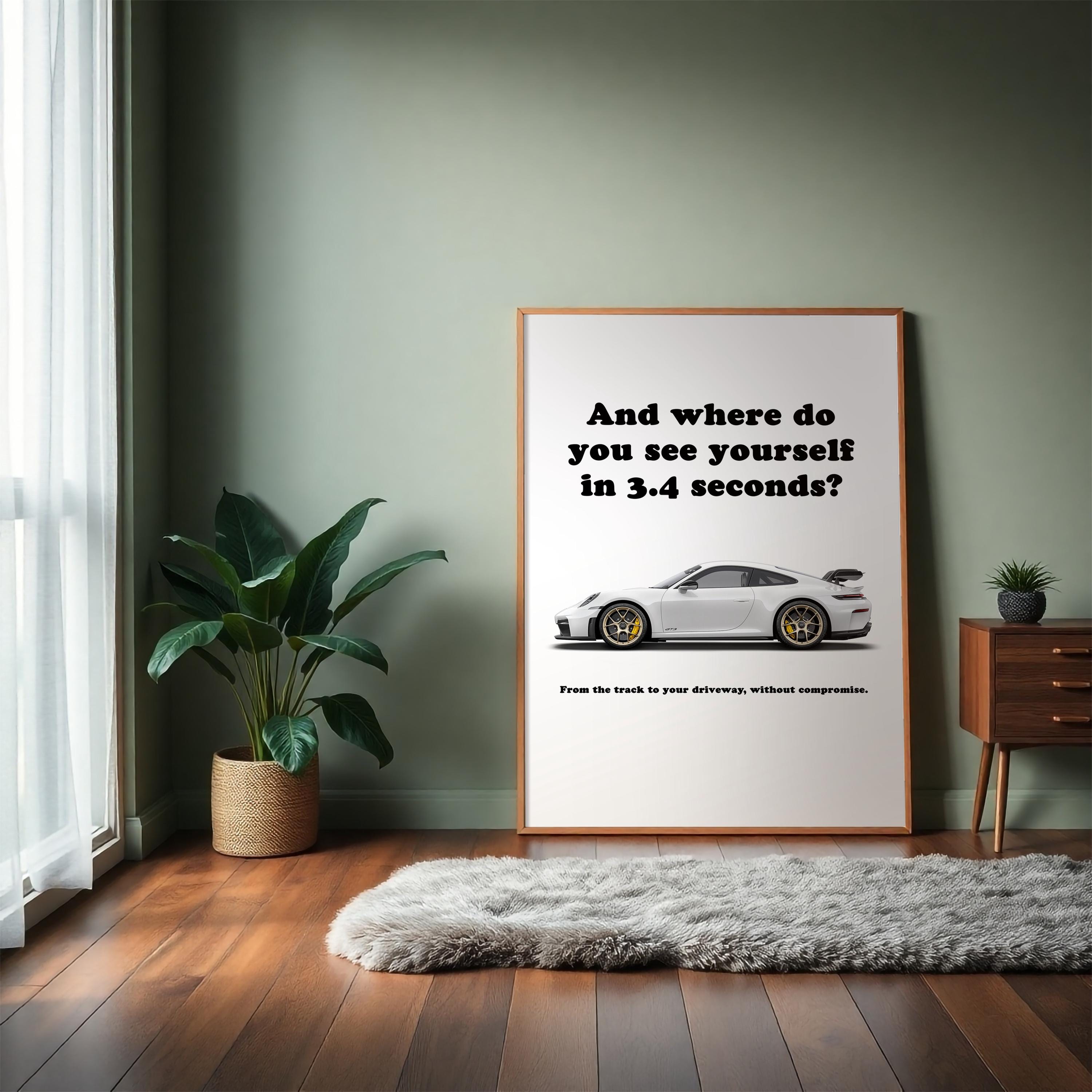 This Porsche 911 poster showcases the Porsche 911 992 GT3, blending sports car wall art with automotive wall decor for the ultimate enthusiast piece. Known for precision handling and track pedigree, the 992 GT3 is a true performance icon. Ideal for collectors or as a gift for car lover, this Porsche print adds speed and style to any man cave, office, or garage.