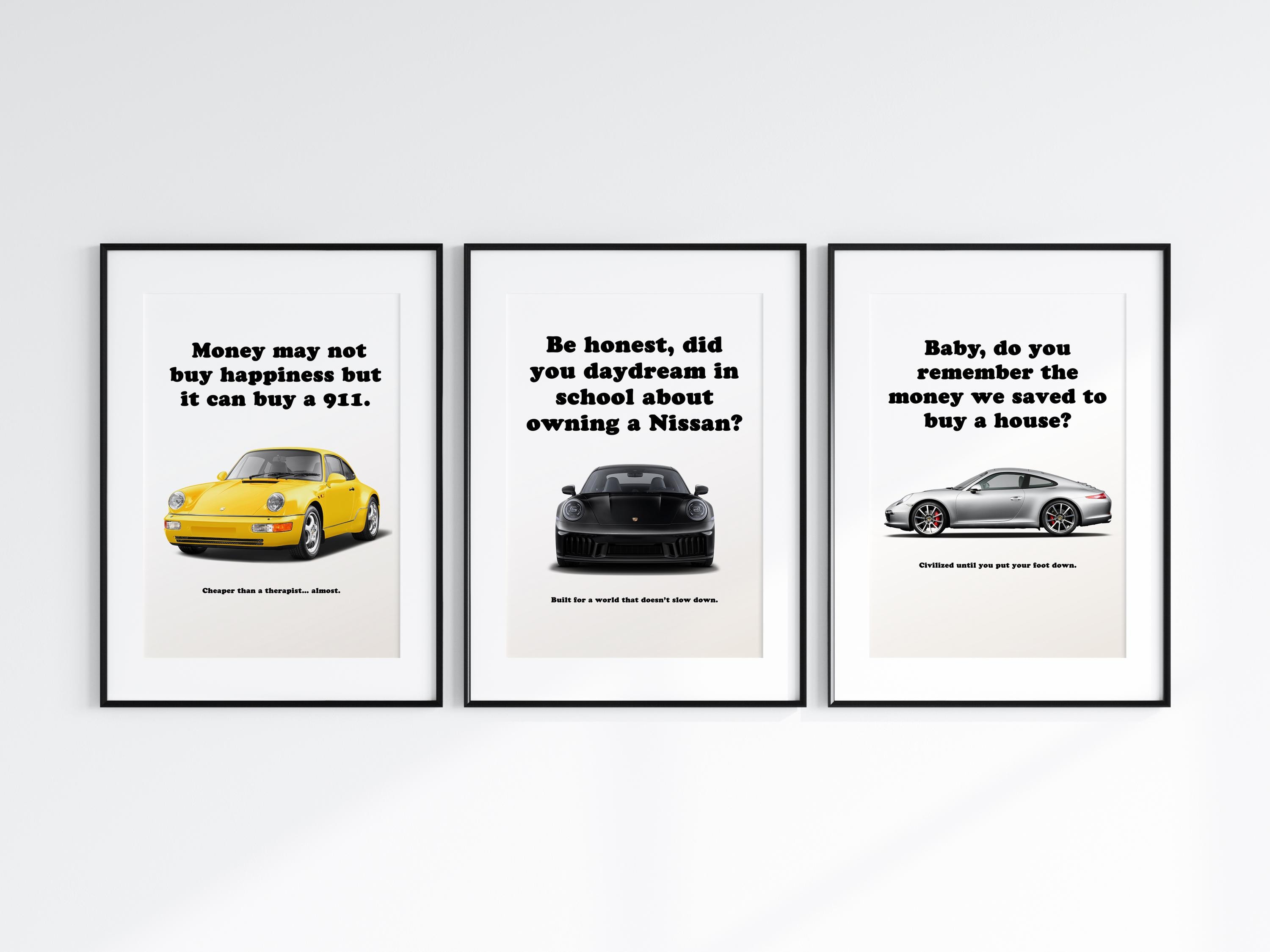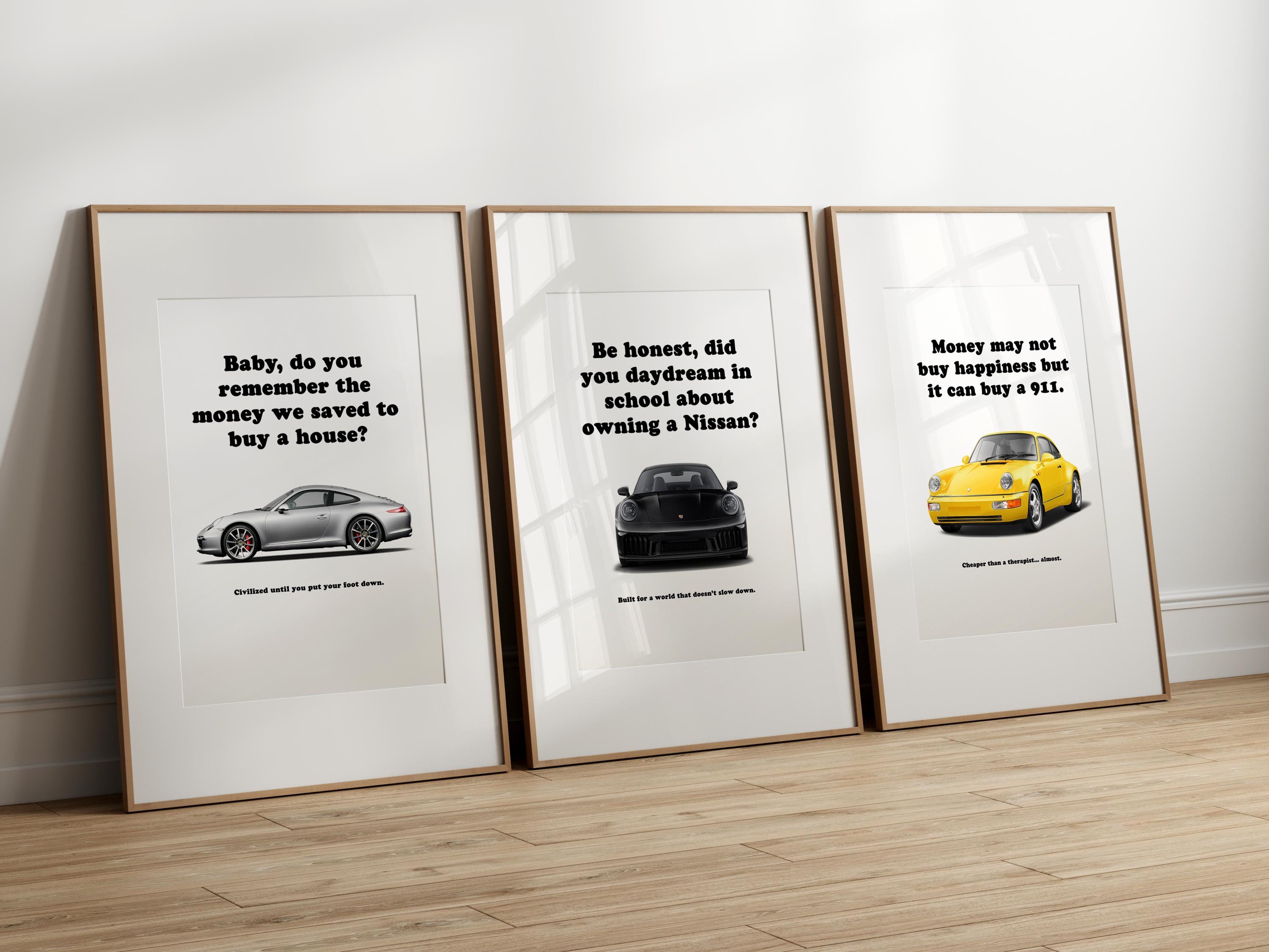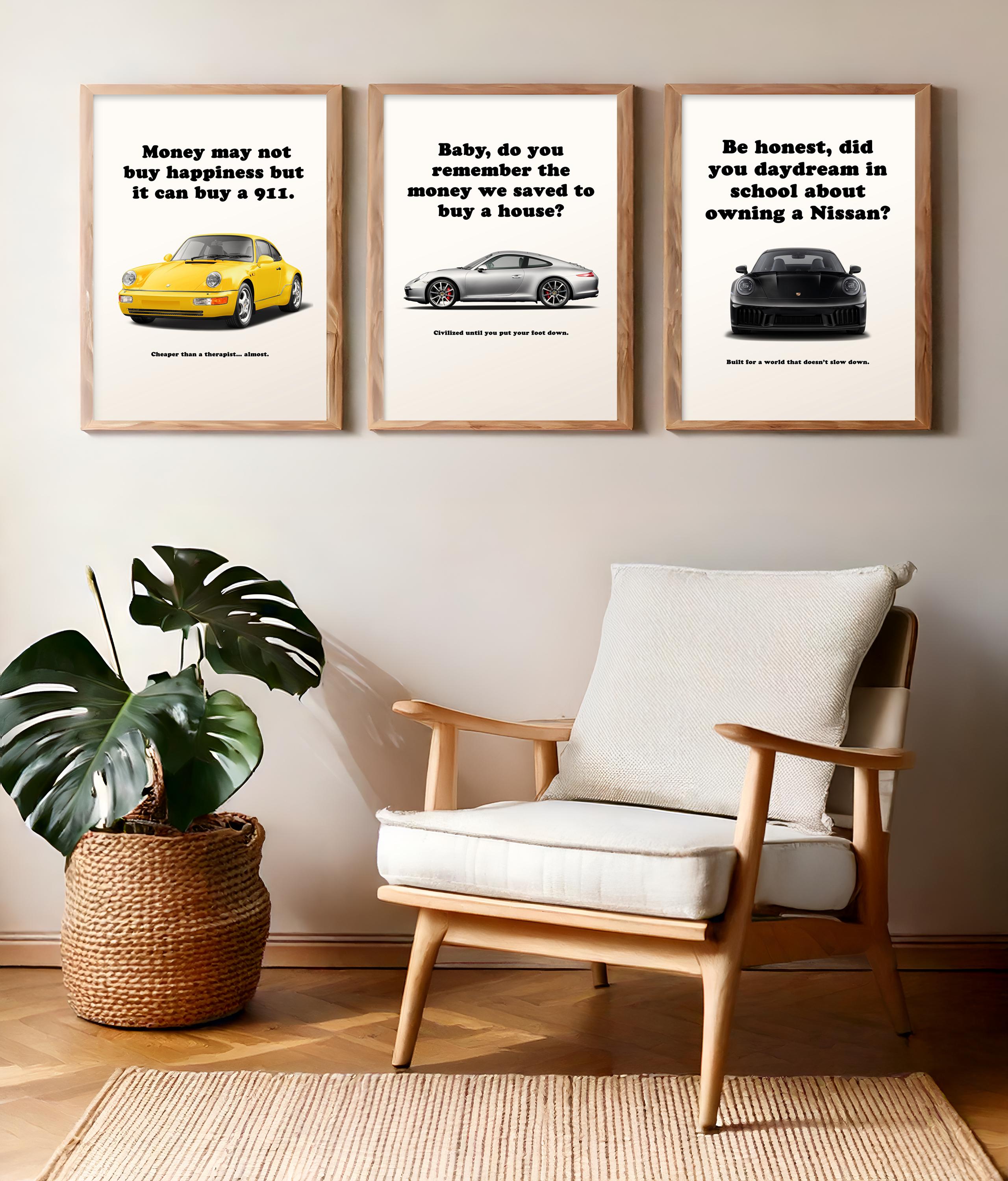 Premium-quality printable posters designed to transform any room into a personalized automotive gallery. This bundle showcases legendary Porsche models from different eras in one cohesive set.
