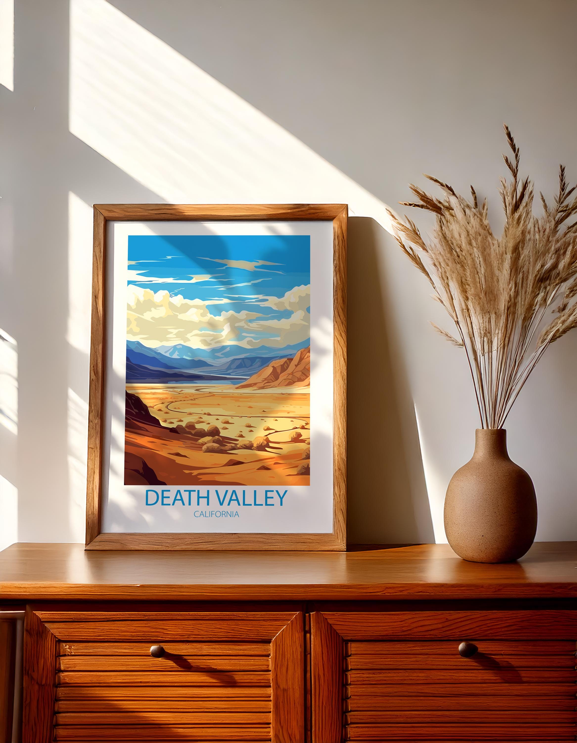 Whether you’re searching for a thoughtful gift for a traveler, curating a gallery wall of national park posters, or adding a unique statement piece to your space, this Death Valley wall art is a stylish choice. Inspired by classic mid-century travel ads, it captures nostalgia, elegance, and the spirit of exploration.