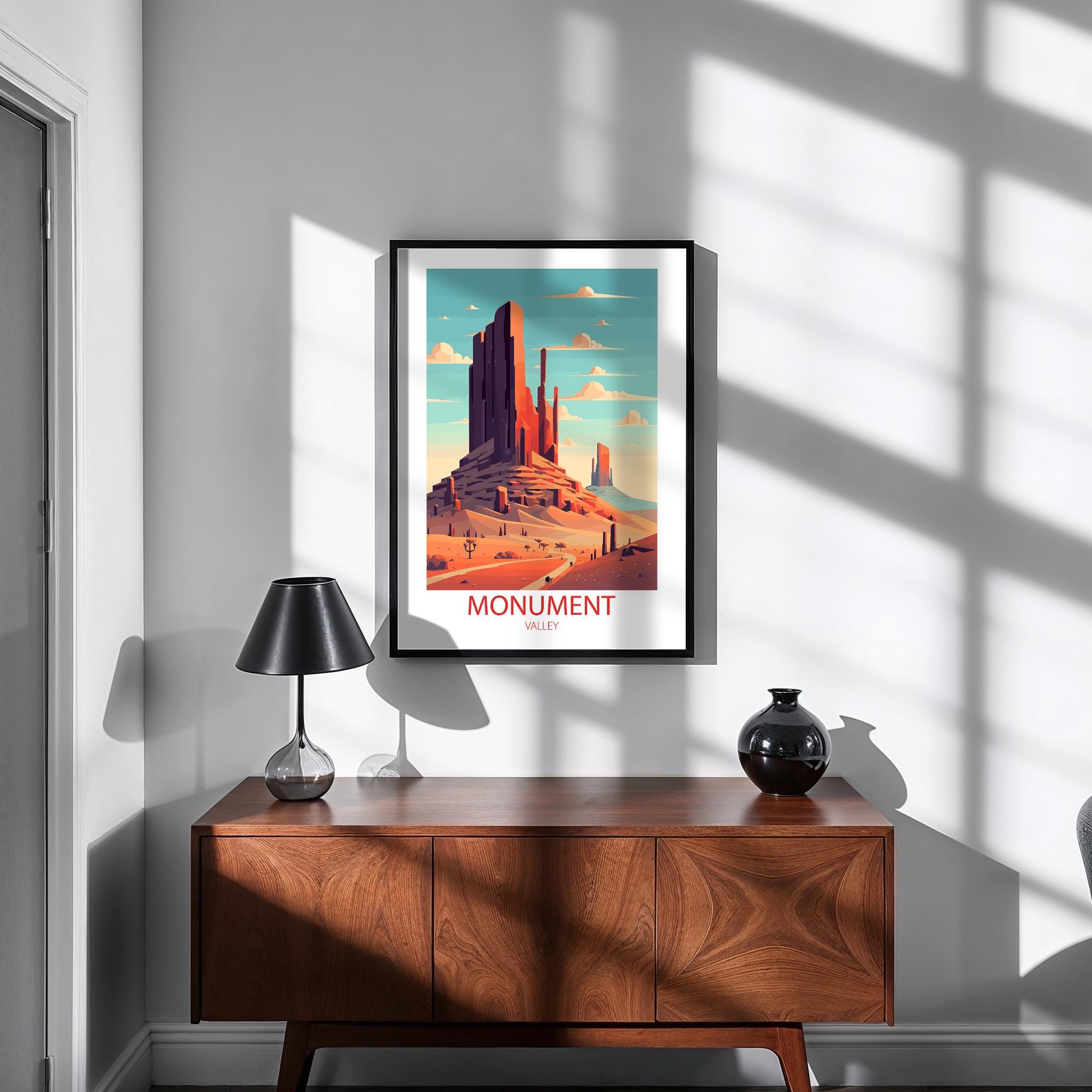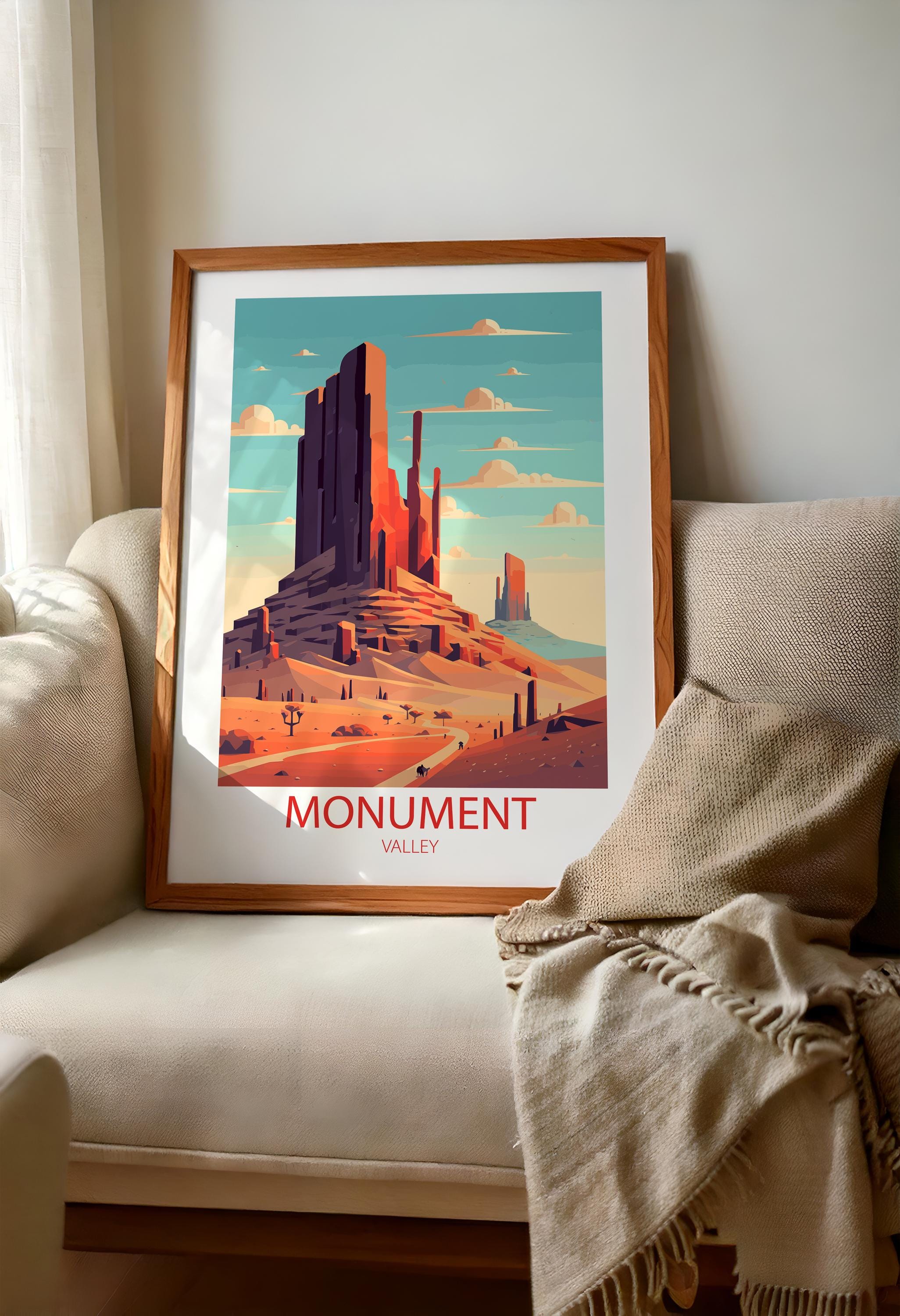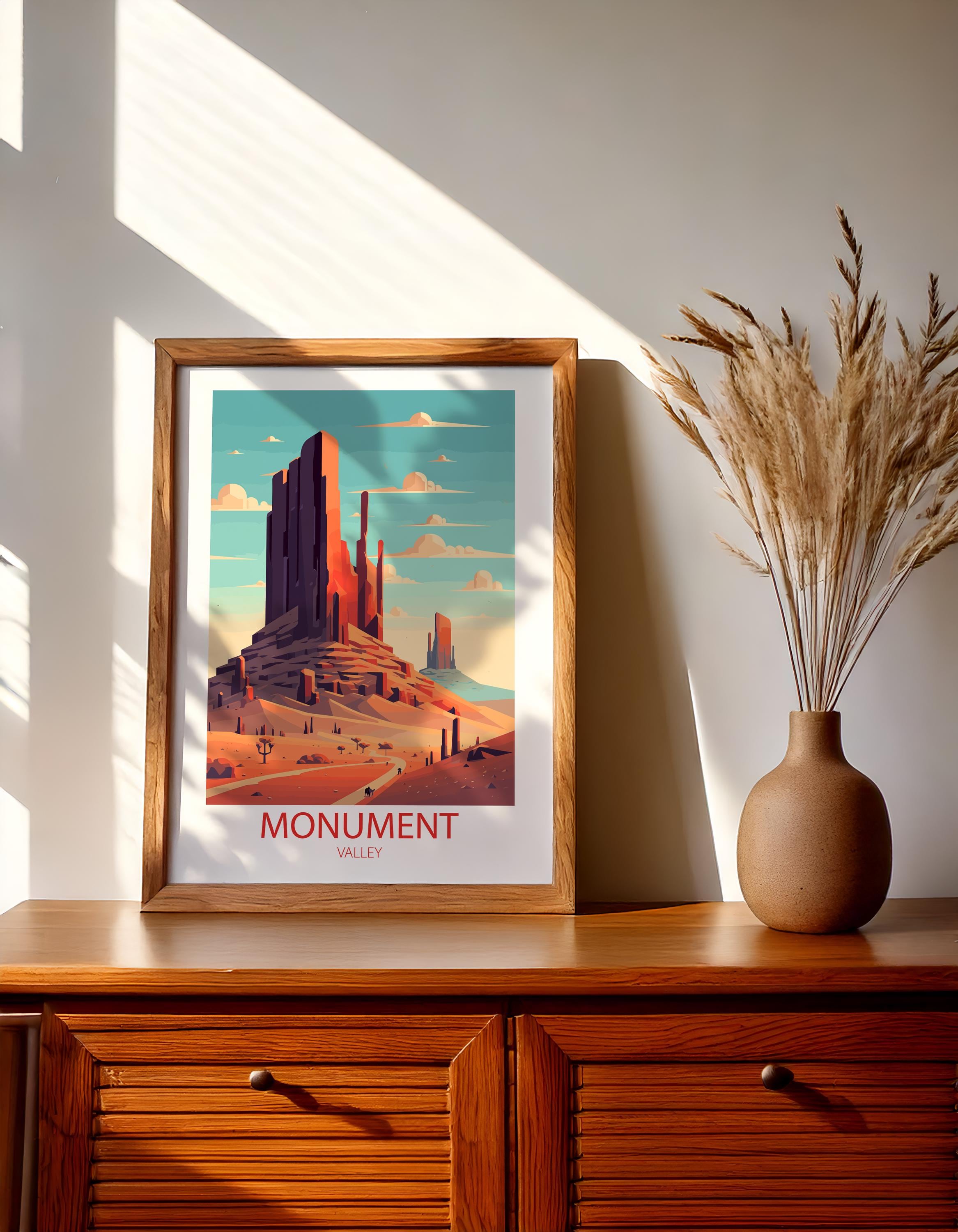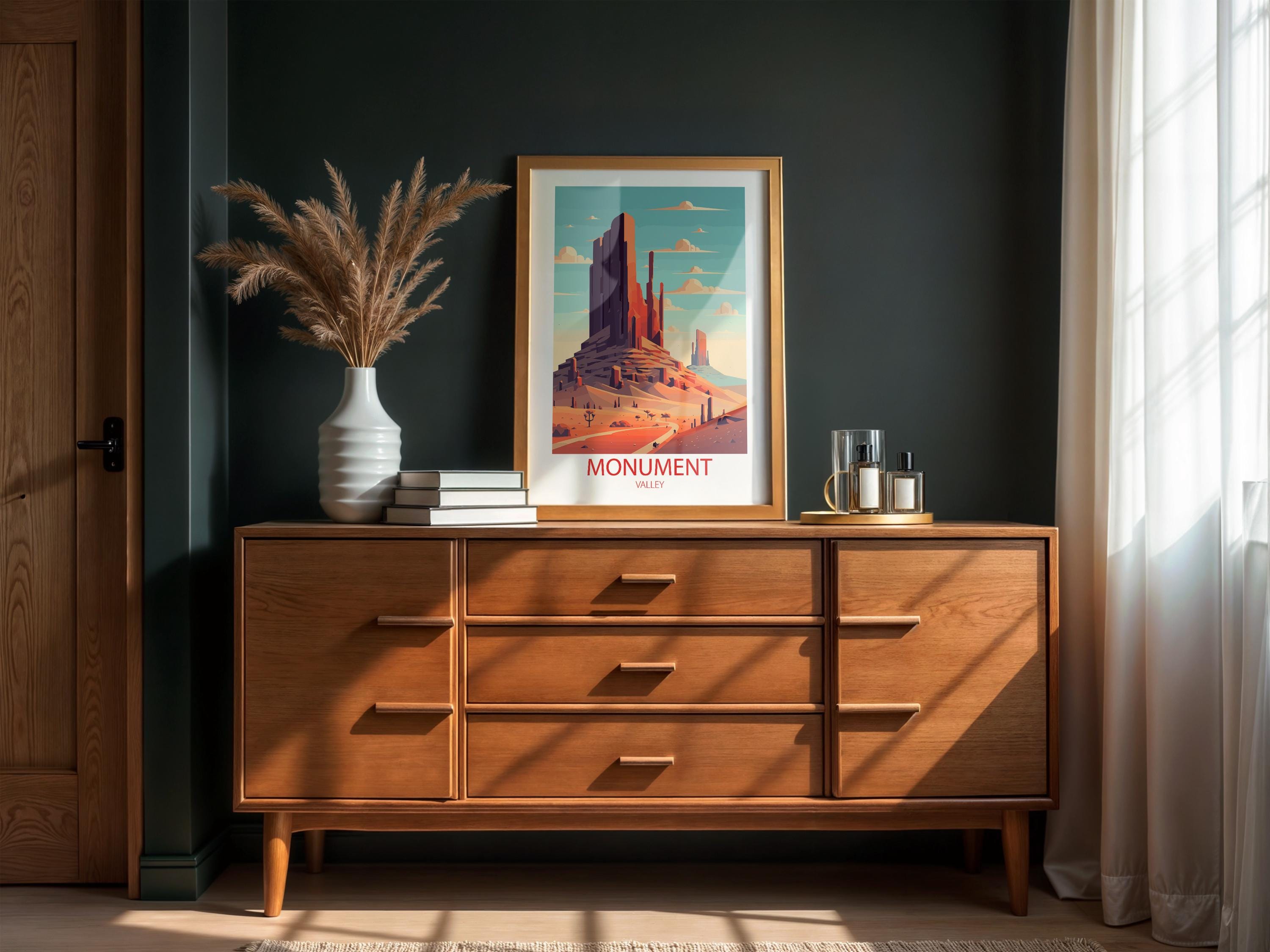 Whether you’re searching for a thoughtful gift for a traveler, curating a gallery wall of national park posters, or adding a unique statement piece to your space, this Monument Valley wall art is a stylish choice. Inspired by classic mid-century travel ads, it captures nostalgia, elegance, and the spirit of exploration.