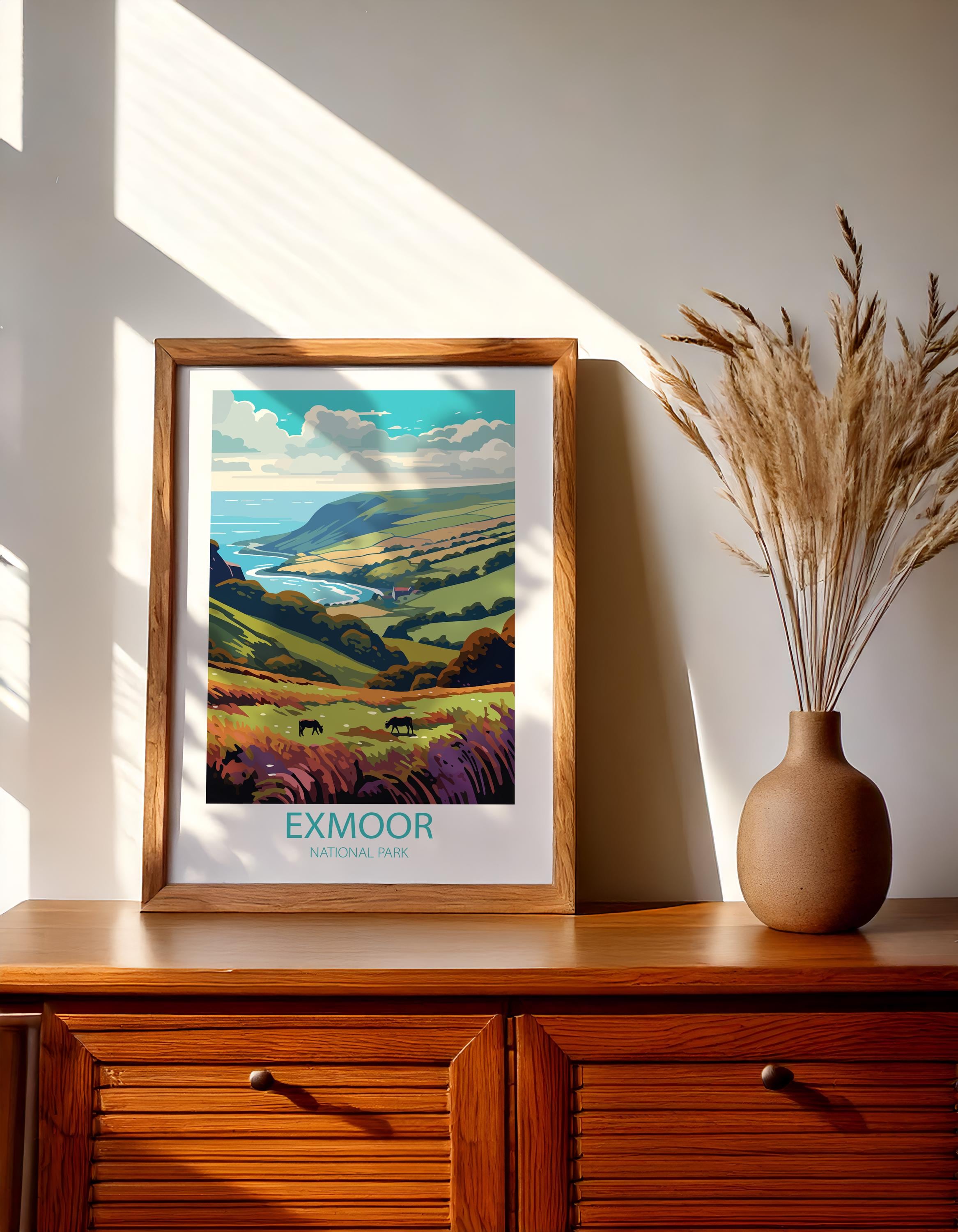 Whether you’re searching for a thoughtful gift for a traveler, curating a gallery wall of countryside posters, or adding a unique statement piece to your space, this Exmoor wall art is a stylish choice. Inspired by classic mid-century travel ads, it captures nostalgia, elegance, and the spirit of exploration.