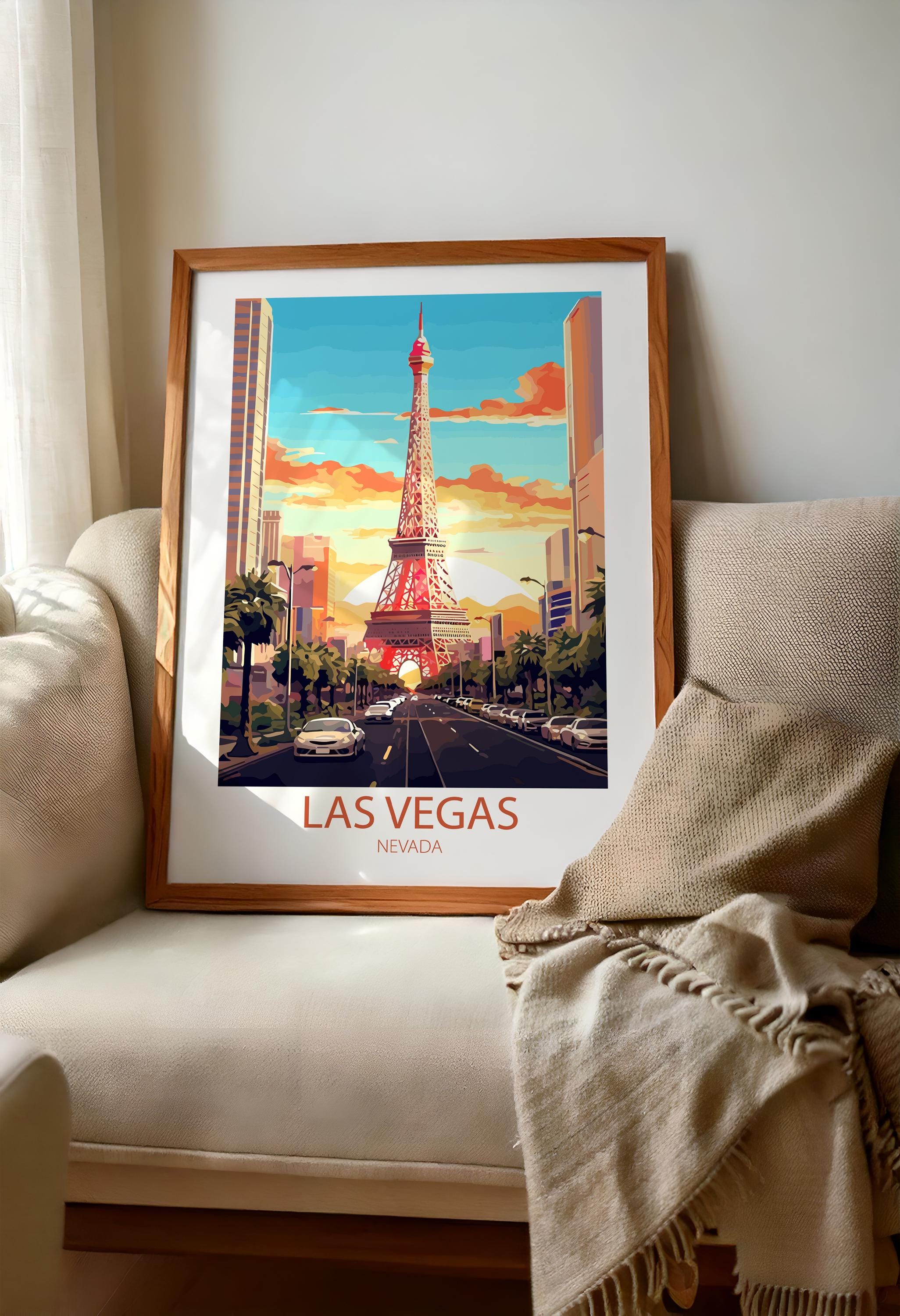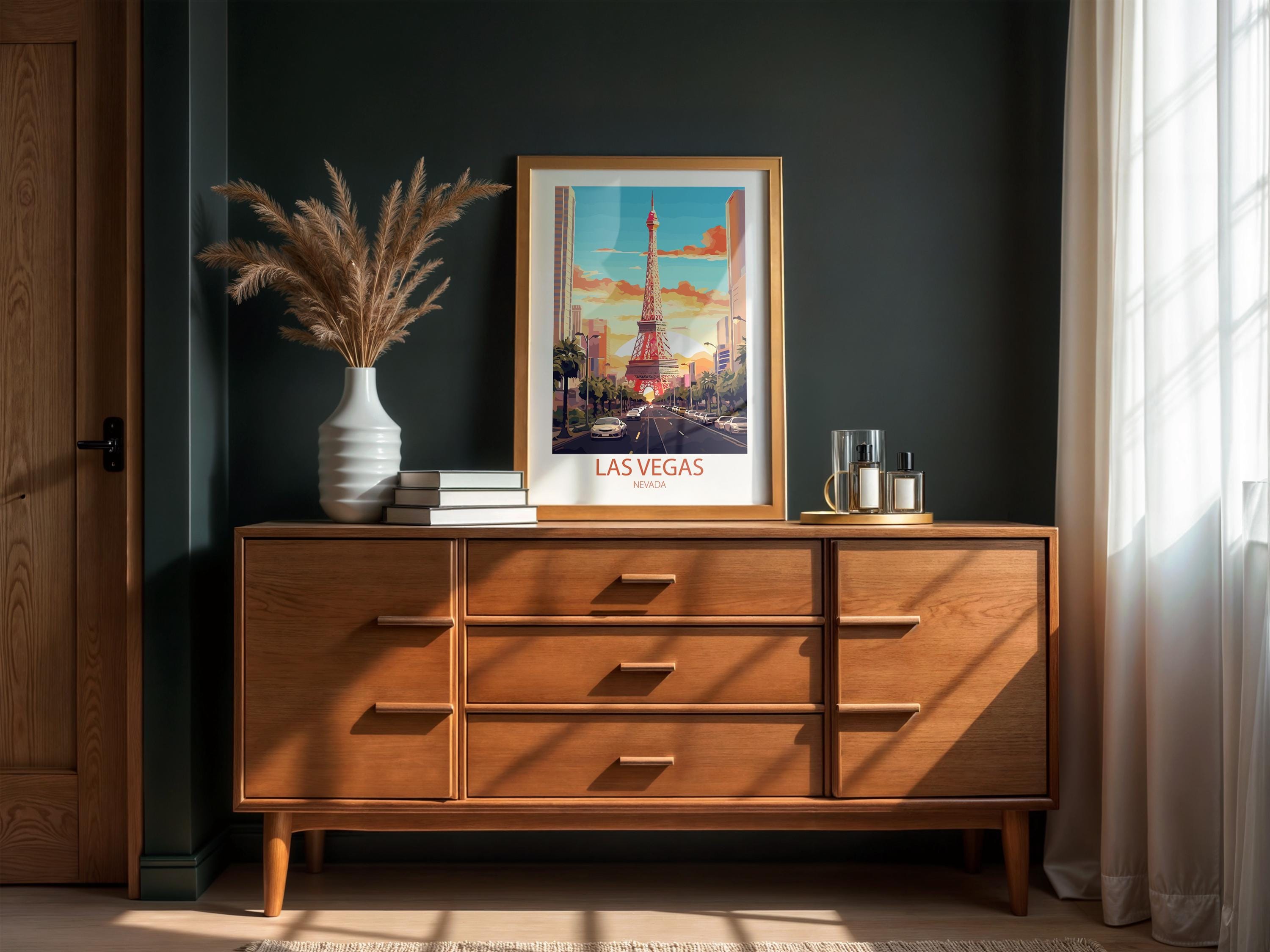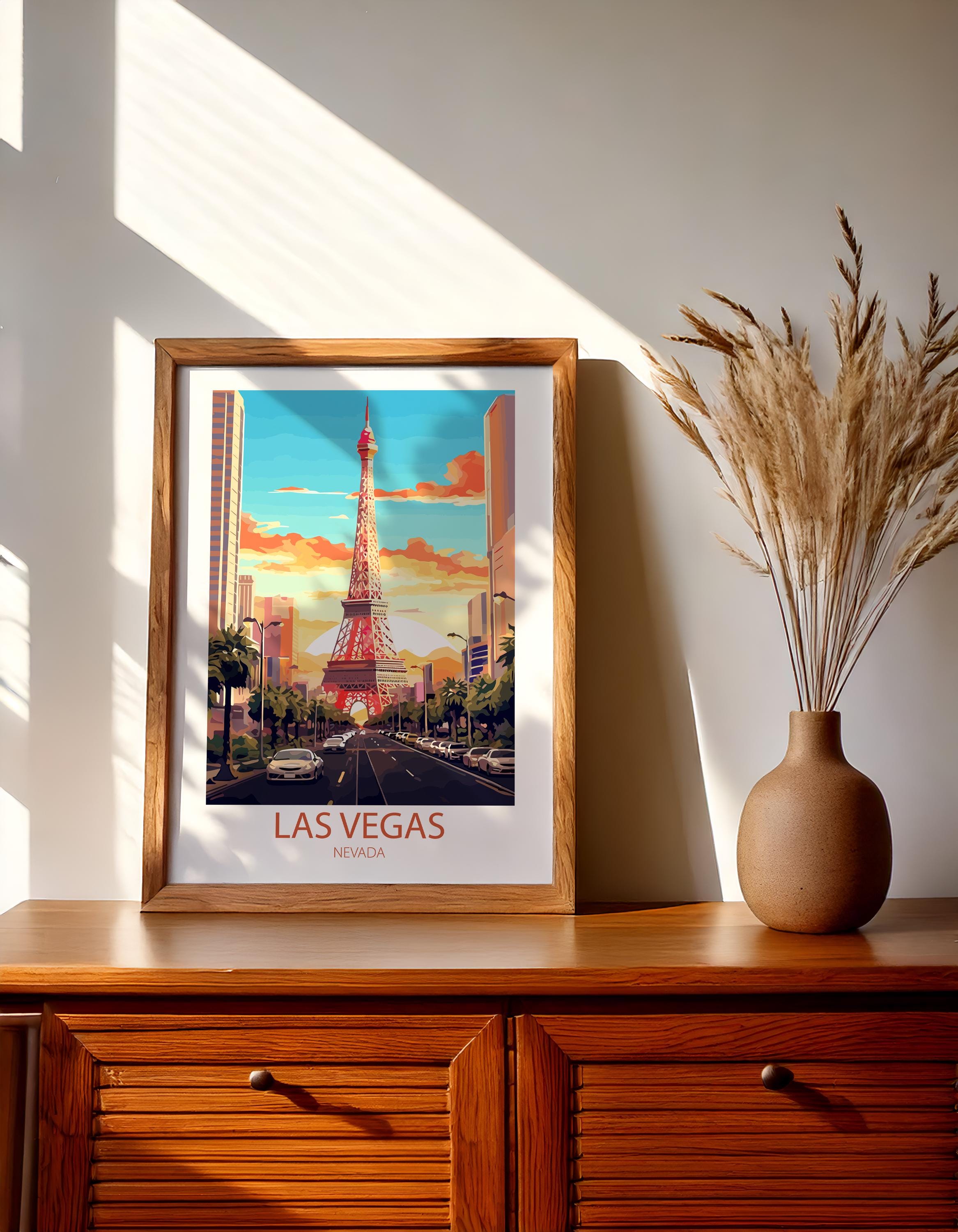 Whether you’re searching for a thoughtful gift for a traveler, curating a gallery wall of city posters, or adding a unique statement piece to your space, this Las Vegas wall art is a stylish choice. Inspired by classic mid-century travel ads, it captures nostalgia, elegance, and the spirit of exploration.
