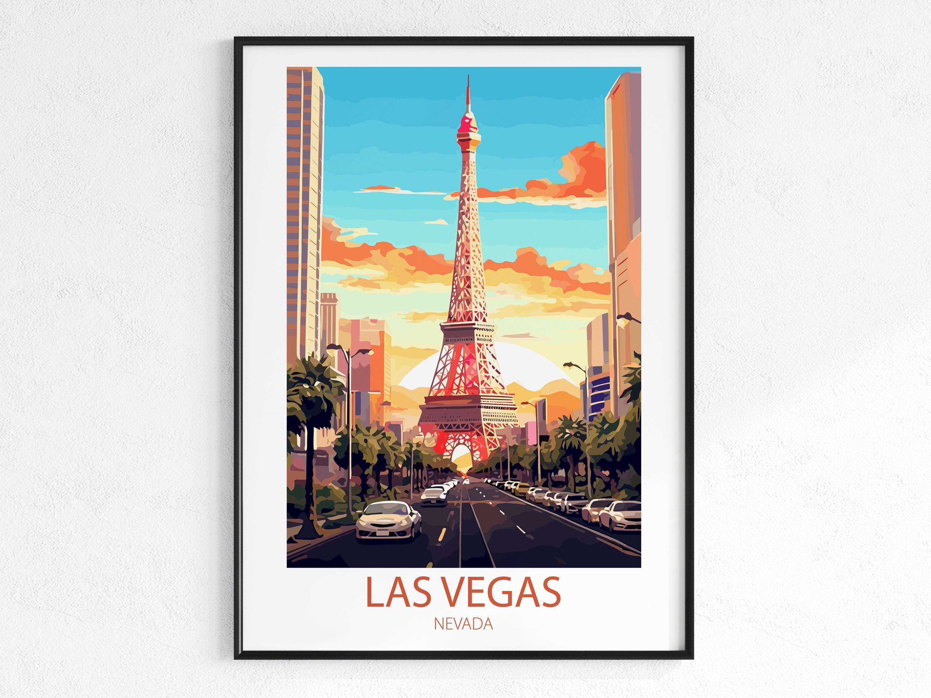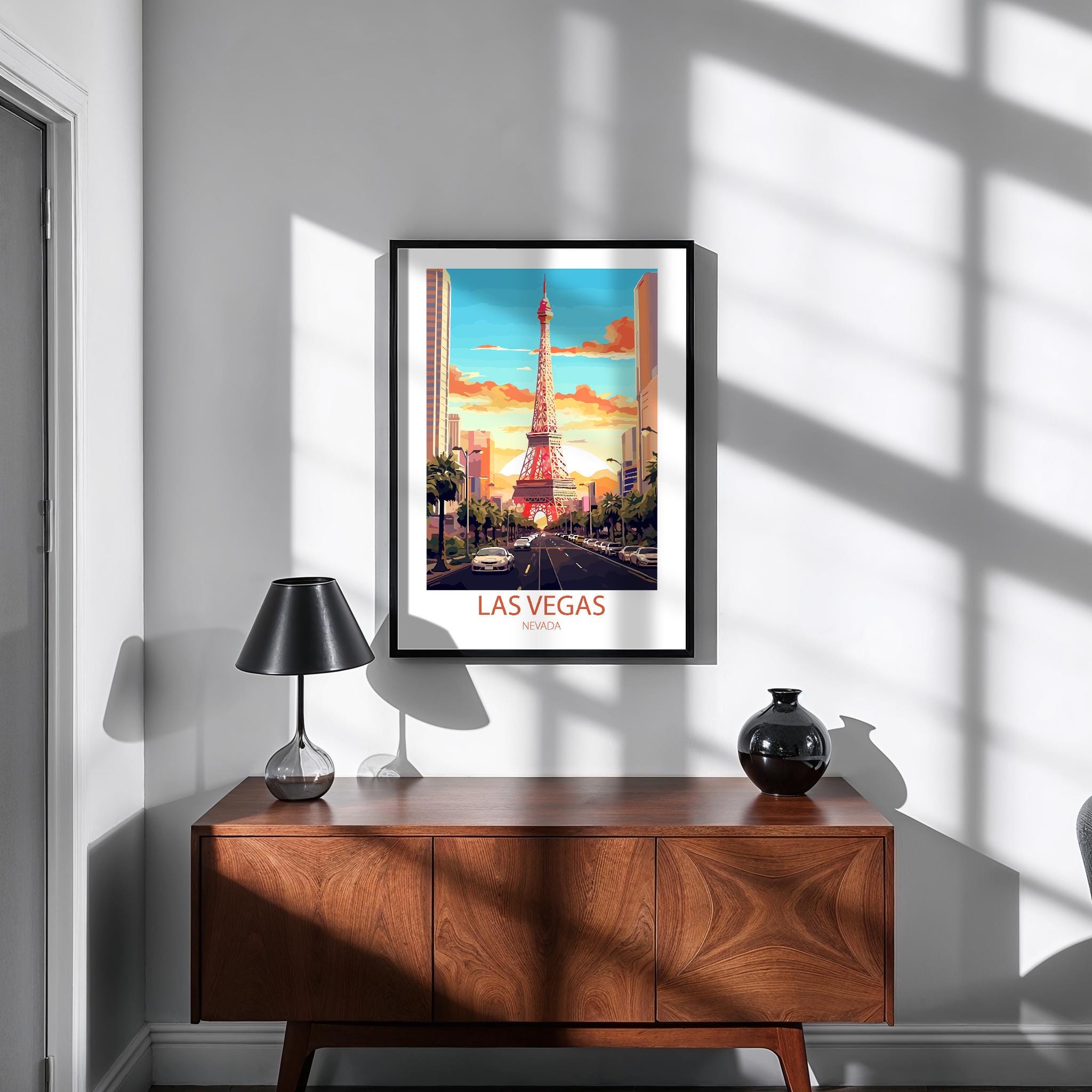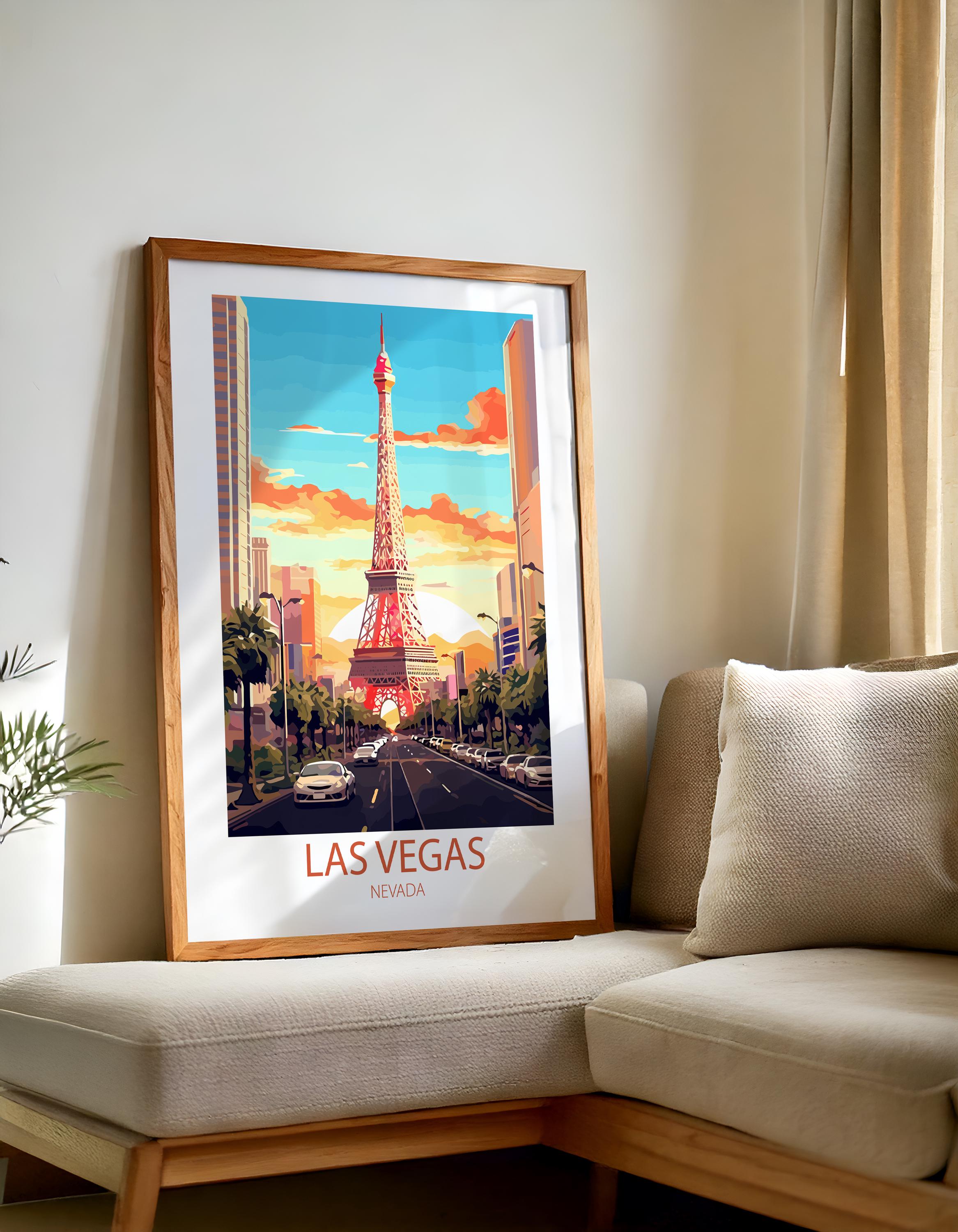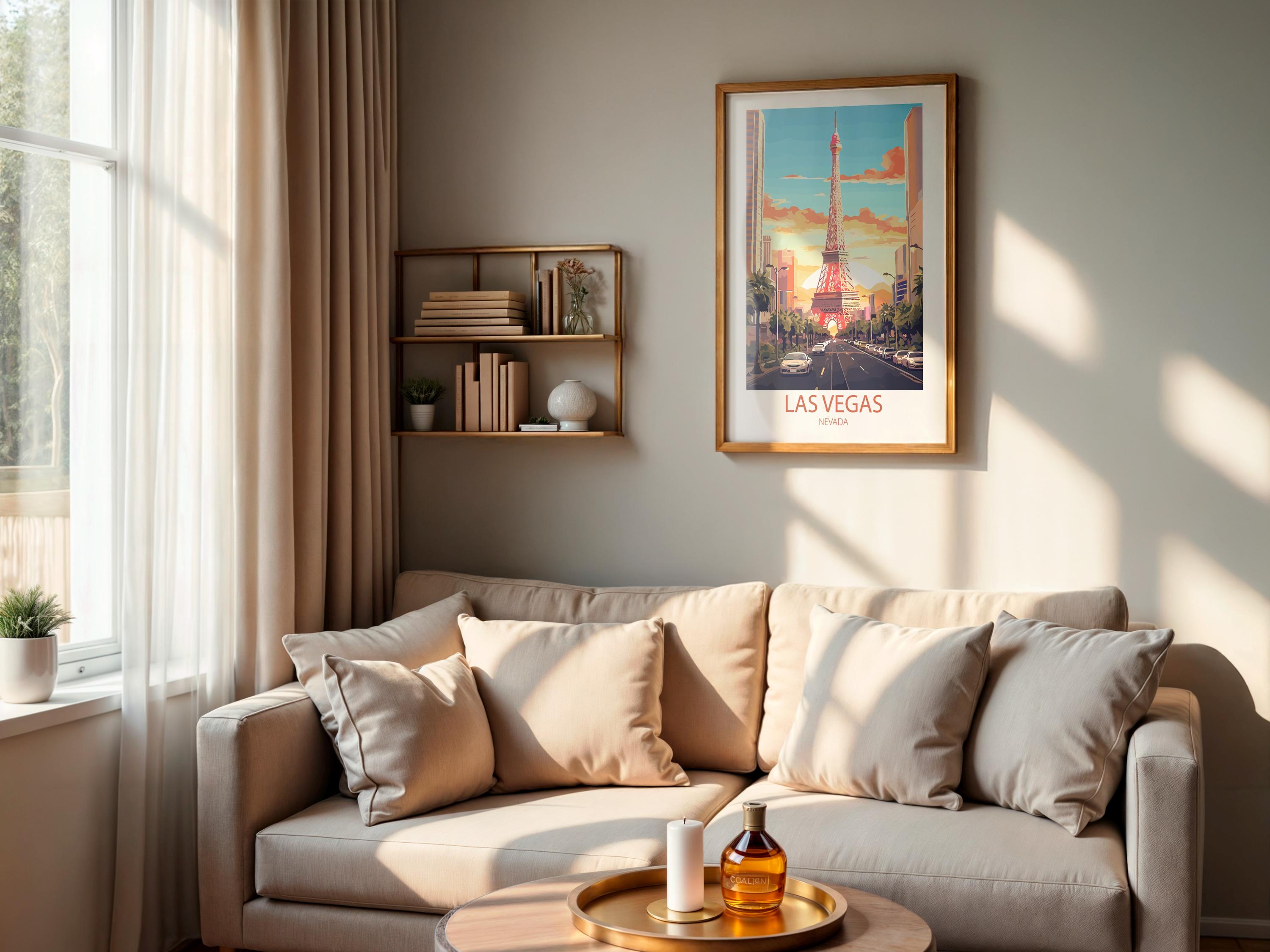 Whether you’re searching for a thoughtful gift for a traveler, curating a gallery wall of city posters, or adding a unique statement piece to your space, this Las Vegas wall art is a stylish choice. Inspired by classic mid-century travel ads, it captures nostalgia, elegance, and the spirit of exploration.