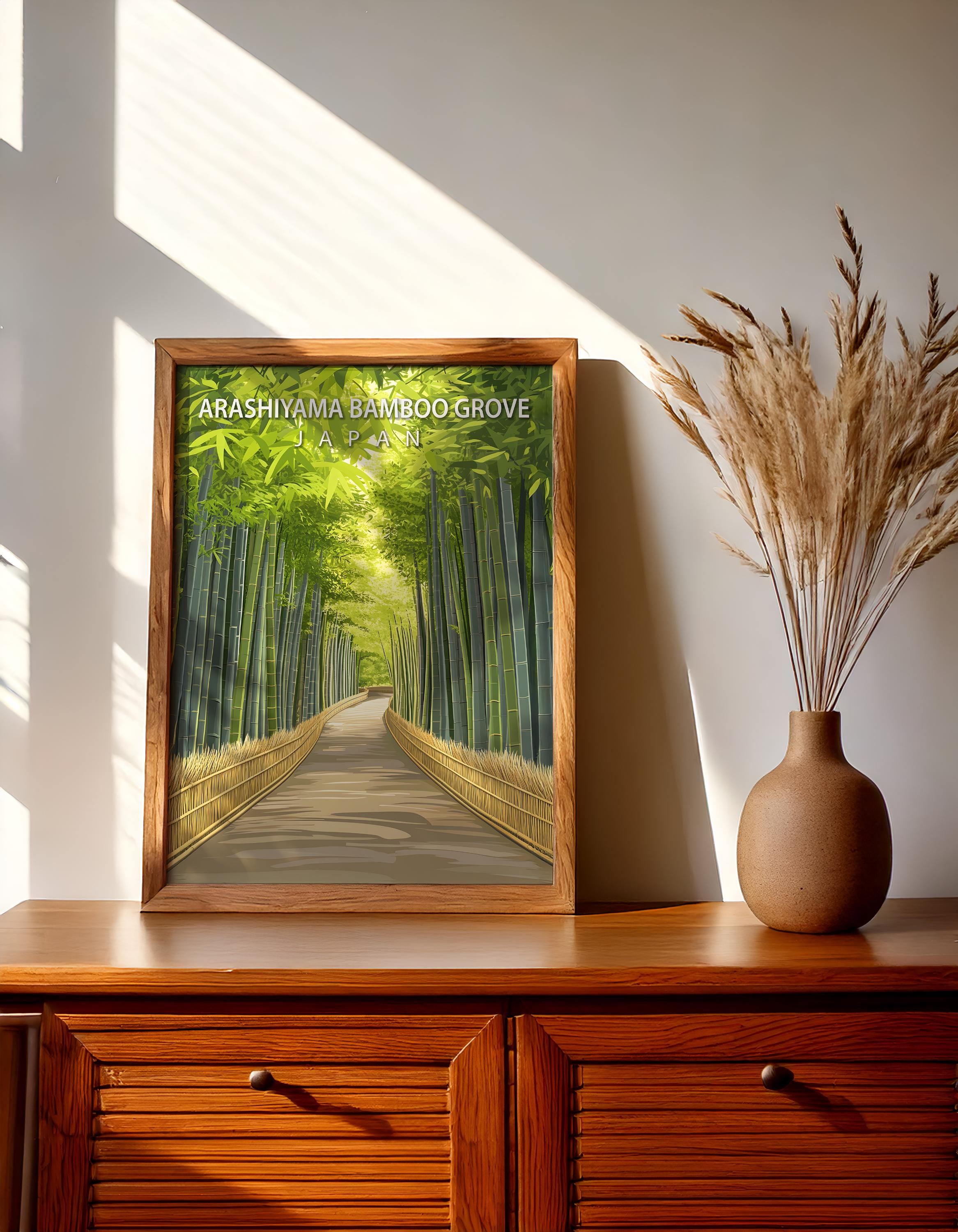 ✨ Add this Arashiyama Bamboo Grove travel poster to your cart today and enjoy timeless Japanese beauty.
