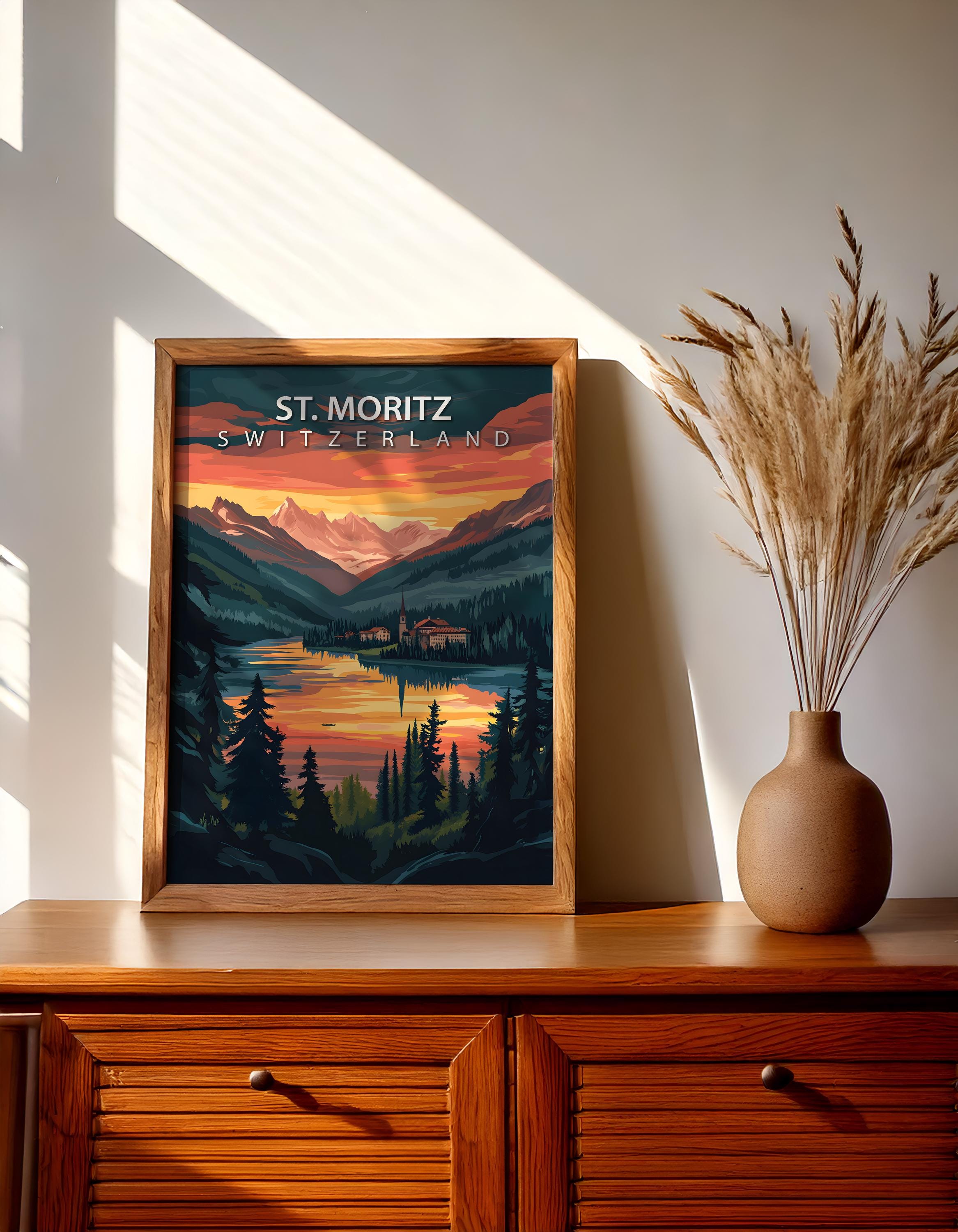 ✨ Add this St. Moritz travel poster to your cart today and enjoy alpine charm.