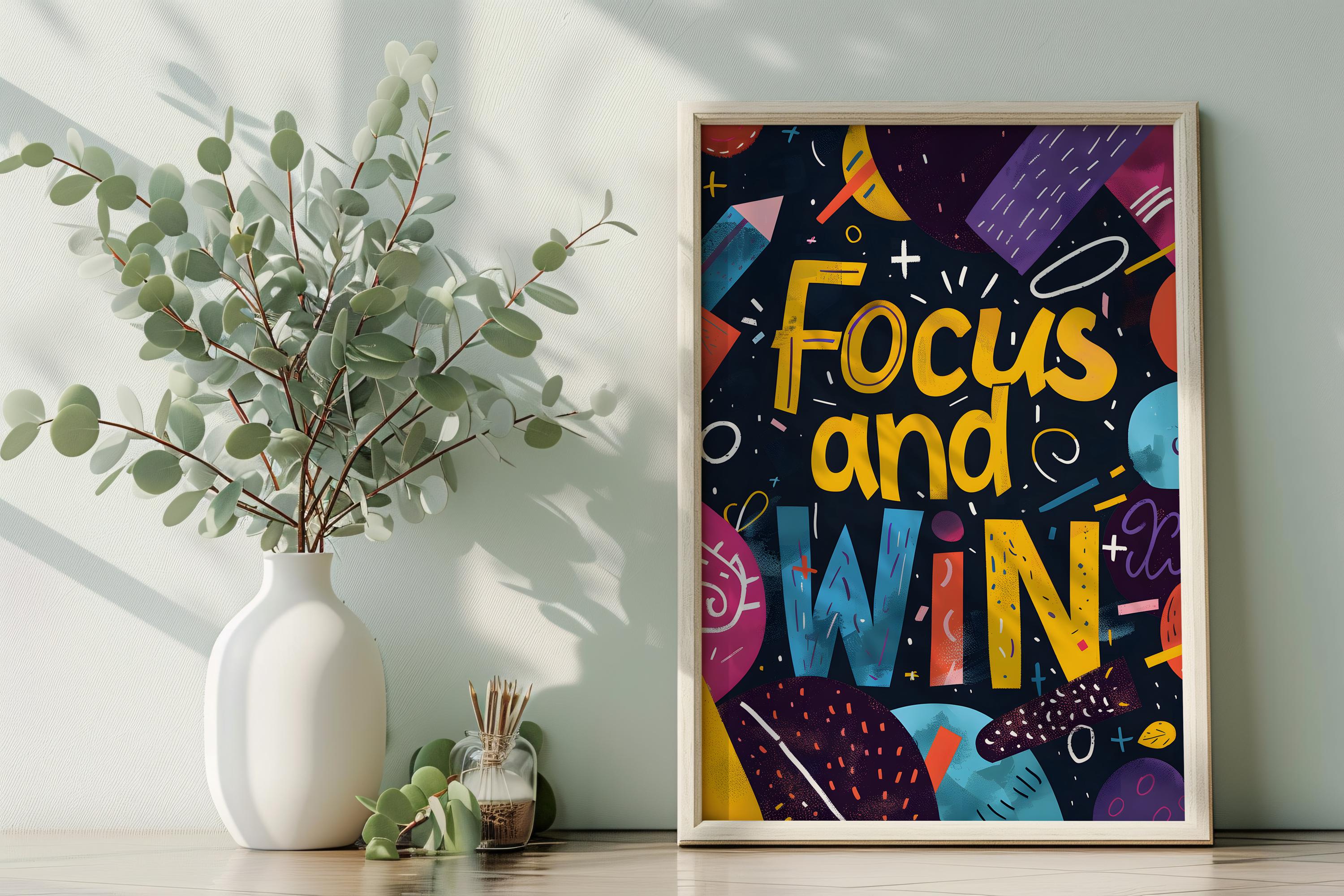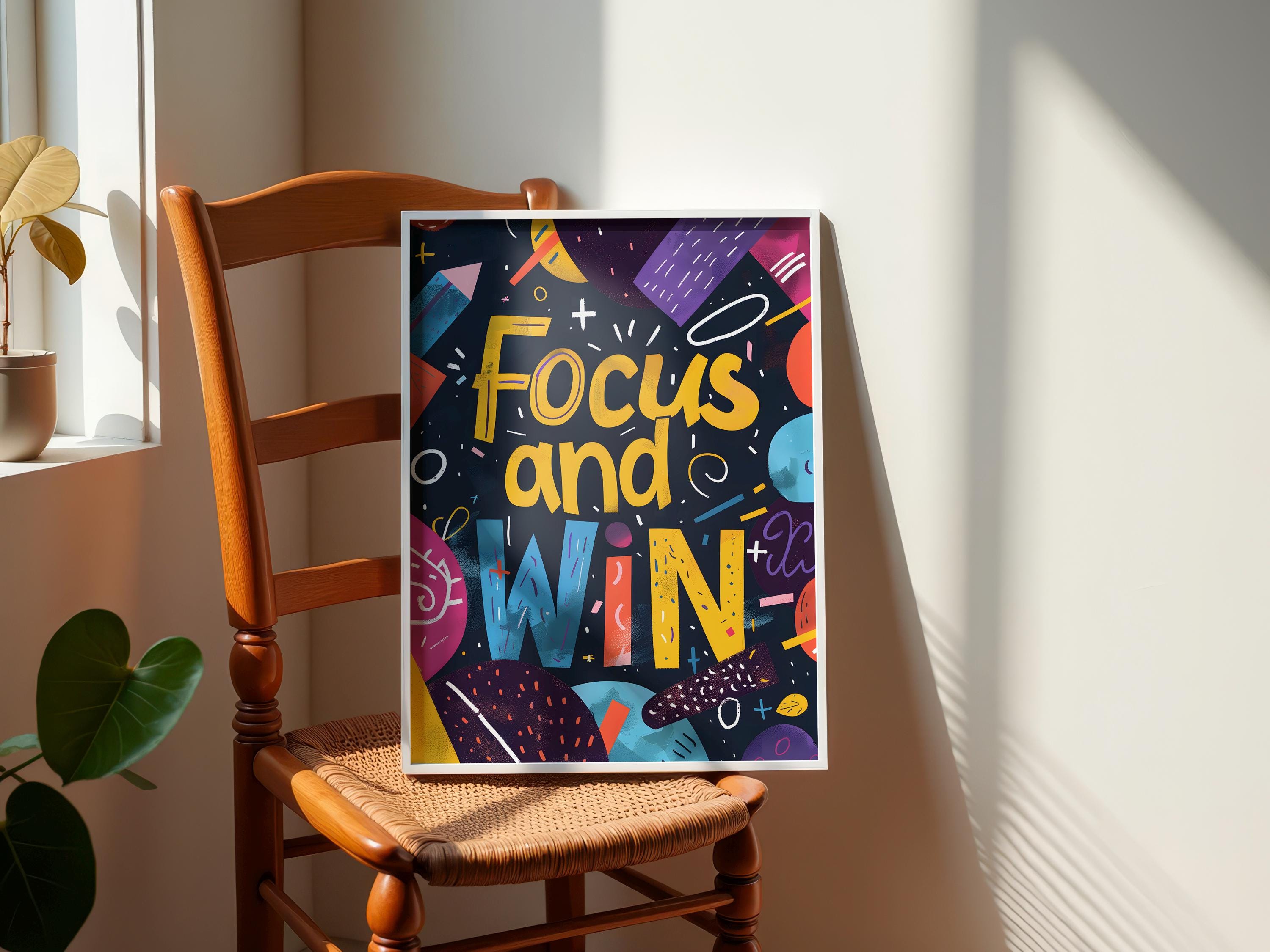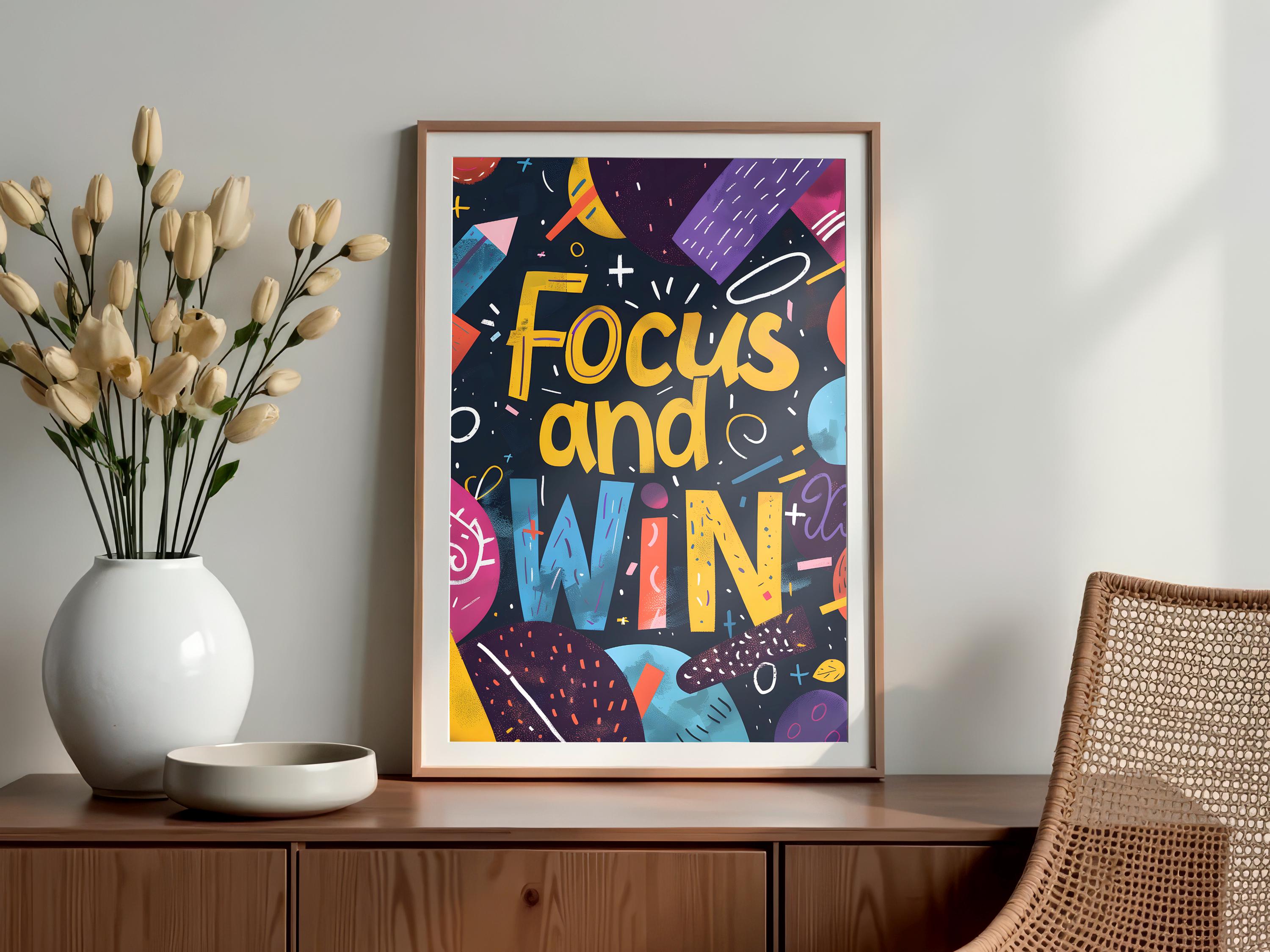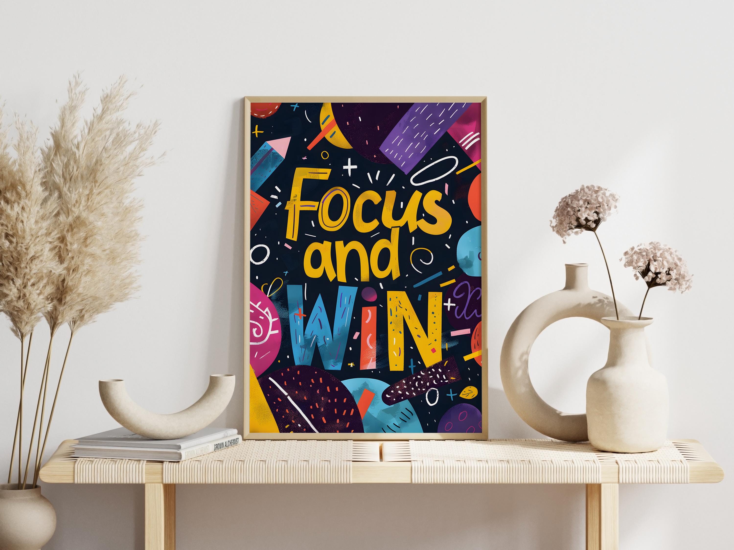 Focus and Win Poster – motivational wall art and inspirational quote print designed to boost productivity and clarity. Perfect for study rooms, dorm walls, or offices, this positive poster is a daily reminder to stay focused and succeed. An ideal gift for students or professionals.