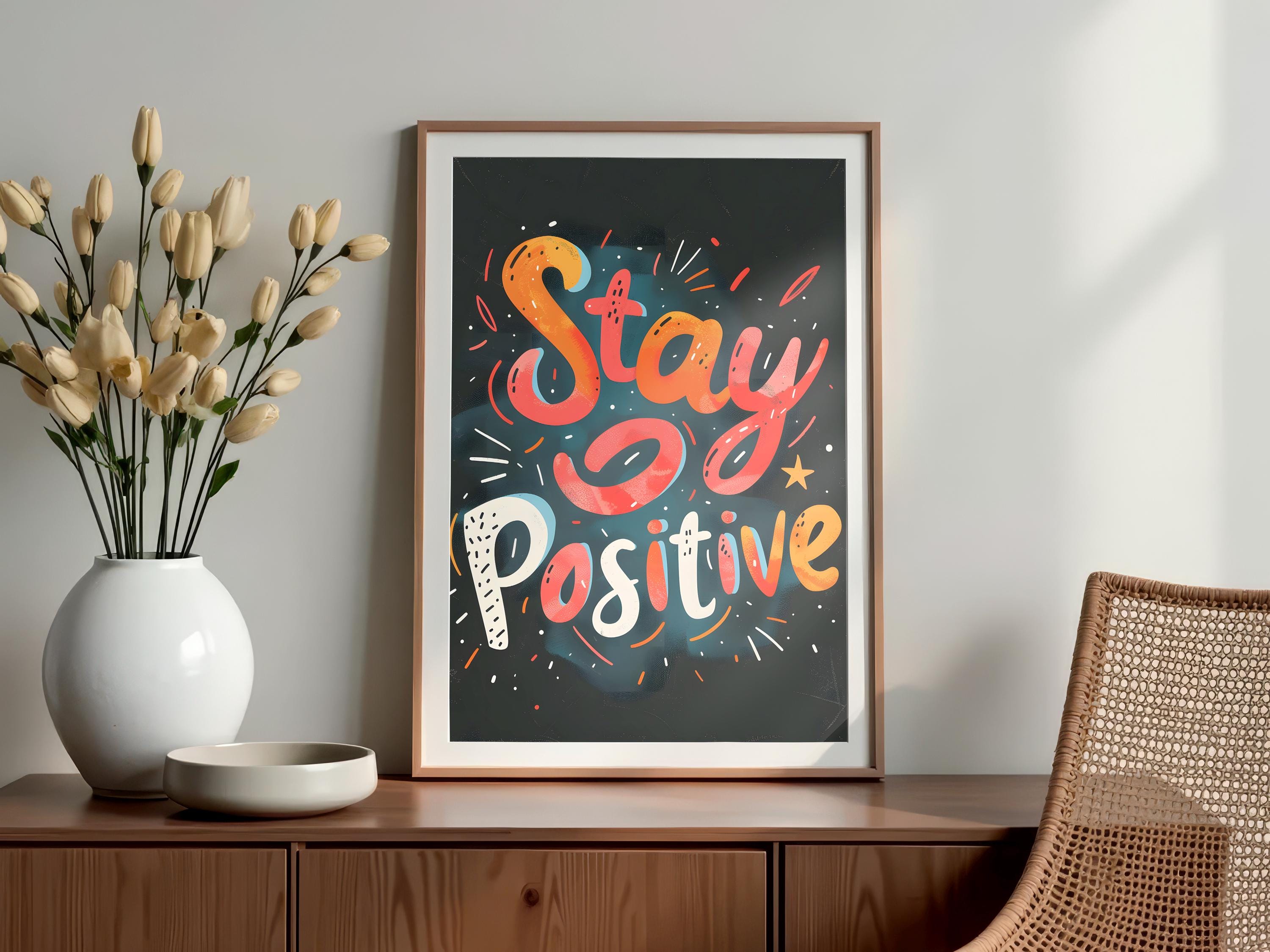 Bring daily encouragement and optimism into your home with this Stay Positive Poster – an uplifting motivational poster and inspirational wall art. This positive quote print makes stylish dorm decor, charming apartment wall art, or a thoughtful gift to inspire hope and gratitude every day.