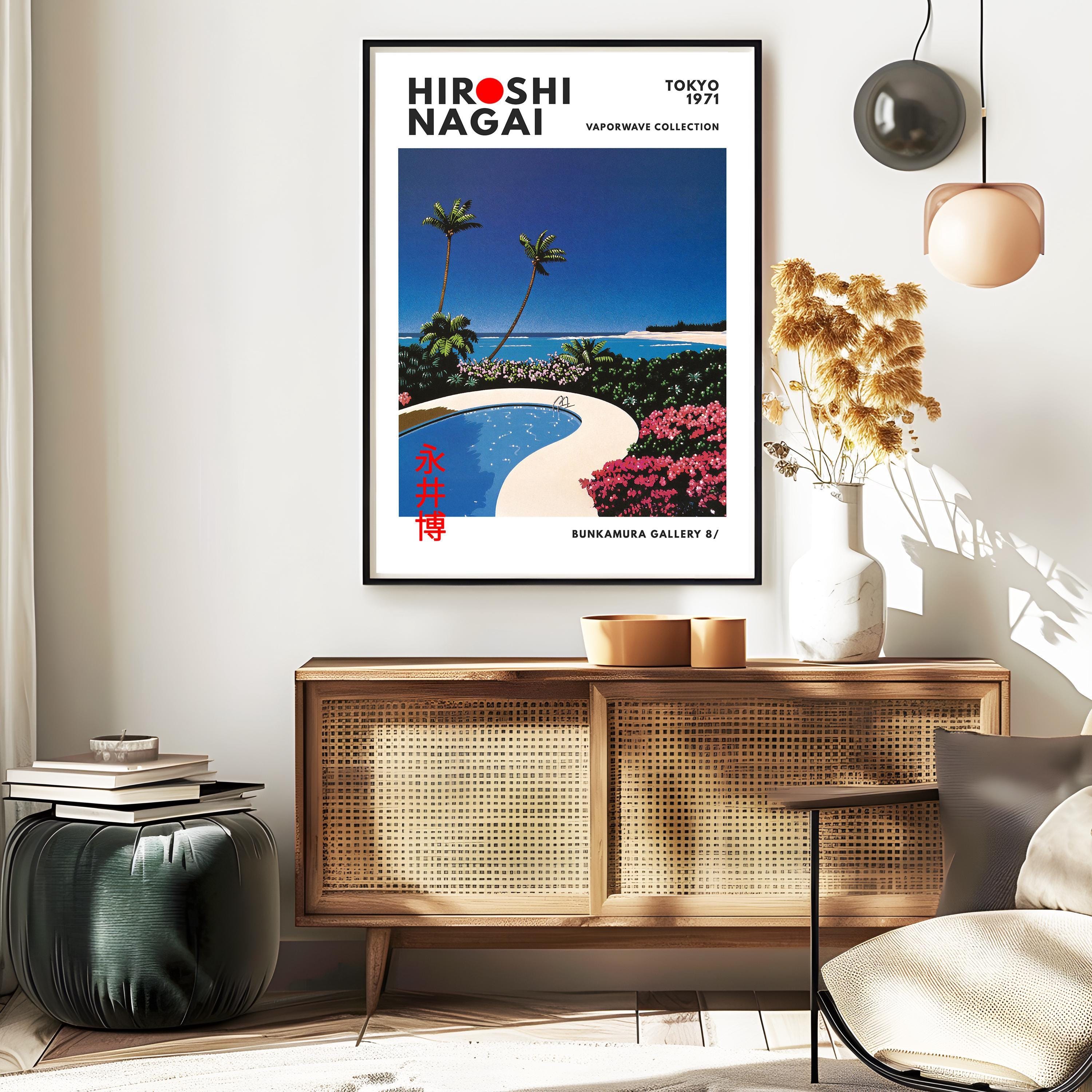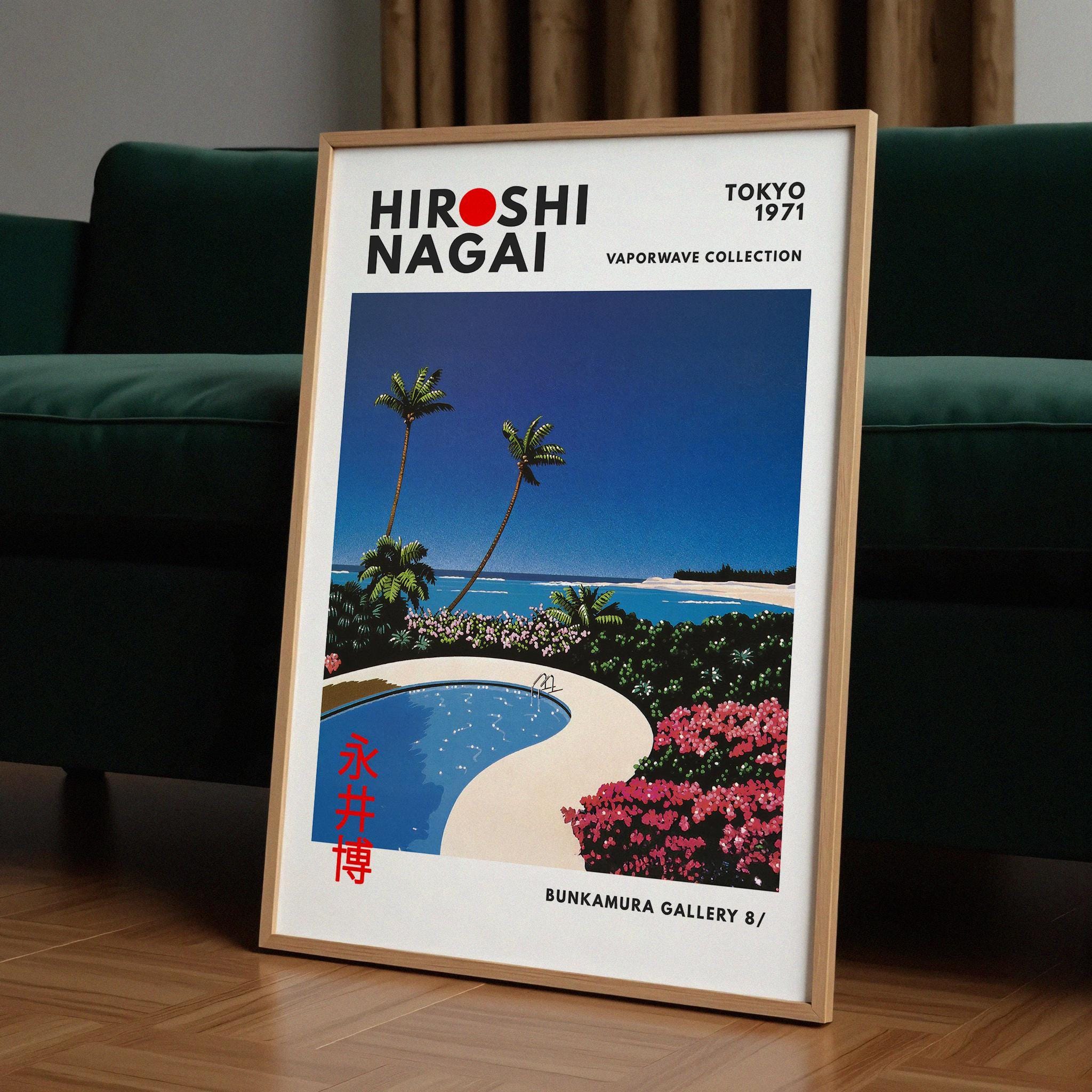 Japanese art print with album-art aura—retro wall art, city pop lineage and vaporwave gradients in a collectible vintage poster vibe. Palm silhouettes and luminous horizons echo timeless pop melodies; an original Hiroshi Nagai artwork rooted in Japan’s golden city-pop era.