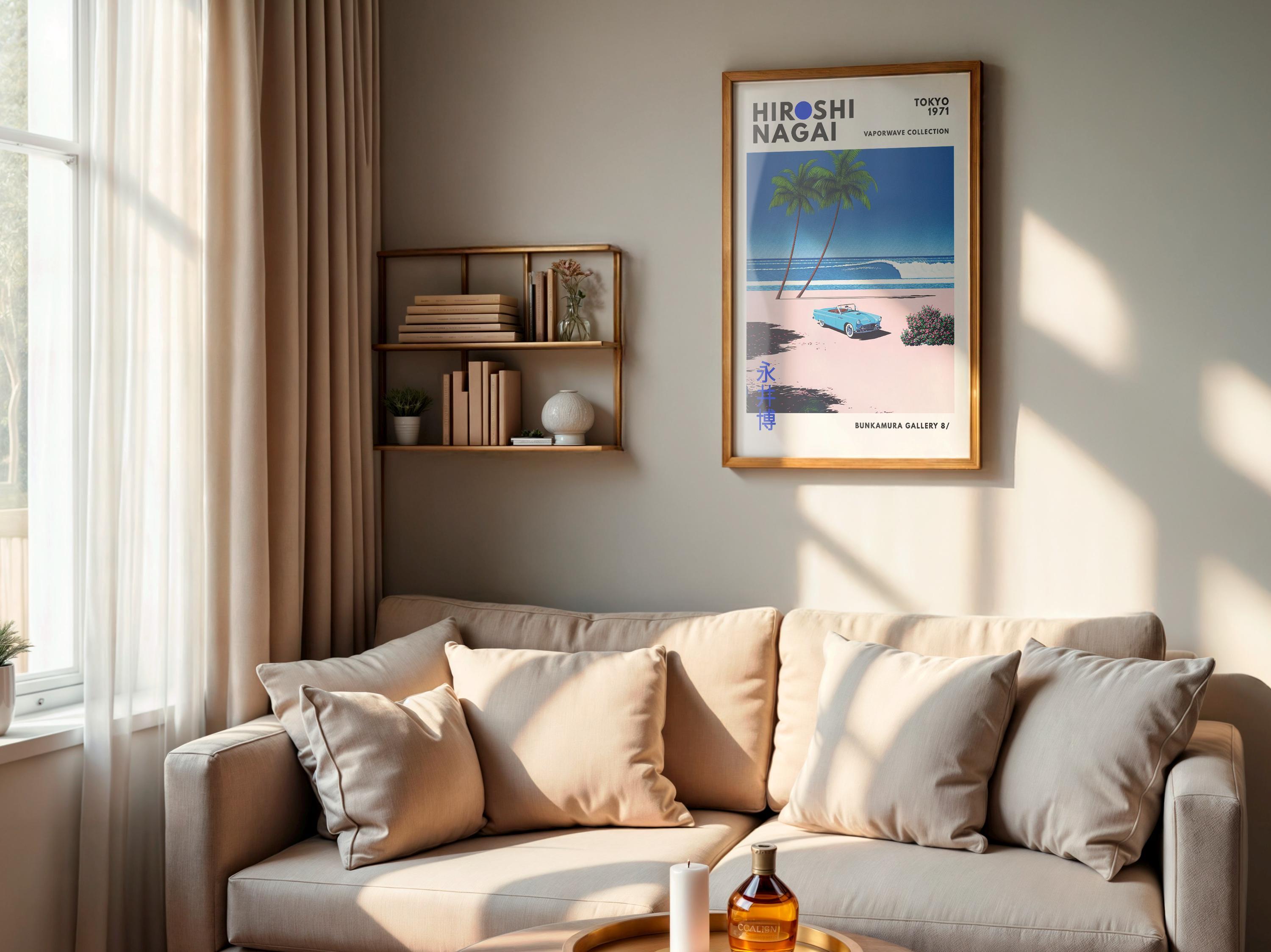 Gallery-style Japanese art print in minimalist poster form—retro wall art, vaporwave palette and vintage poster sensibility with city pop accent. Balanced labeling and crisp blocks feel exhibition-ready; an original Hiroshi Nagai design-driven piece.