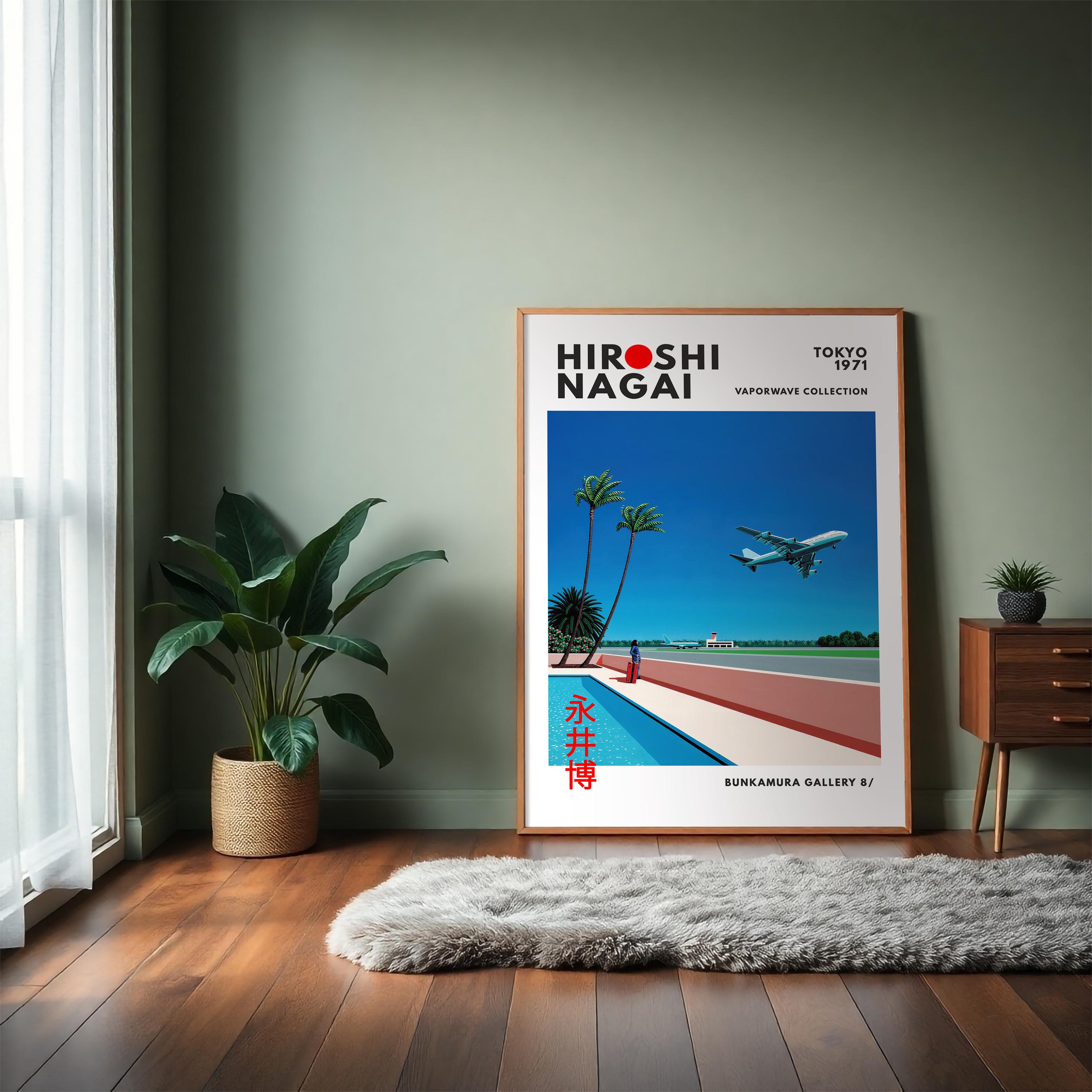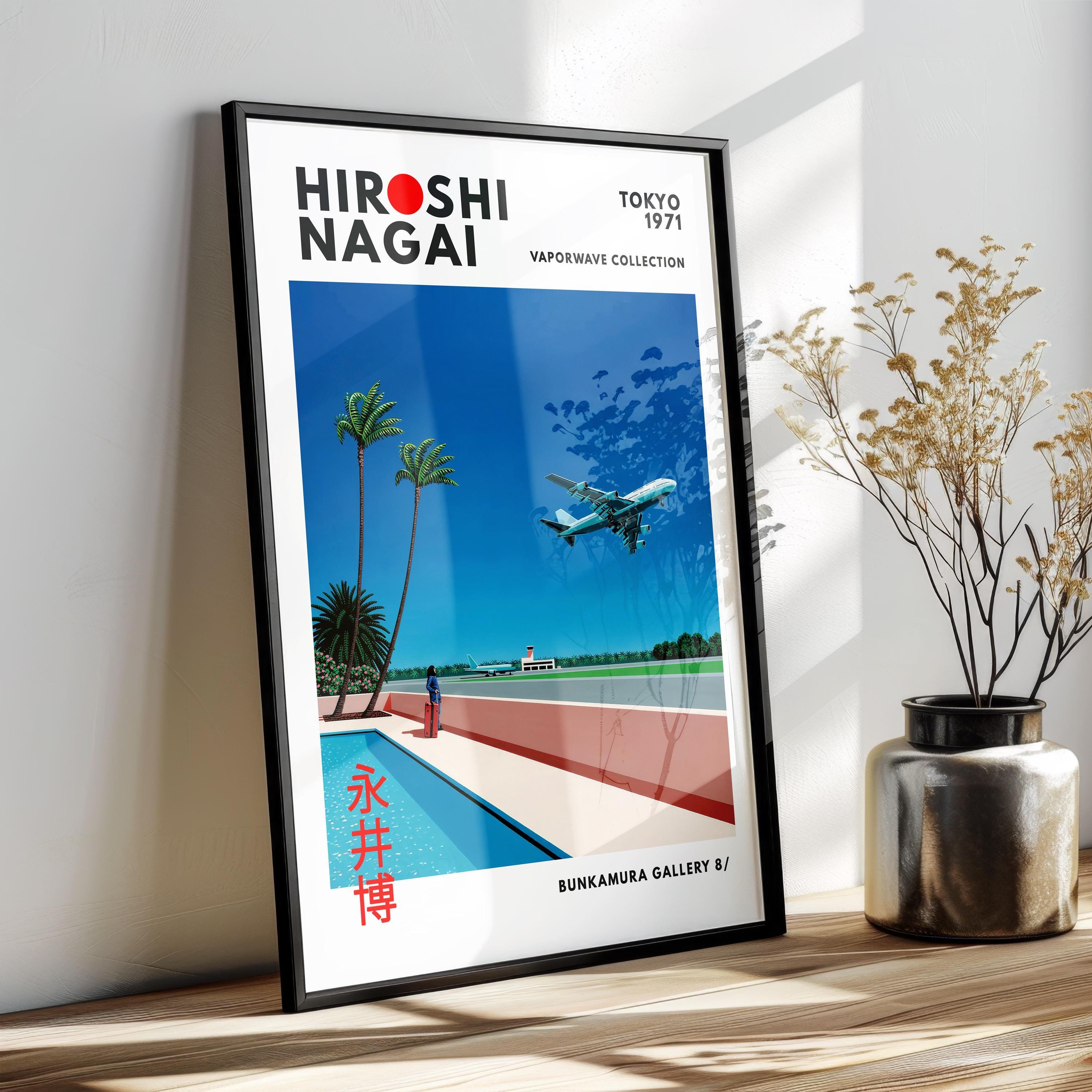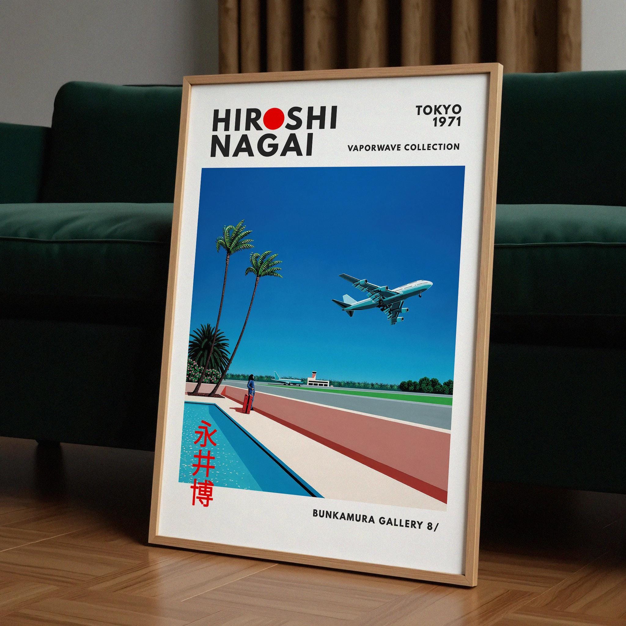 City pop skyline with vaporwave gradient—minimalist Japanese art print of palms and dusk glow, retro wall art sparkle and vintage poster optimism. Sleek contours suggest musical lift-off; an original Hiroshi Nagai work echoing Japan’s breezy pop-culture renaissance.