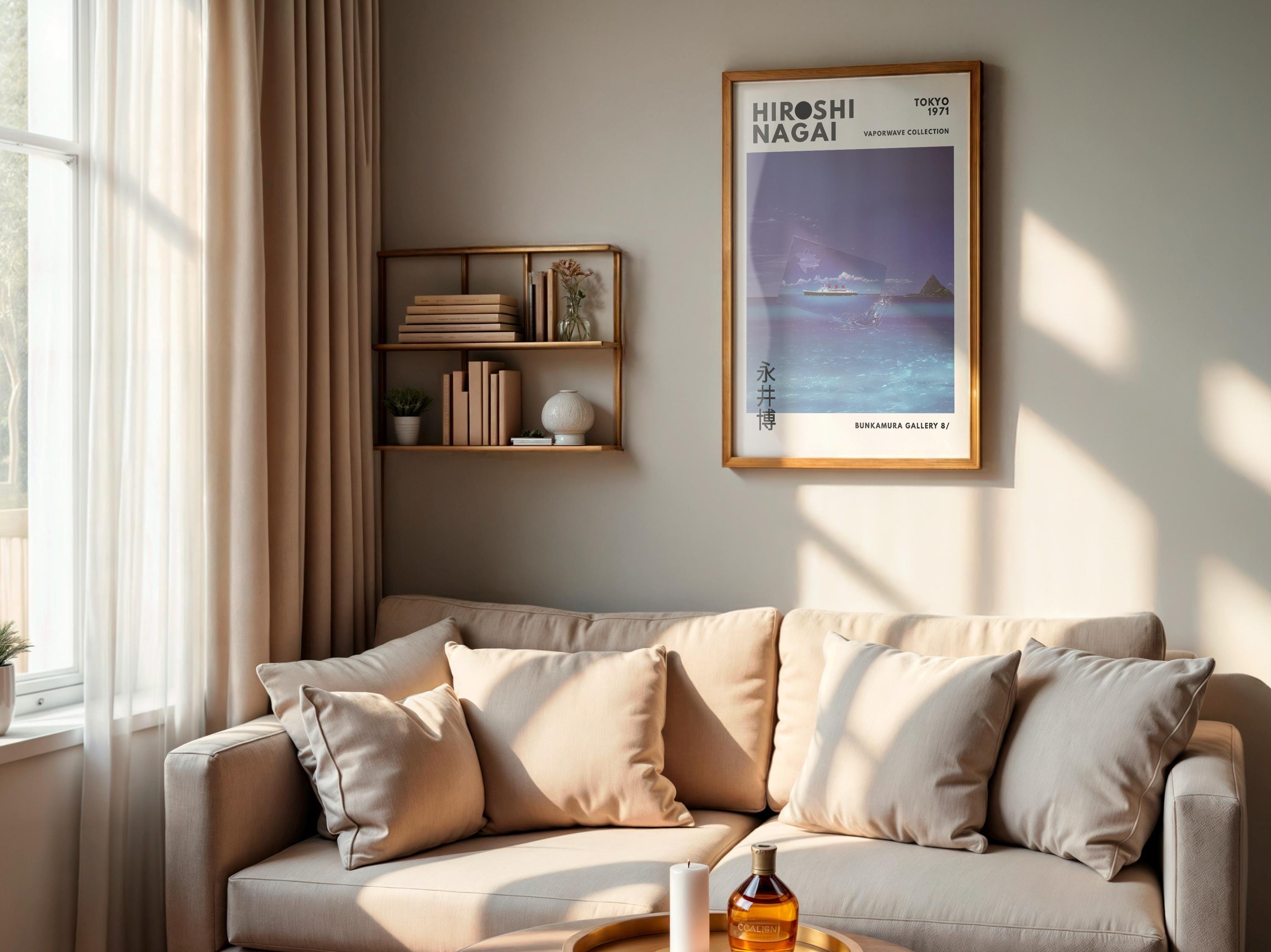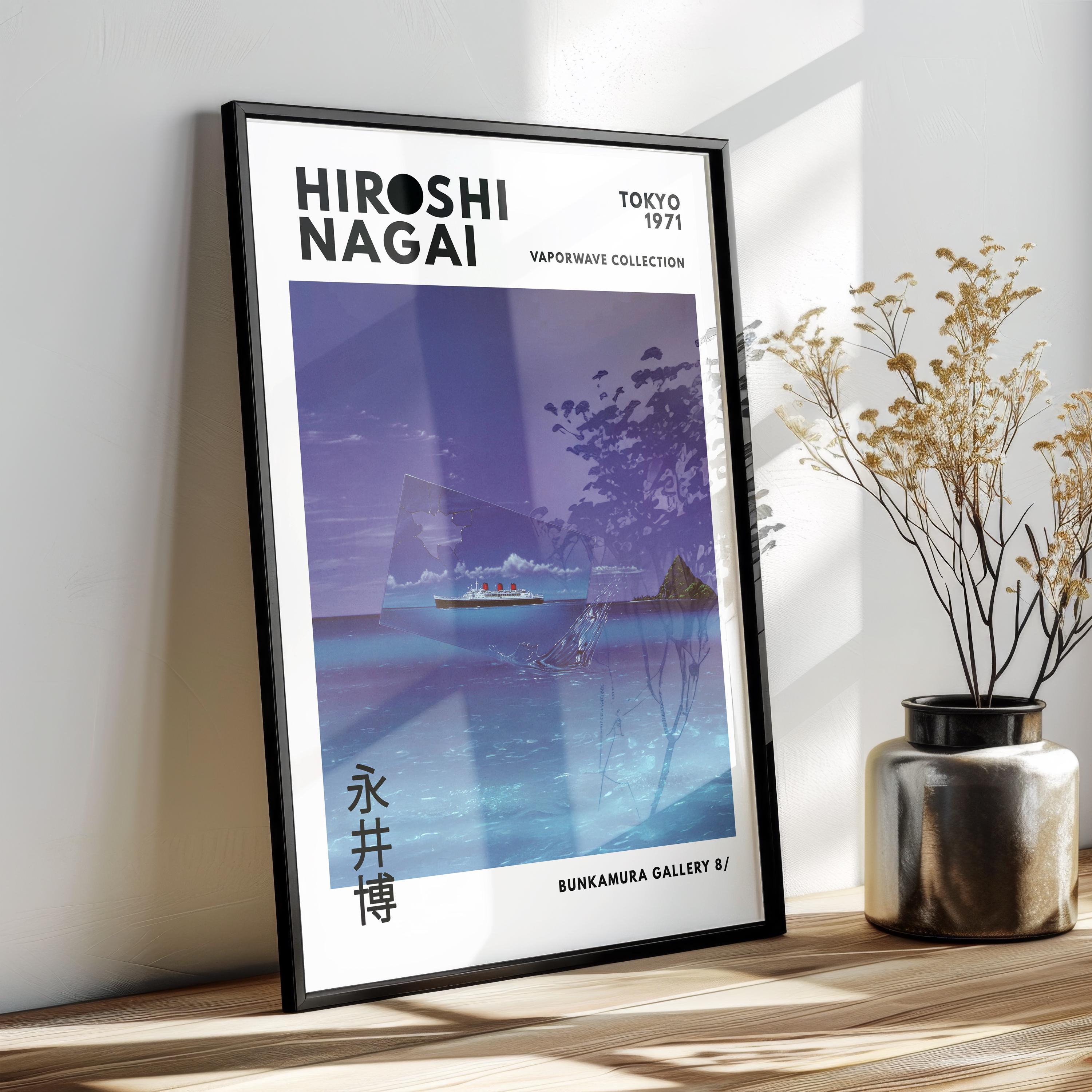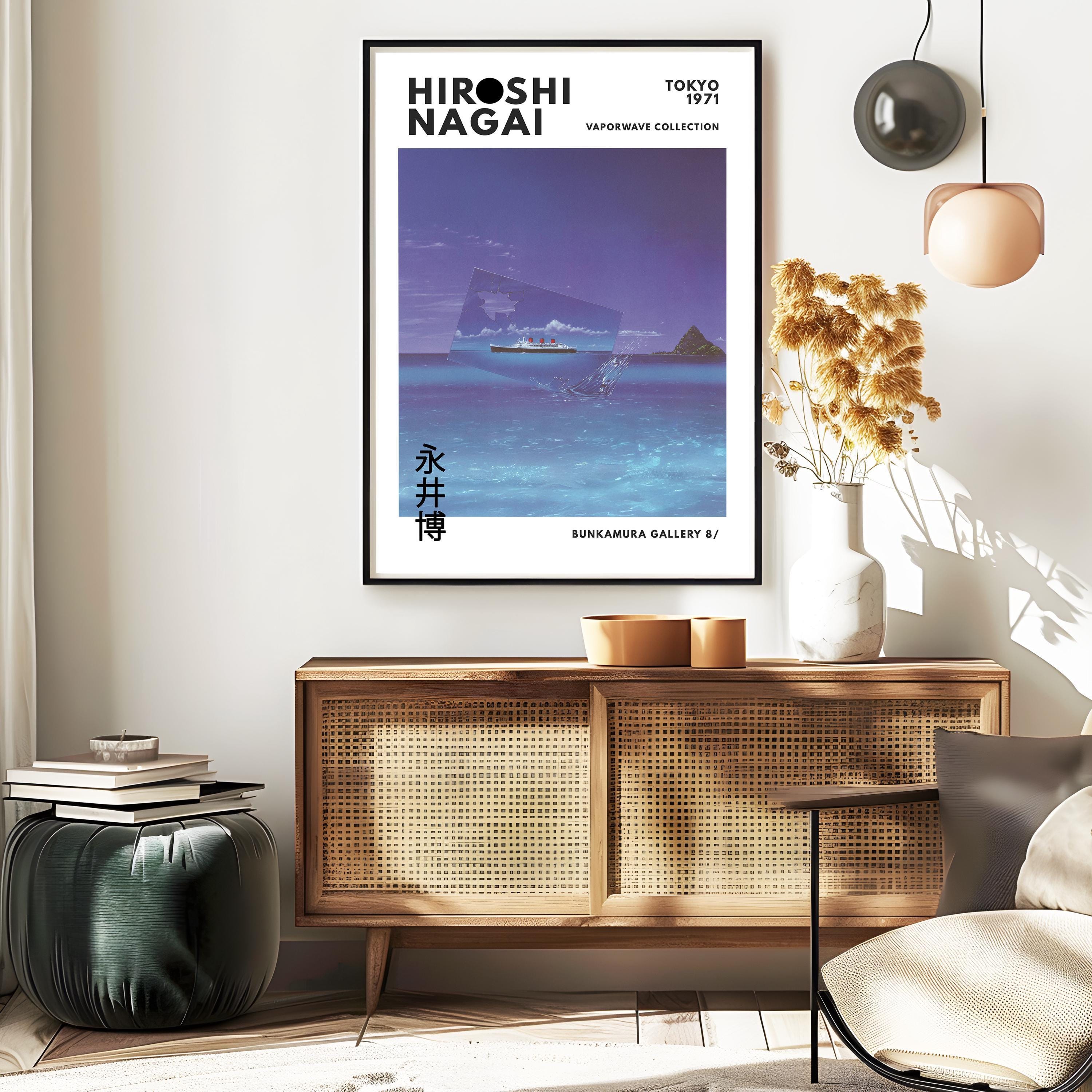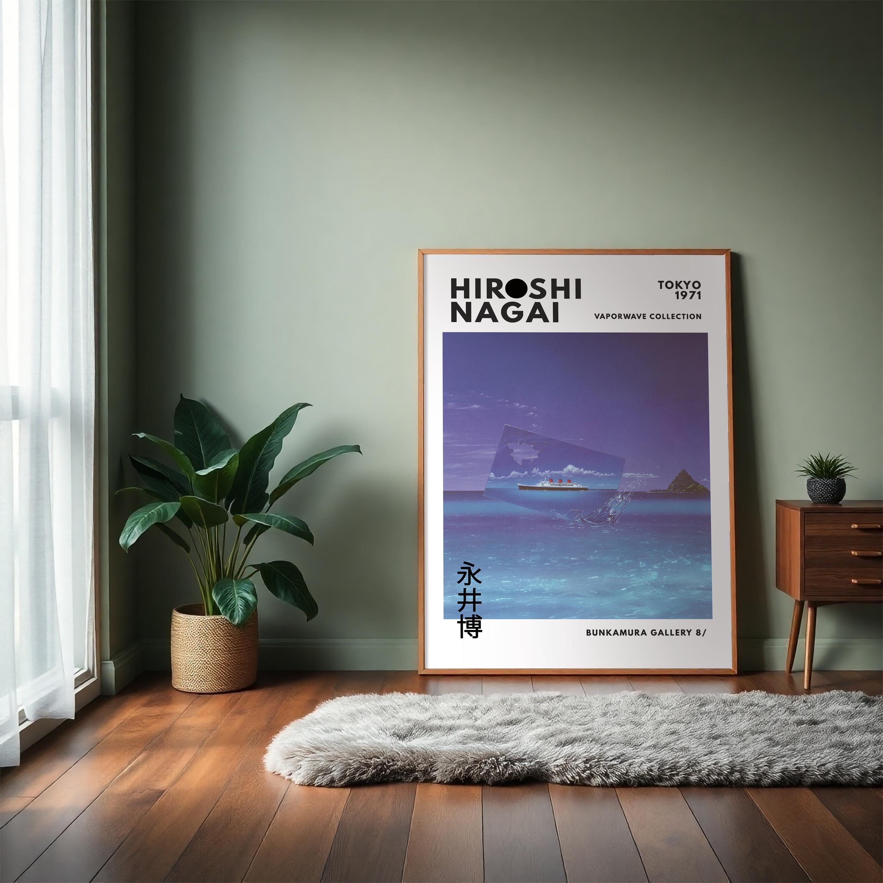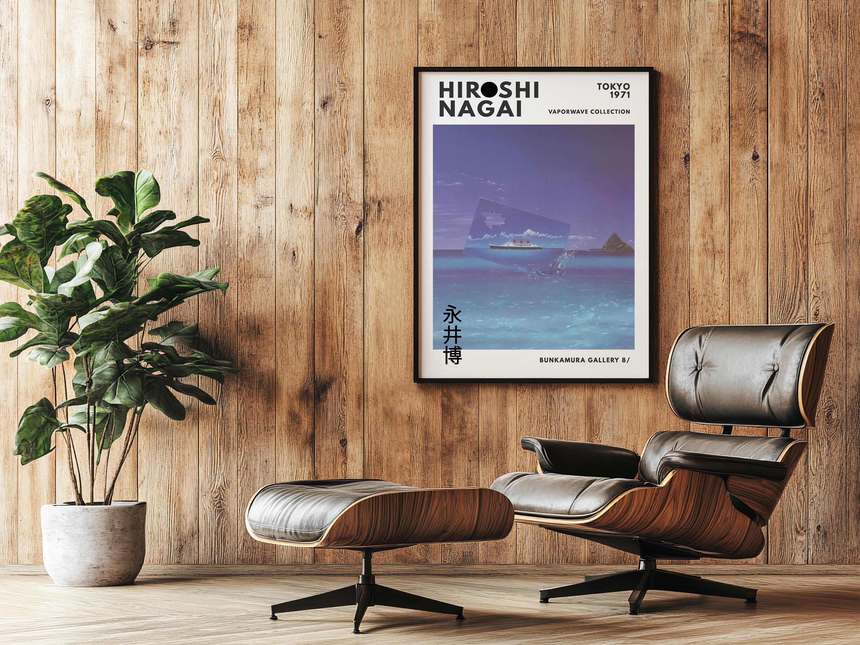 Minimalist Japanese art print with retro wall art flair, city pop tone and vaporwave palette—clean geometry, detailed silhouettes and saturated skies for a refined 80s poster vibe. Crisp color blocking, poised negative space and resort calm suit modern interiors and gallery walls.