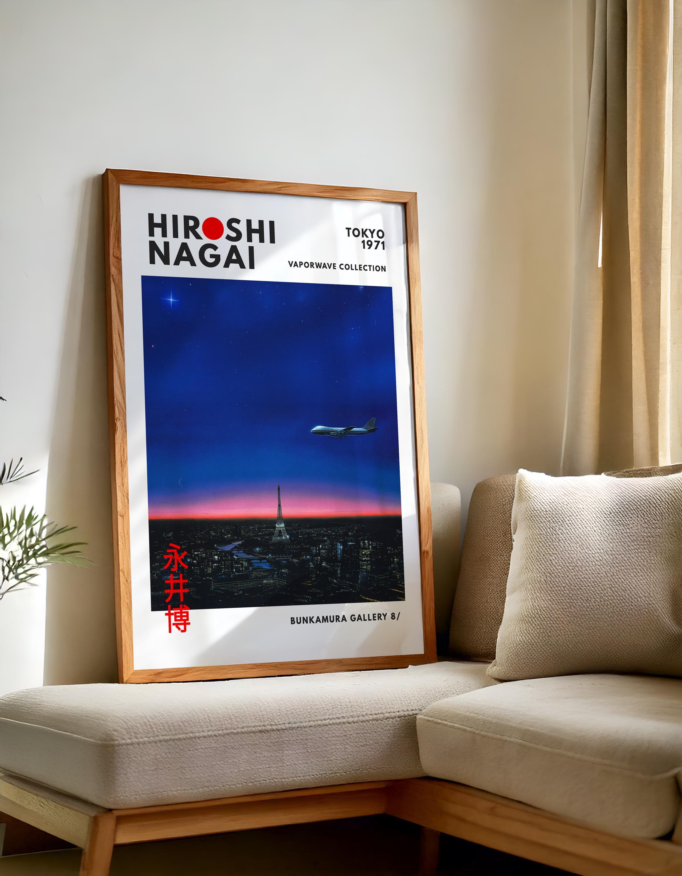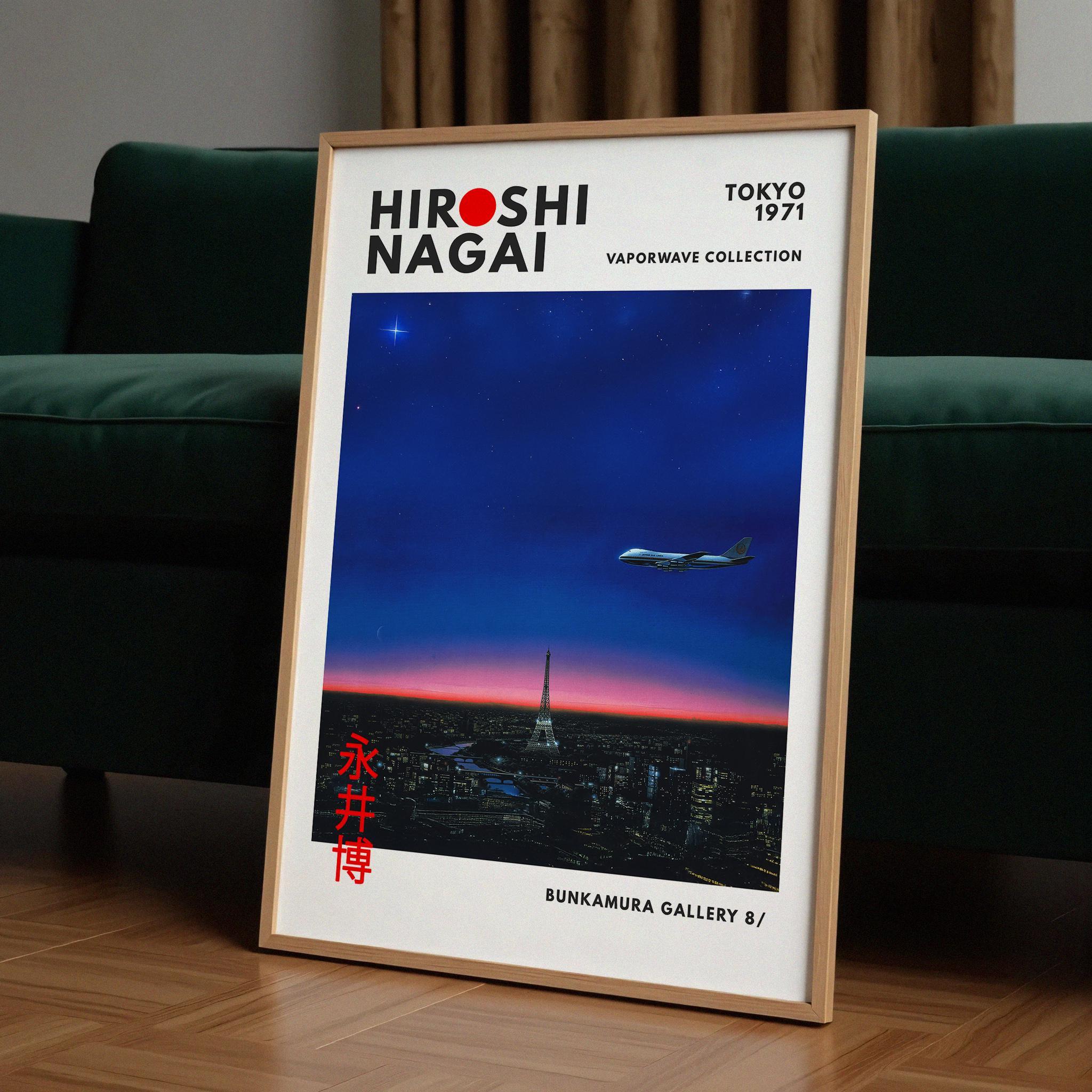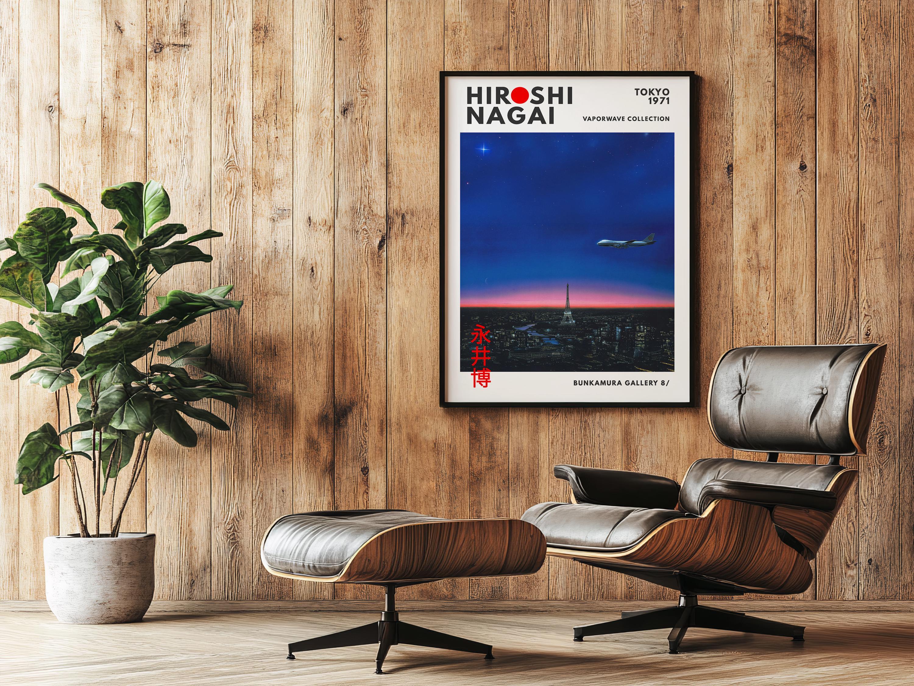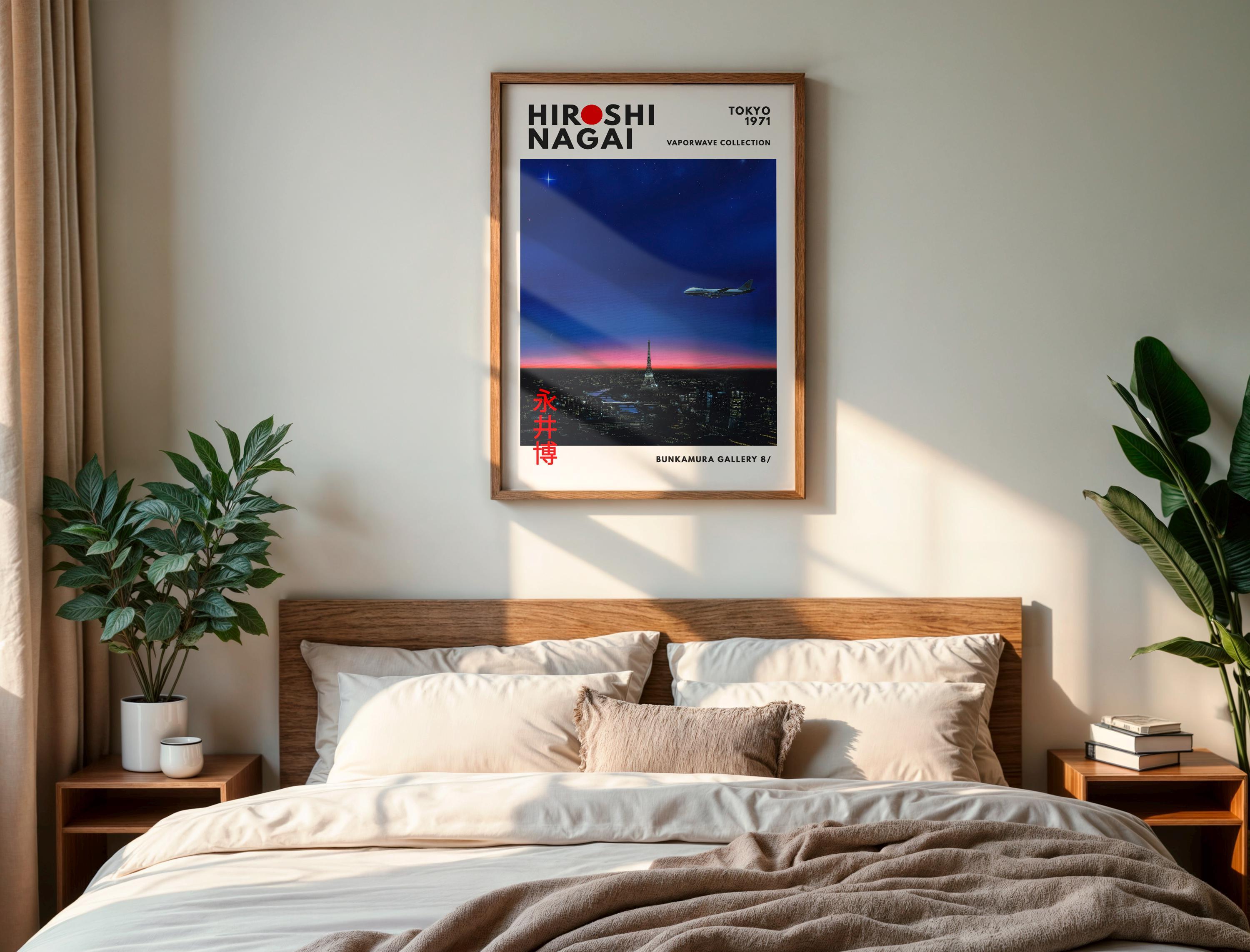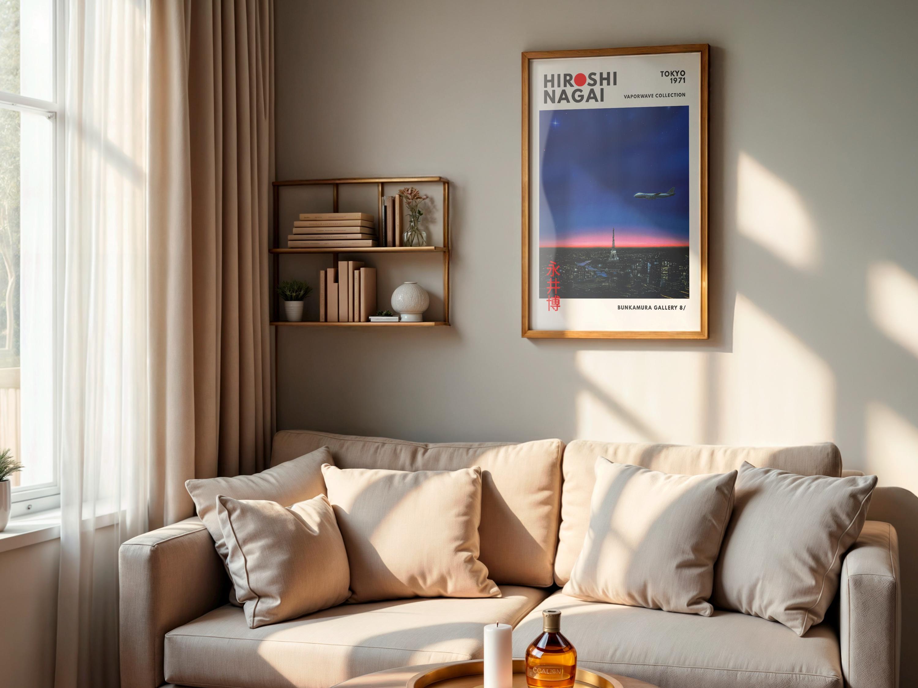 Hiroshi Nagai vintage poster aesthetics meet Japandi wall decor and vaporwave print ambience—bold horizons, pastel gradients shaping a cool city pop mood. Elegant linework, crisp shadows and balanced color fields deliver timeless, collectible wall art.