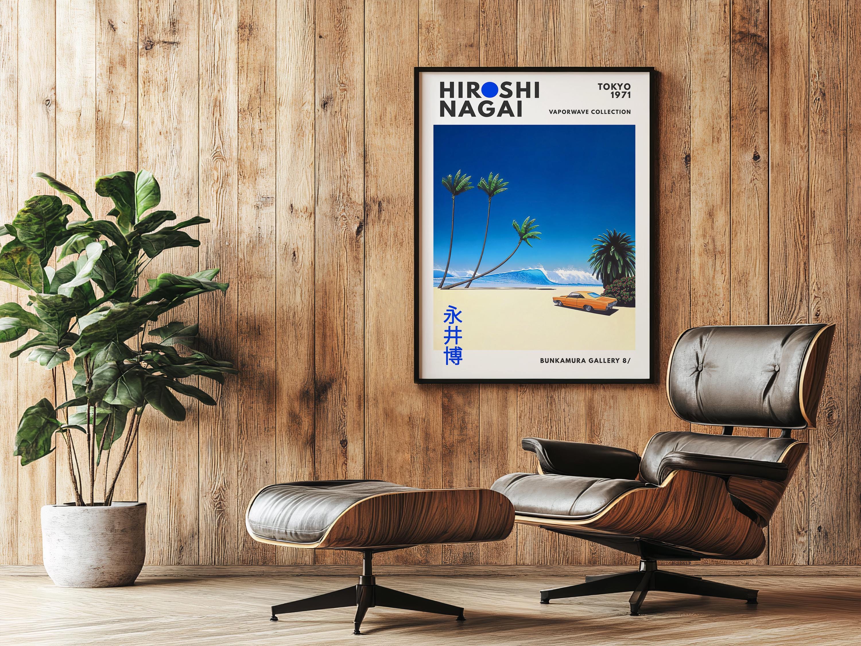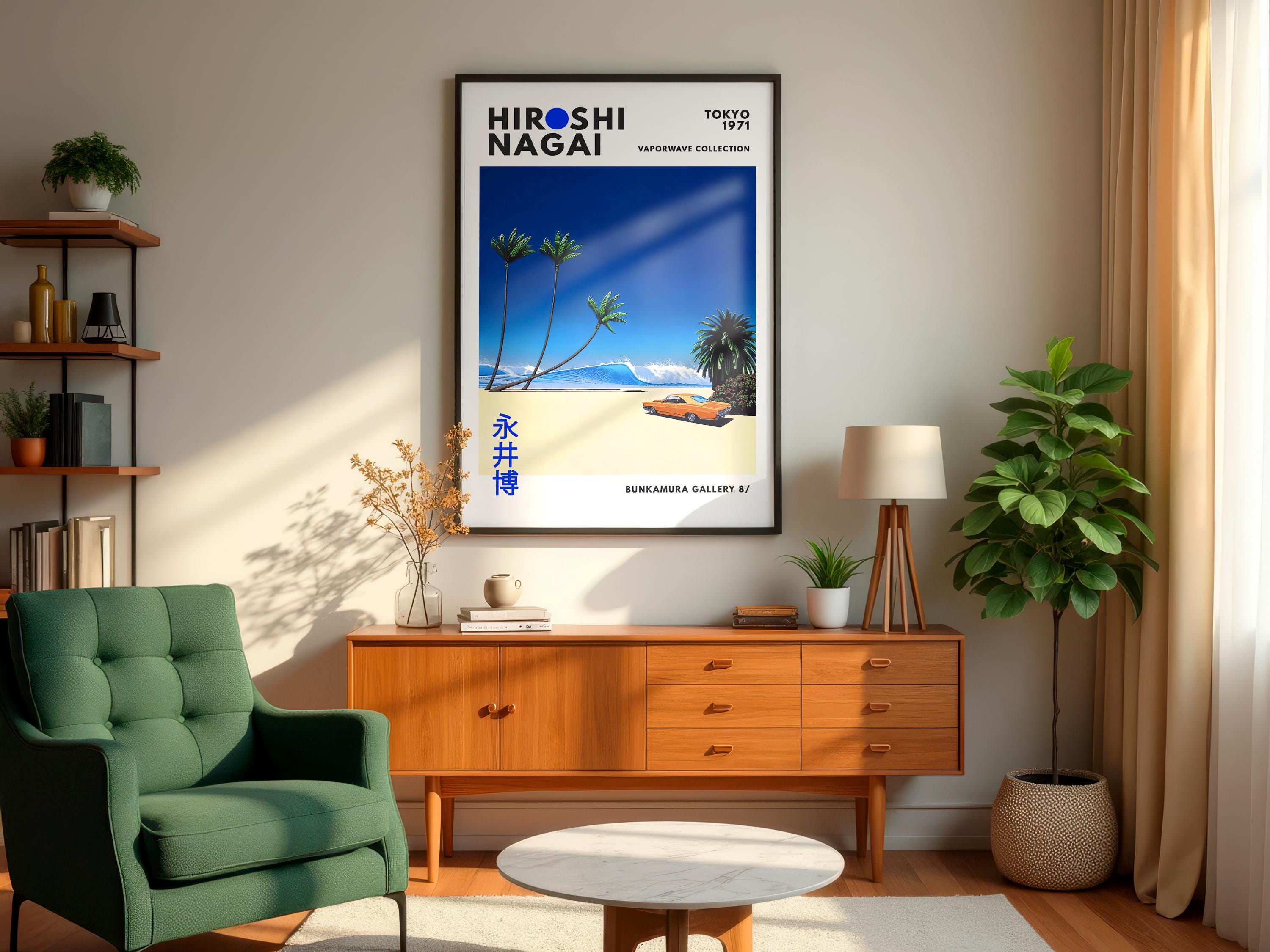 Retro wall art silhouettes with city pop light—gallery wall art order, vintage poster calm and Japanese Retro Poster detail enhanced by soft vaporwave print gradients.