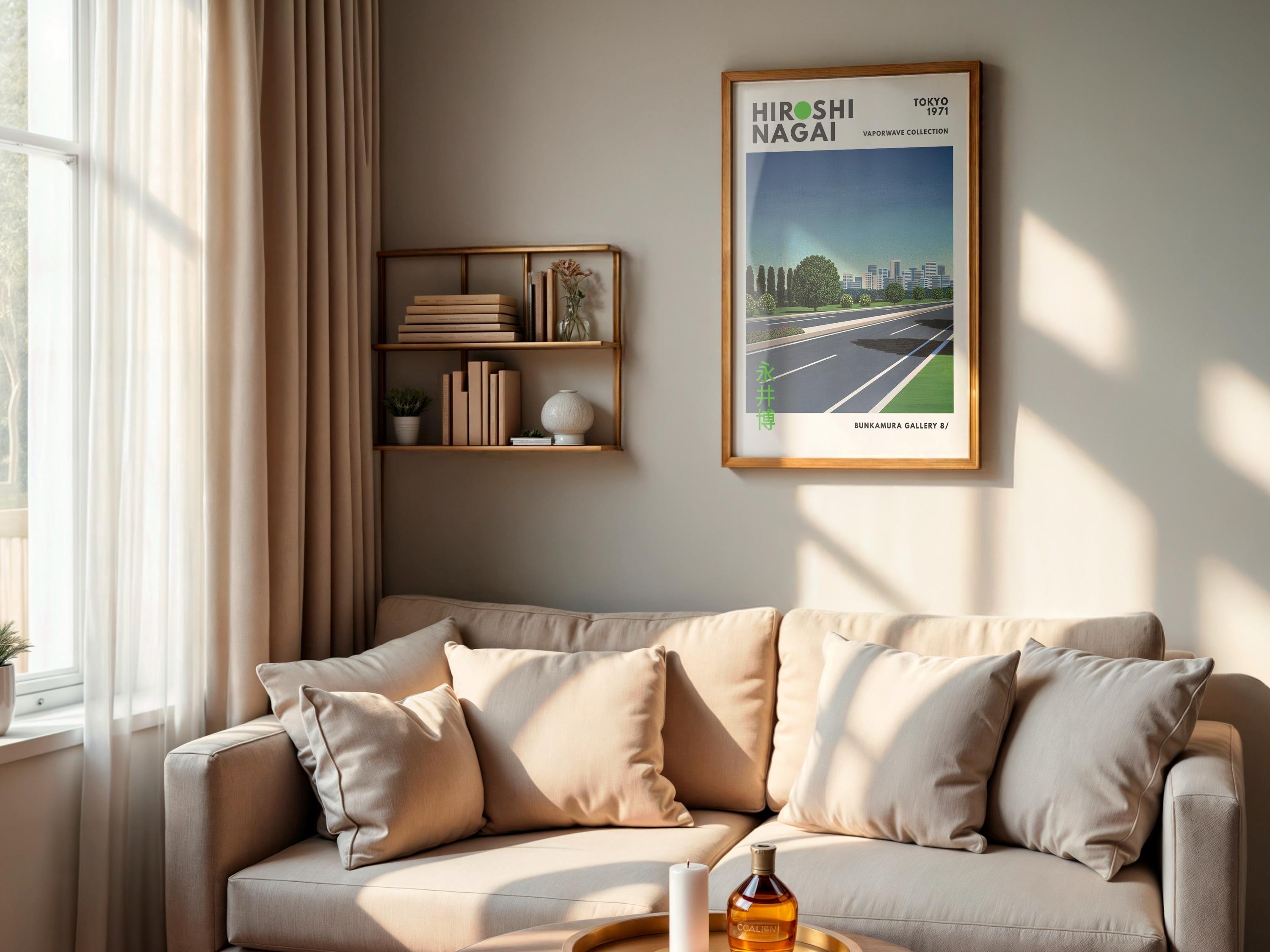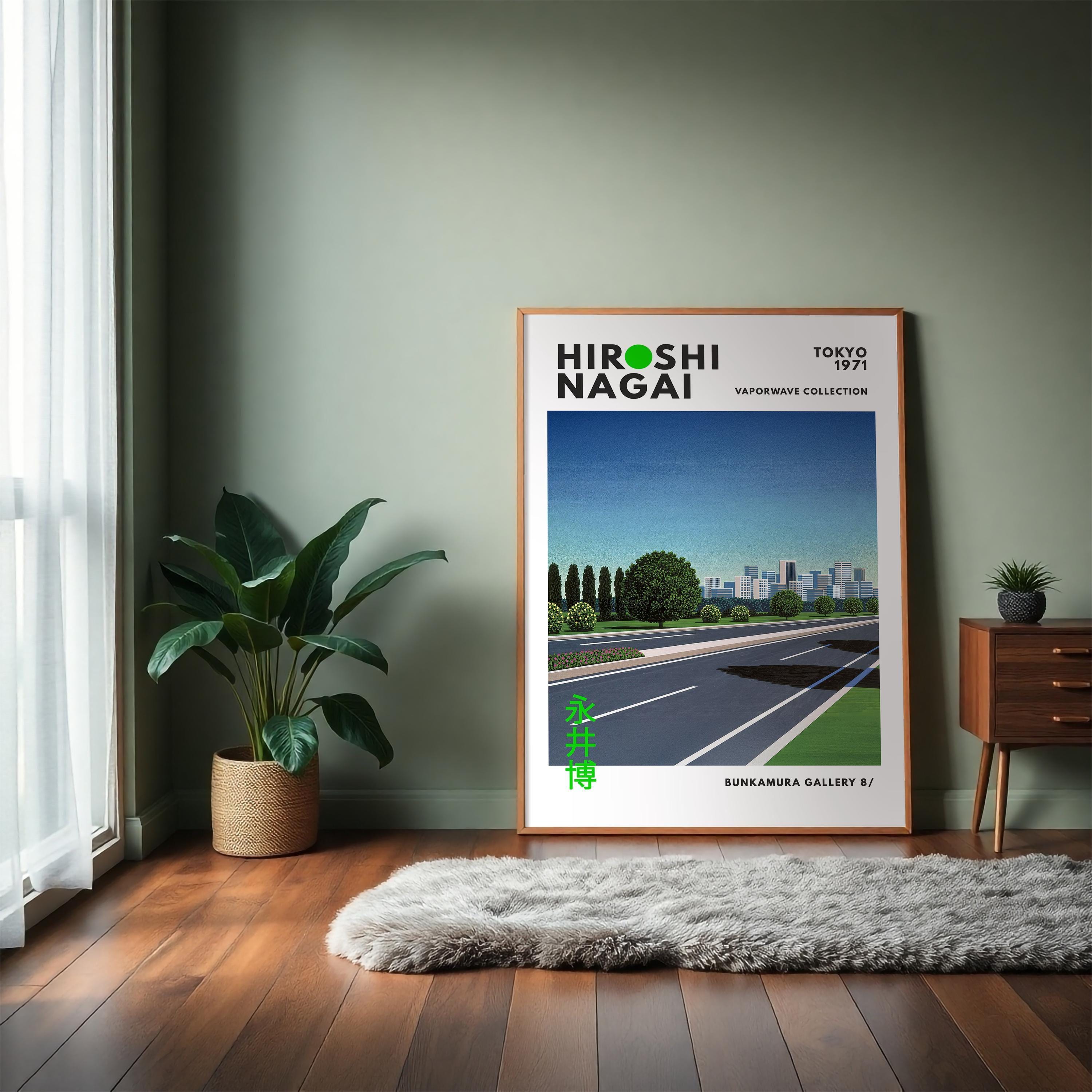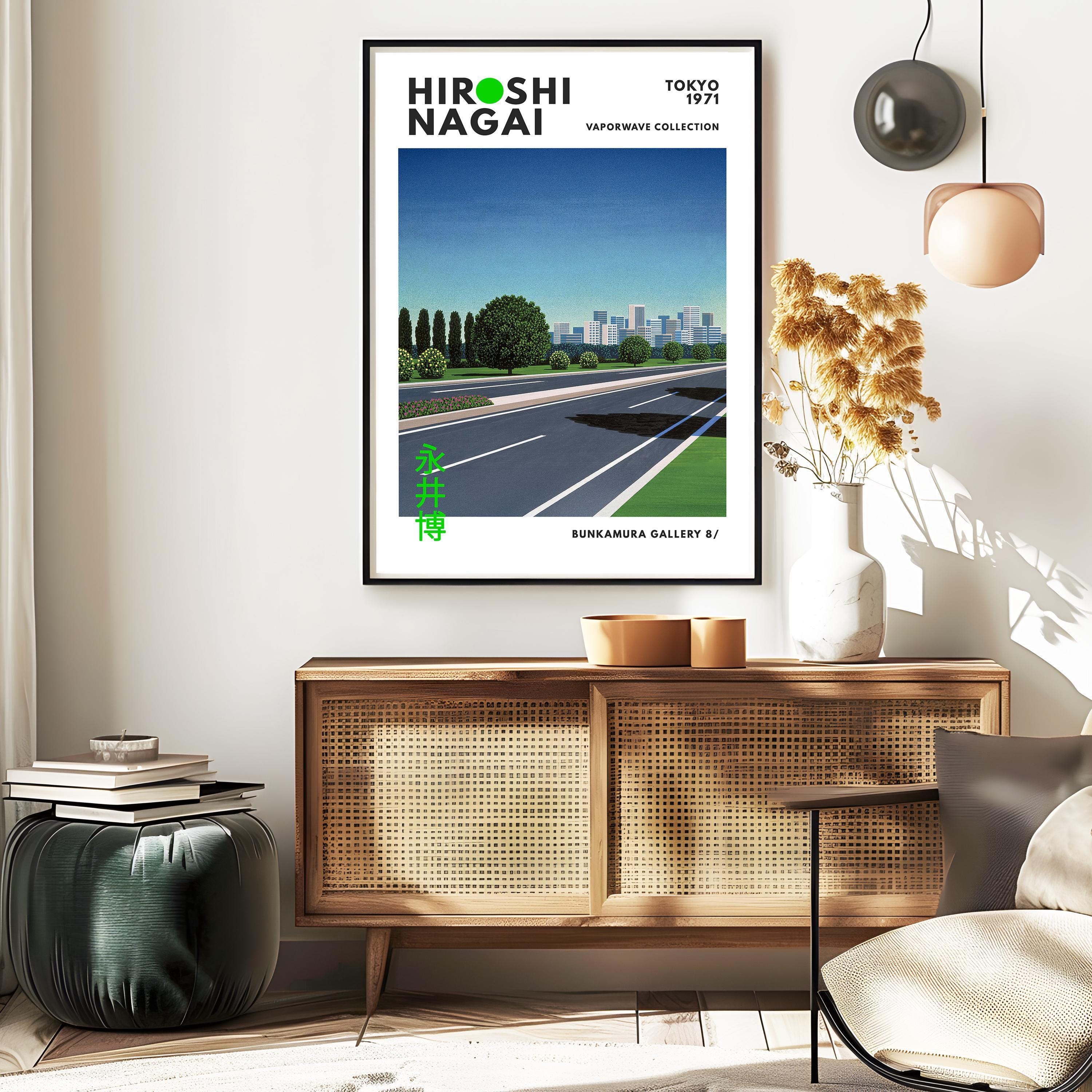 City pop nightscape with retro wall art energy and vaporwave glow—minimalist lanes, neon horizons and vintage poster allure in a sleek 80s driving dream. Cinematic perspective captures afternoon motion; an original Hiroshi Nagai piece tied to Japan’s city-pop spirit.