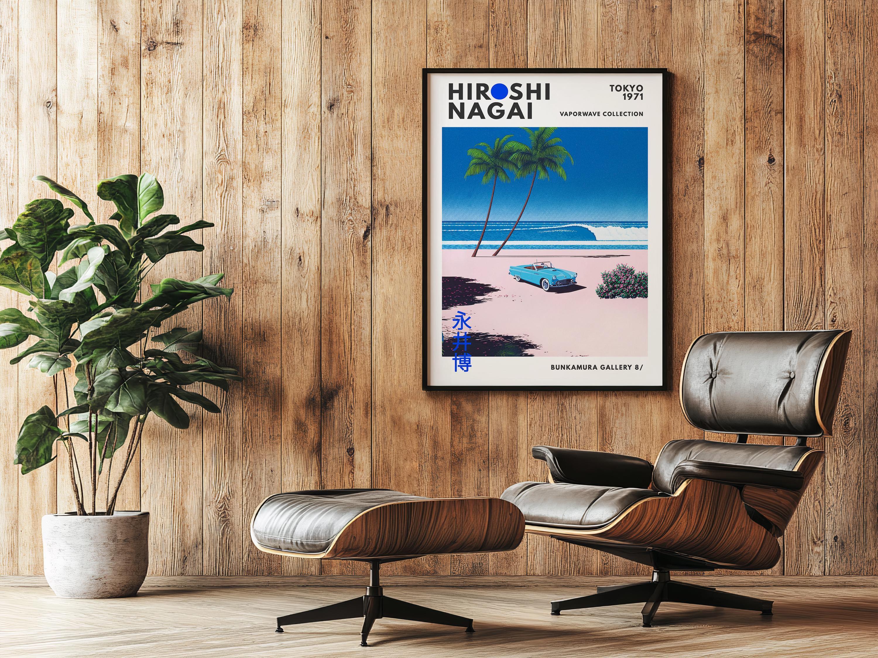 Gallery-style Japanese art print in minimalist poster form—retro wall art, vaporwave palette and vintage poster sensibility with city pop accent. Balanced labeling and crisp blocks feel exhibition-ready; an original Hiroshi Nagai design-driven piece.