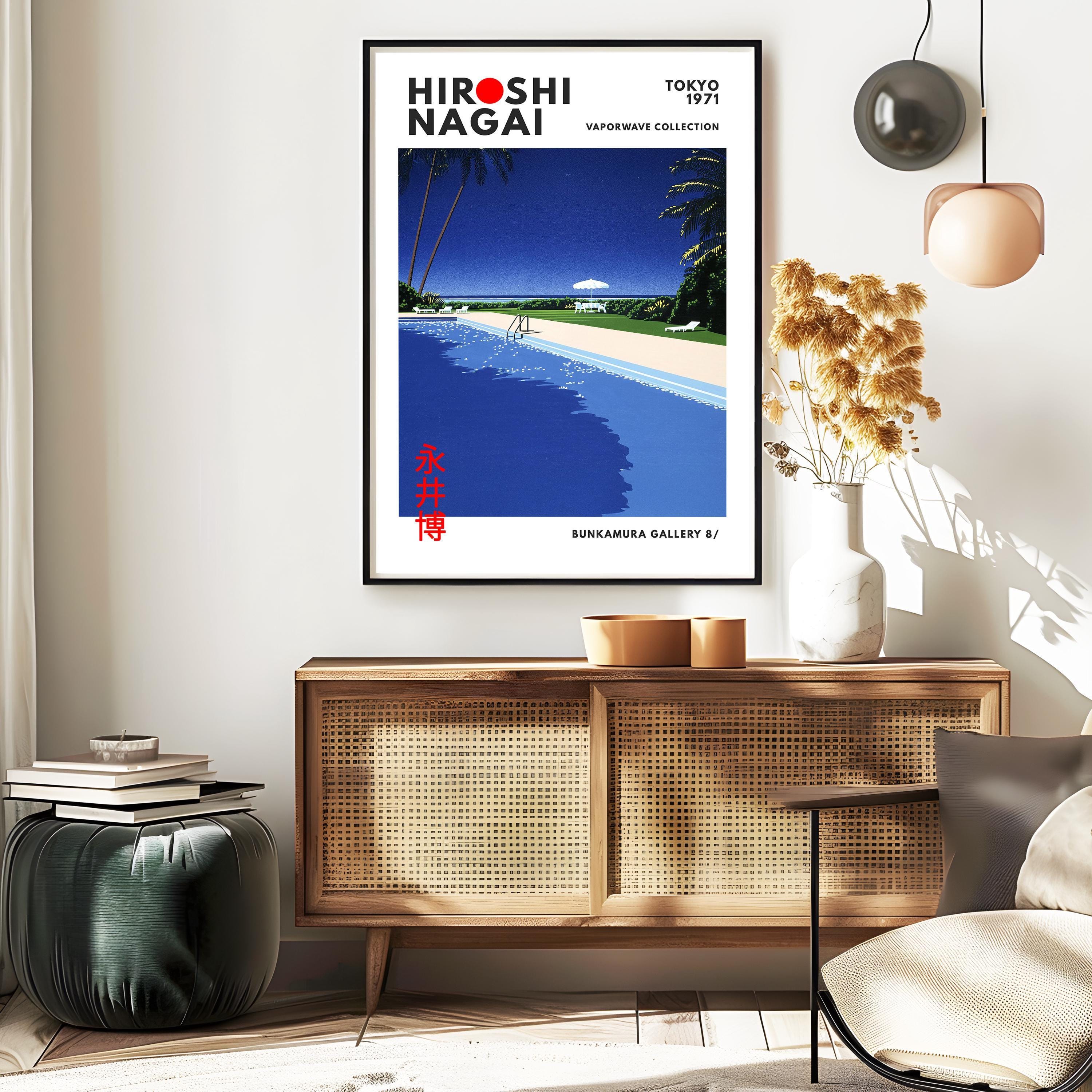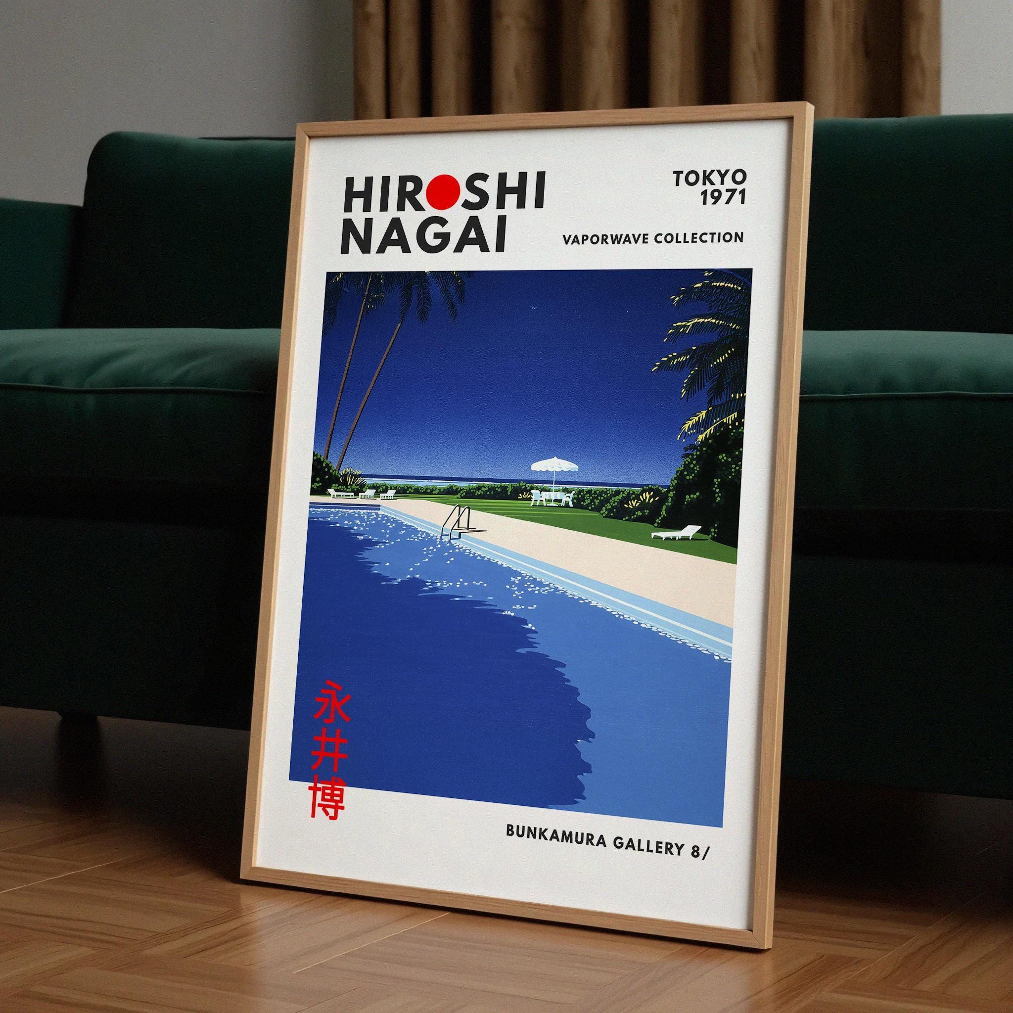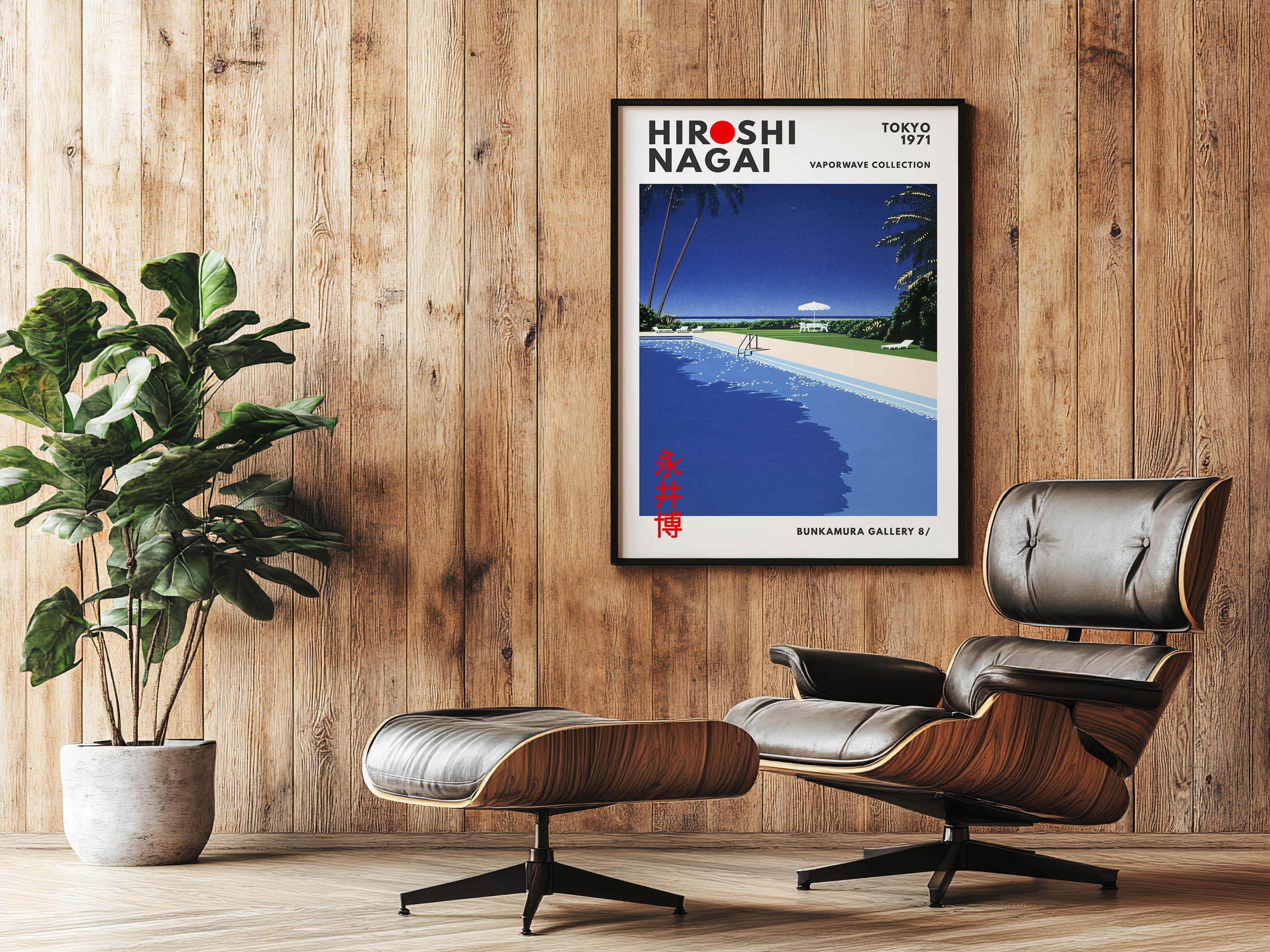 Minimalist Japanese art print with retro wall art restraint—sunlit deck planes, crisp shadows and vaporwave clarity shaping a soothing vintage poster mood. Measured color fields create luxurious stillness; an original Hiroshi Nagai work refining his resort-minimalist grammar.