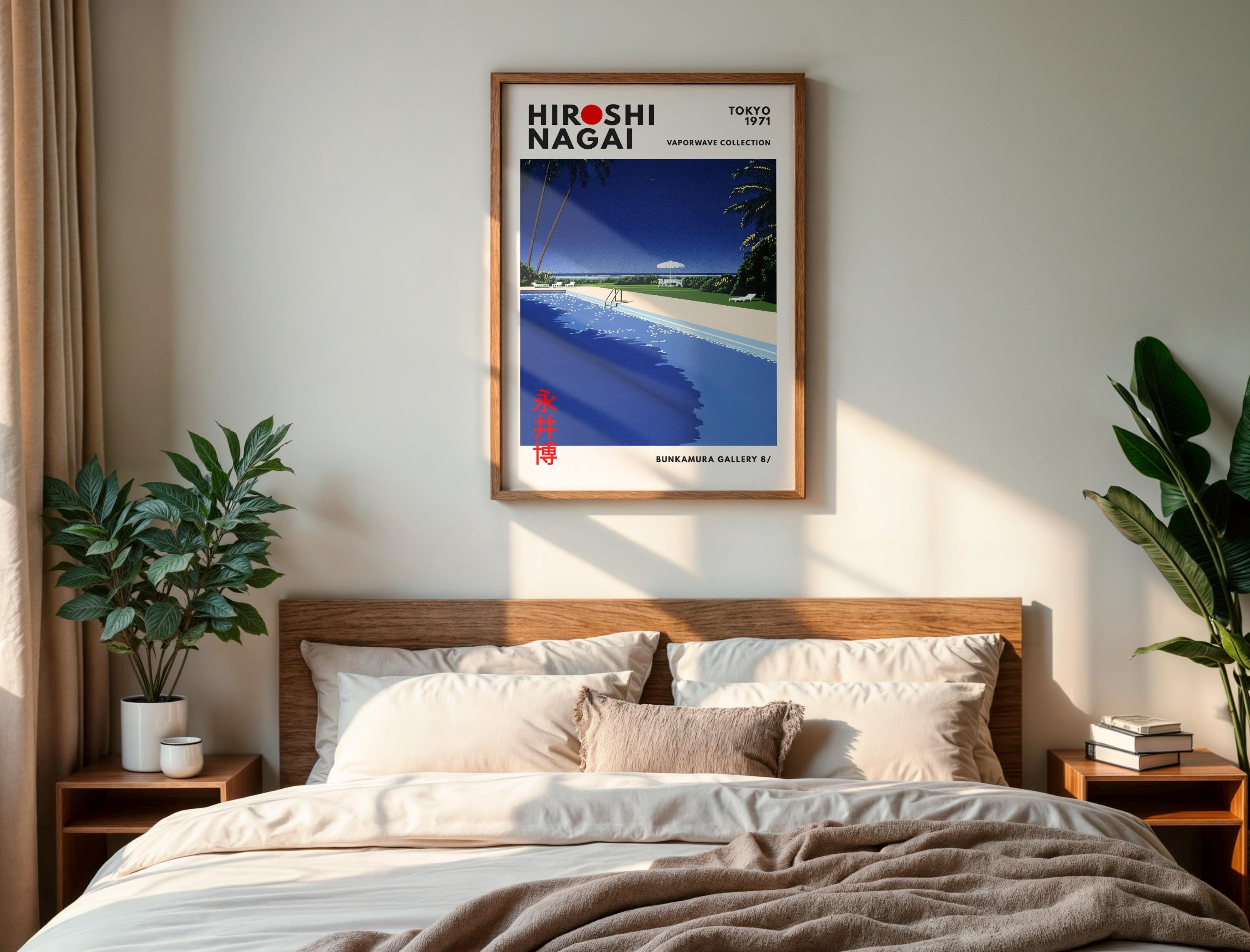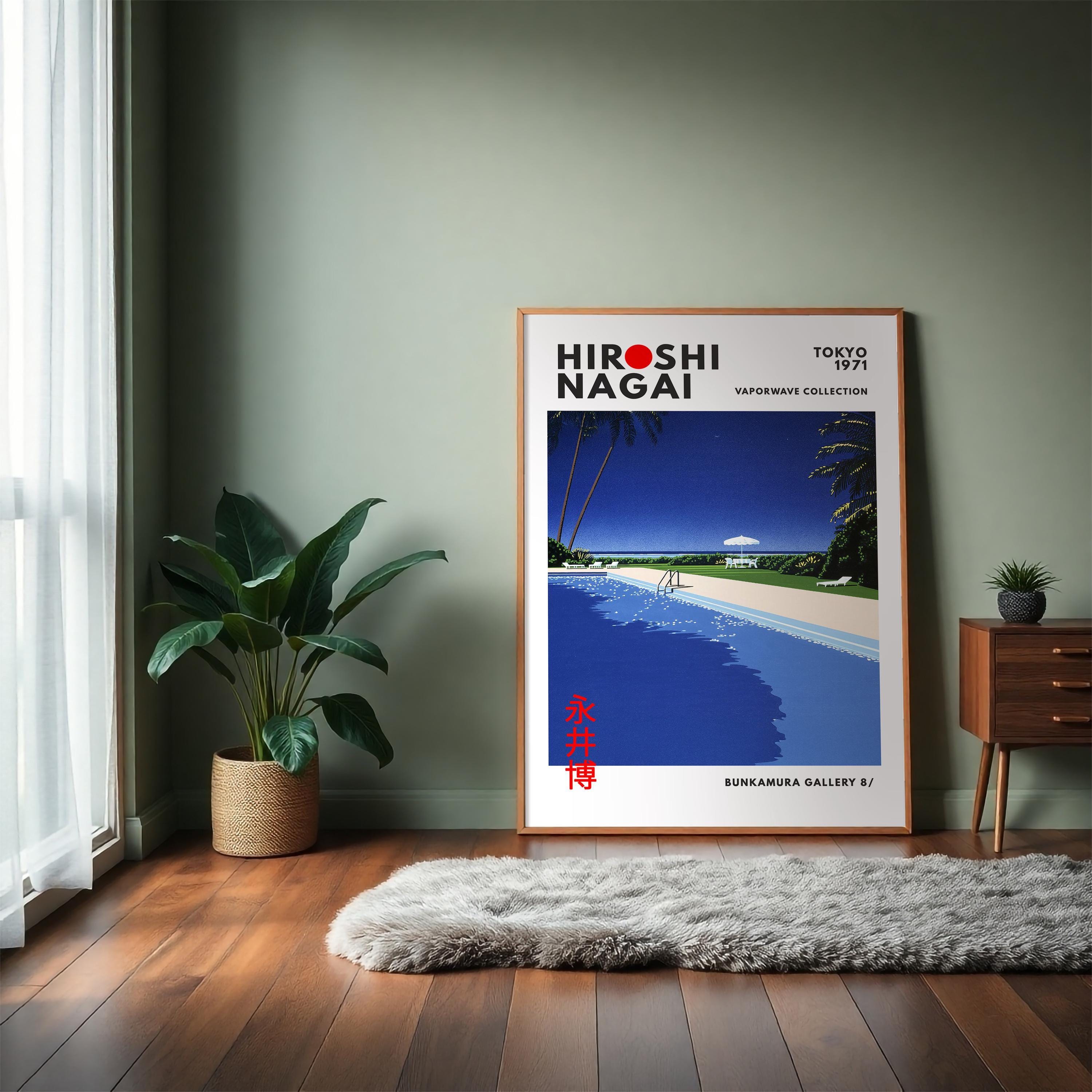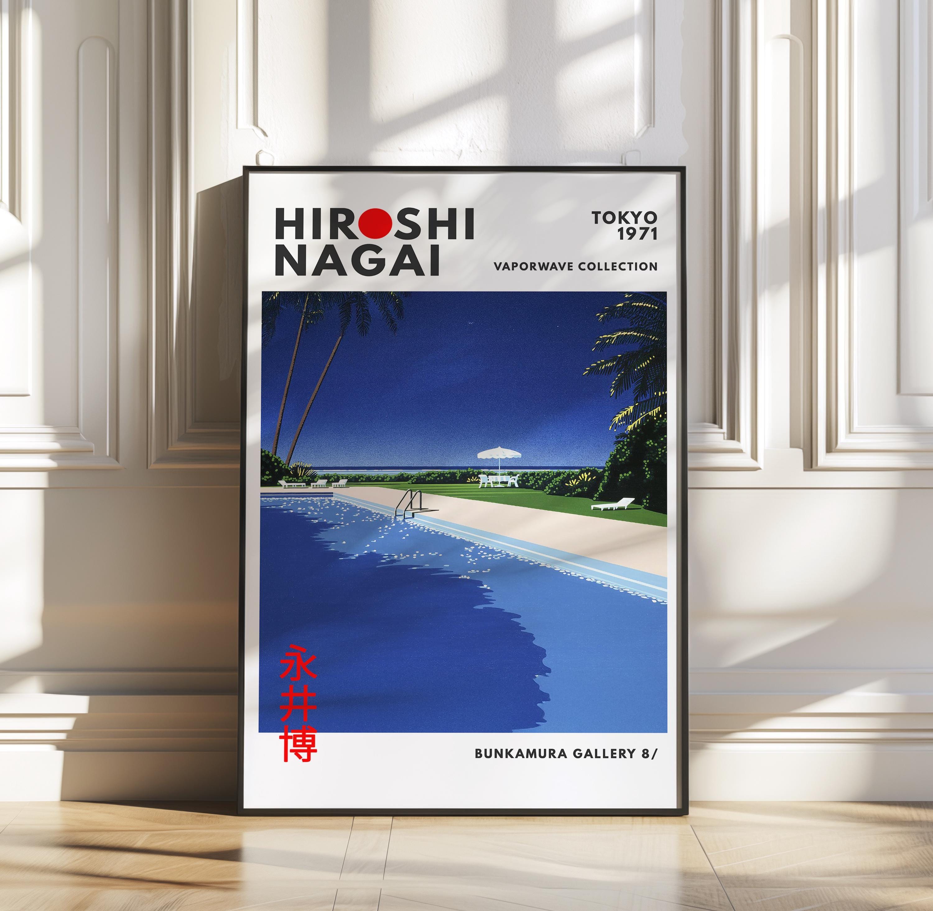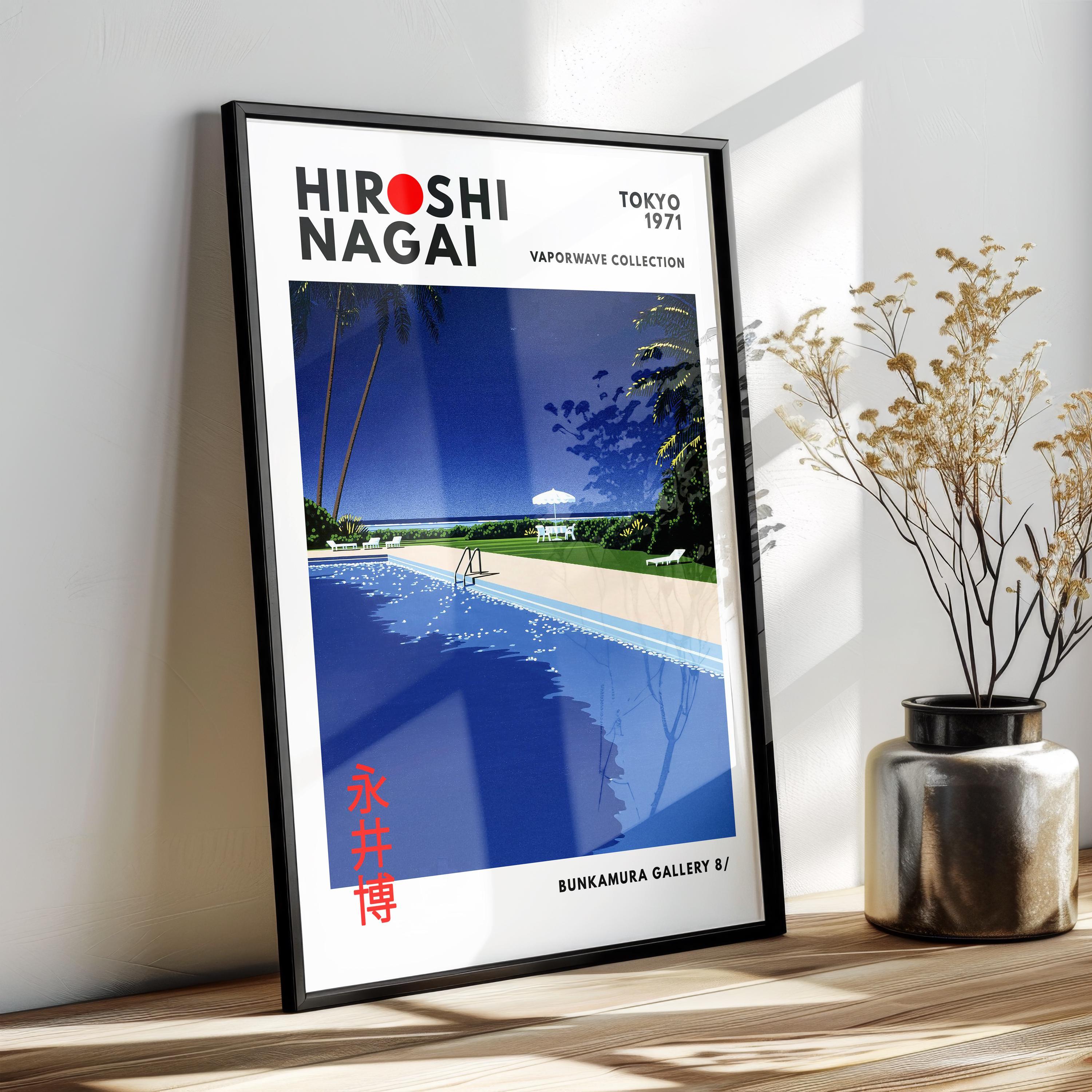 Minimalist Japanese art print with retro wall art restraint—sunlit deck planes, crisp shadows and vaporwave clarity shaping a soothing vintage poster mood. Measured color fields create luxurious stillness; an original Hiroshi Nagai work refining his resort-minimalist grammar.